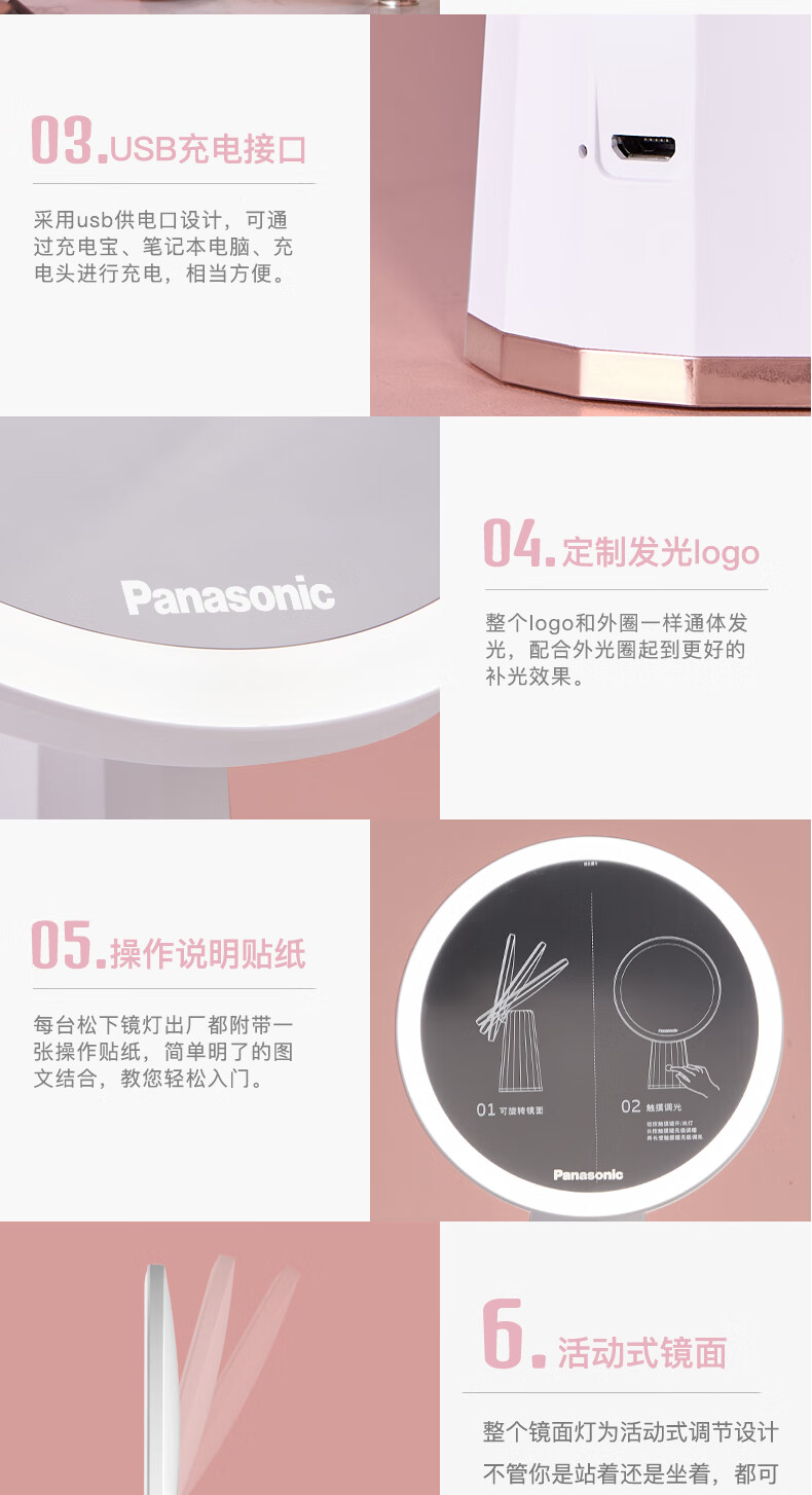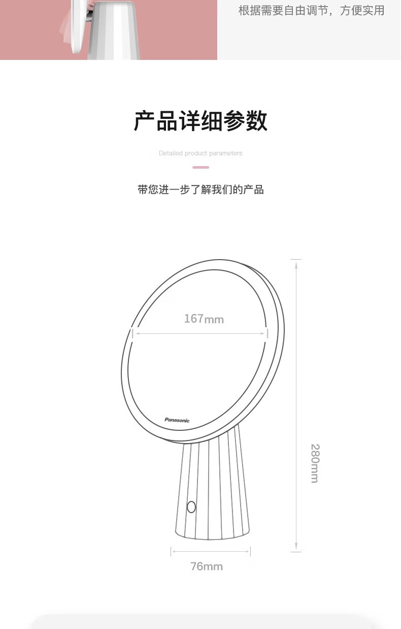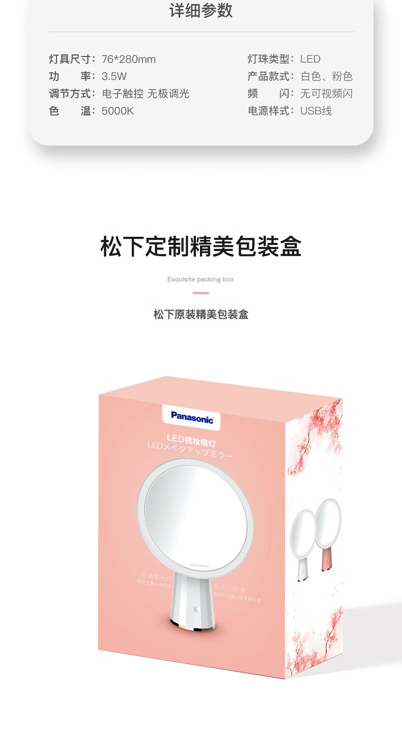松下LED化妆镜带灯家用卧室镜子学生宿舍办公室台式桌面化妆镜子 粉色莱影+插头套餐