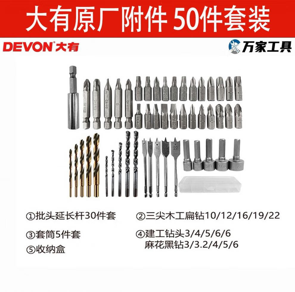 Devon original accessories electric drill accessory set bit sleeve twist drill bit construction drill bit three-point woodworking flat 50-piece accessory set