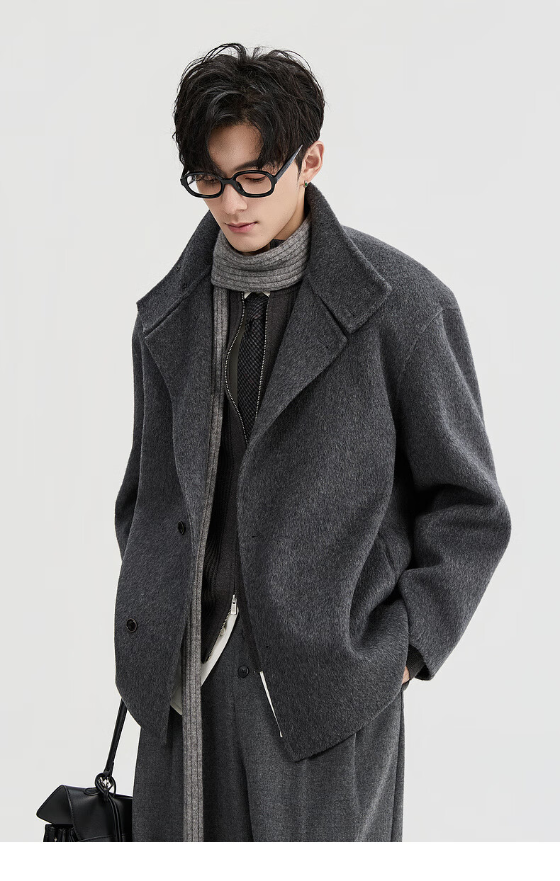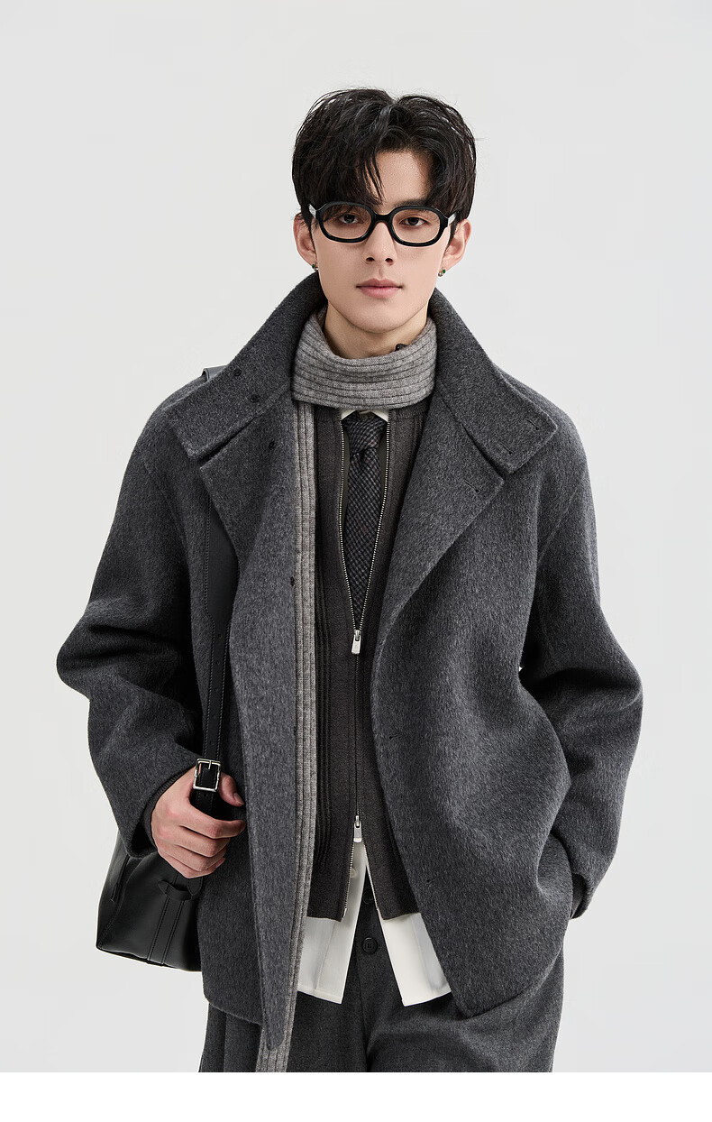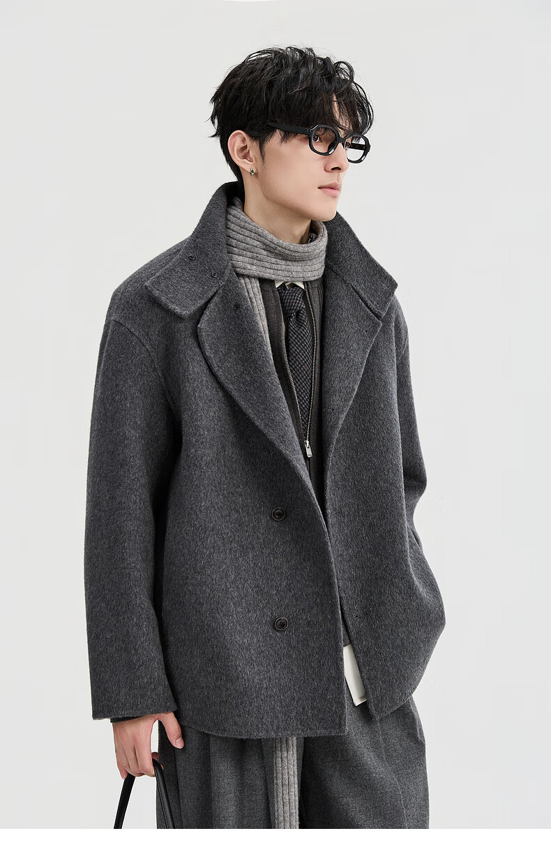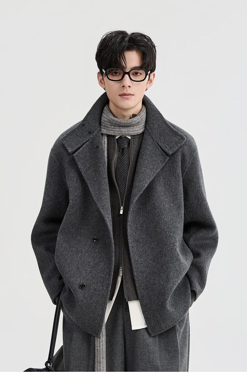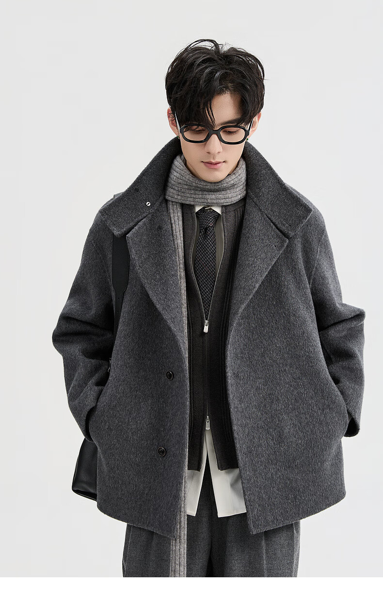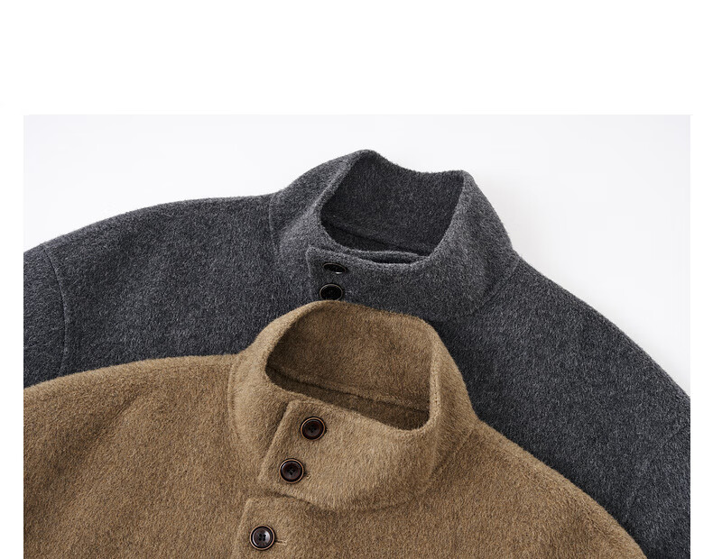 Piaget Zall foldable stand-up collar hand-length full wool double-sided woolen coat for men 2025 autumn and winter new goose down lining jacket for men mountain gray regular-no lining L (175)