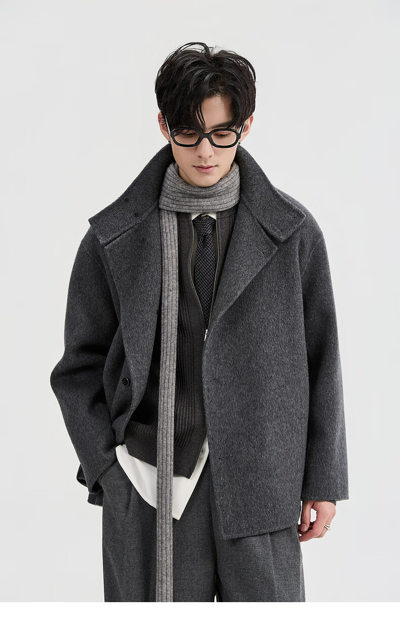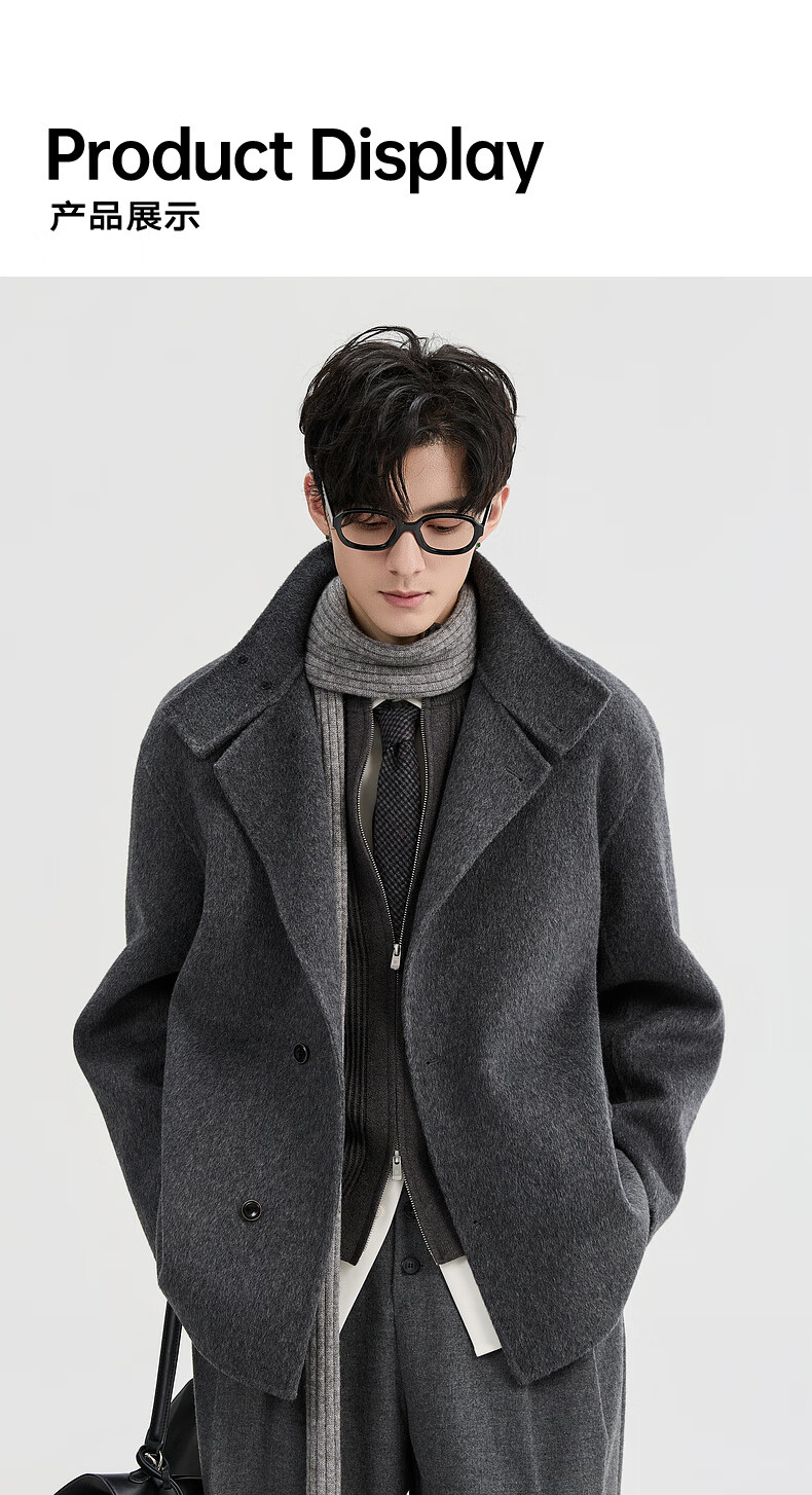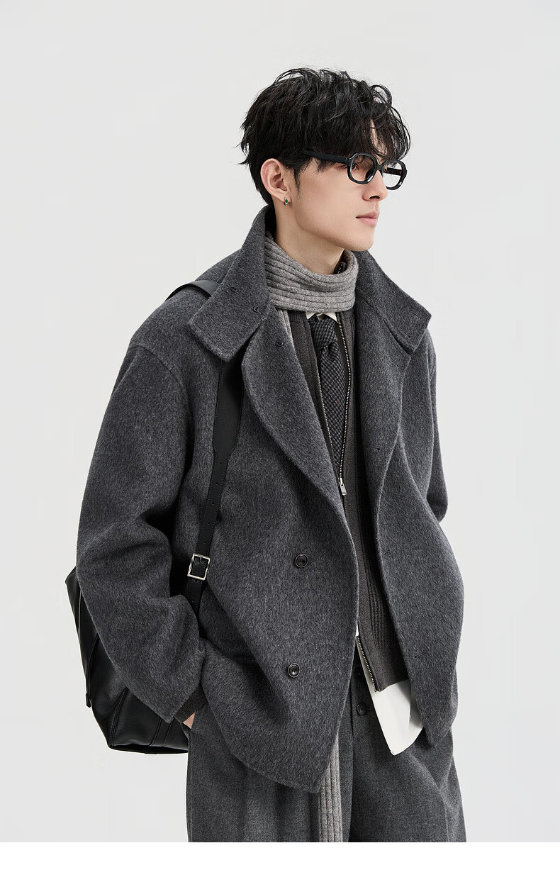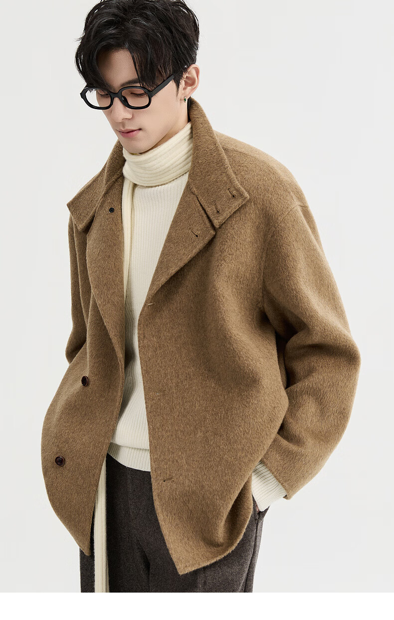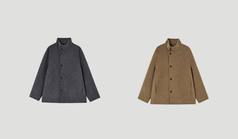 Piaget Zall foldable stand-up collar hand-length full wool double-sided woolen coat for men 2025 autumn and winter new goose down lining jacket for men mountain gray regular-no lining L (175)