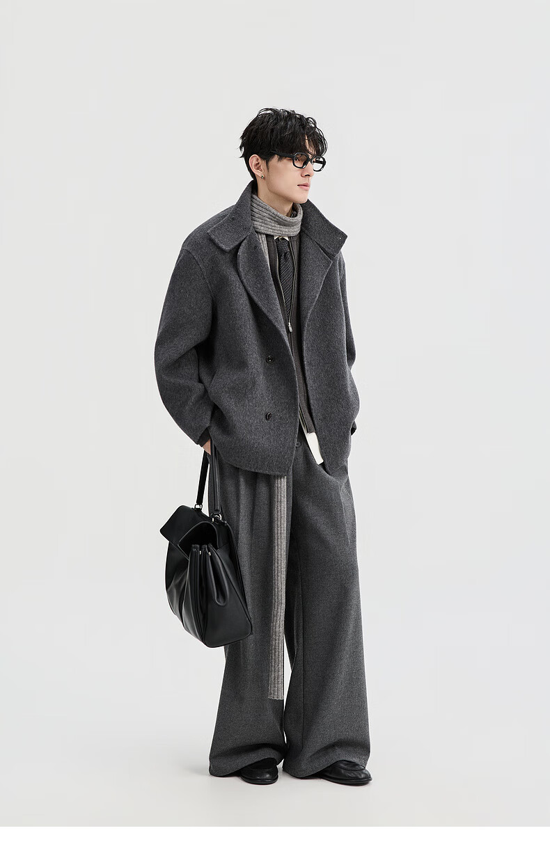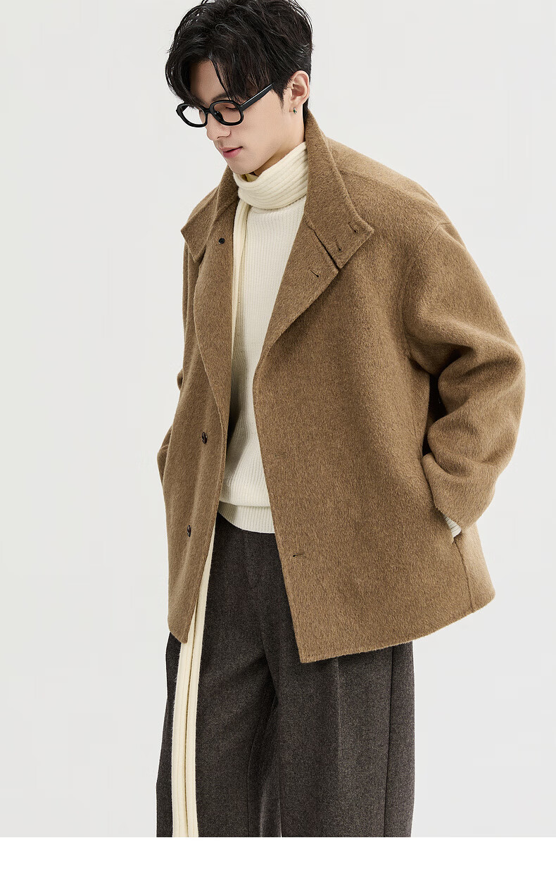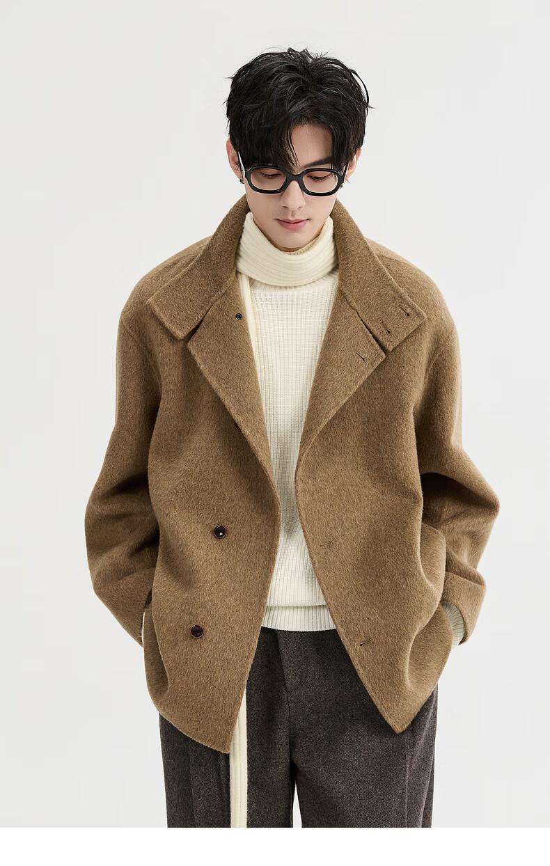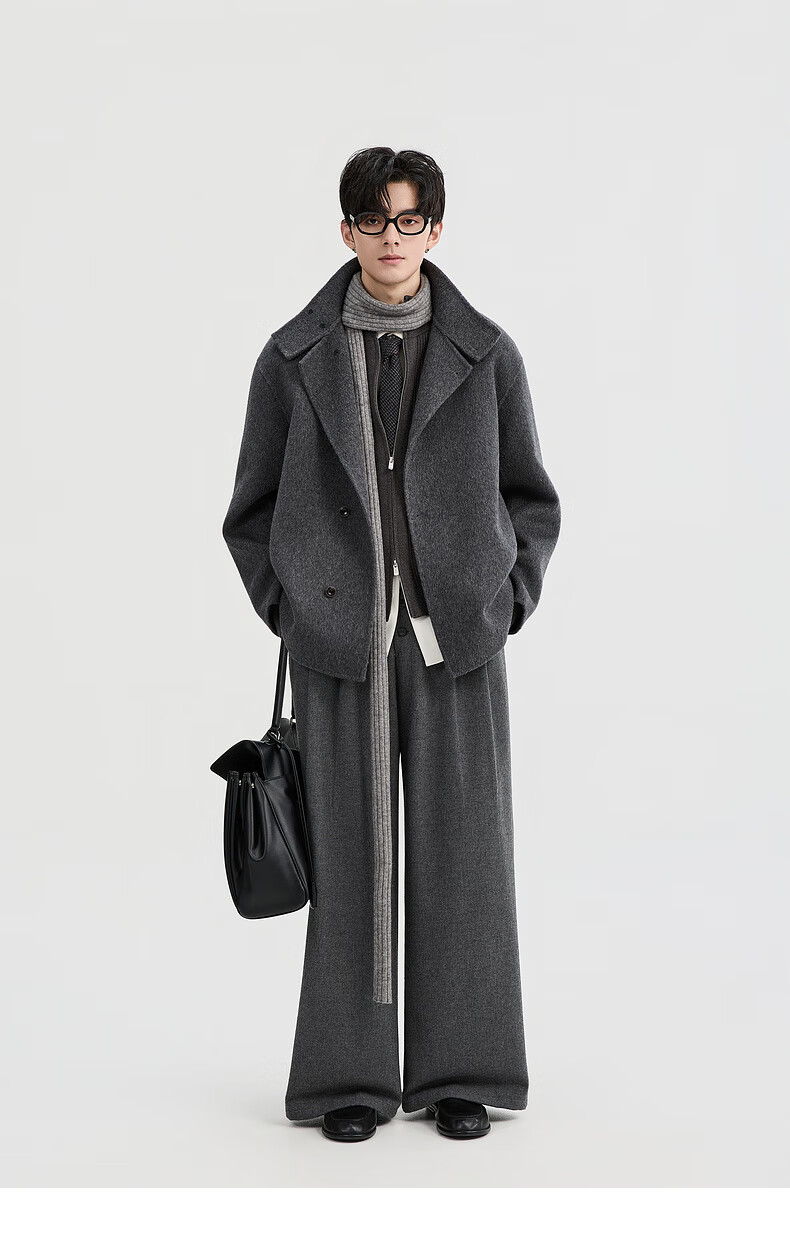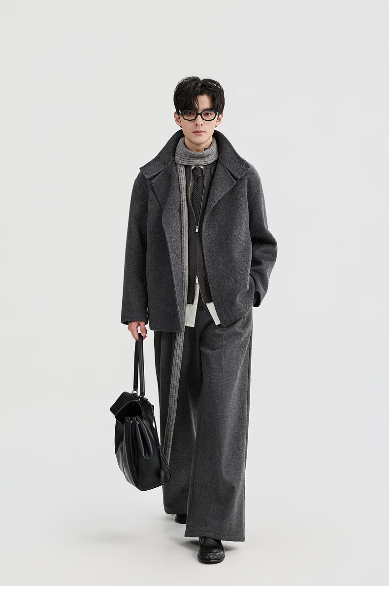 Piaget Zall foldable stand-up collar hand-length full wool double-sided woolen coat for men 2025 autumn and winter new goose down lining jacket for men mountain gray regular-no lining L (175)