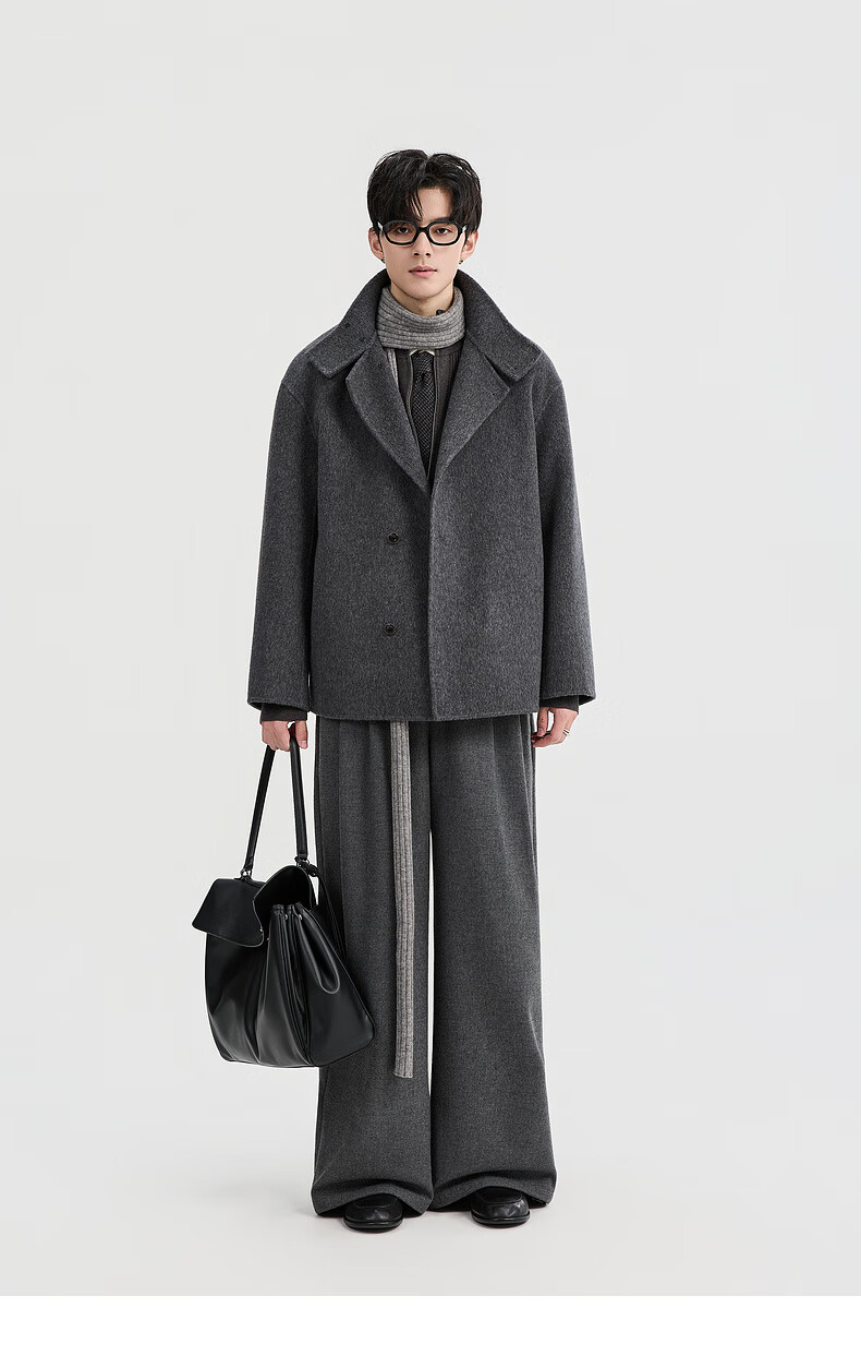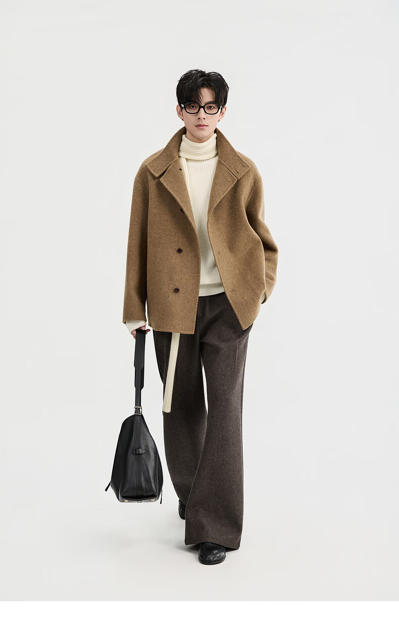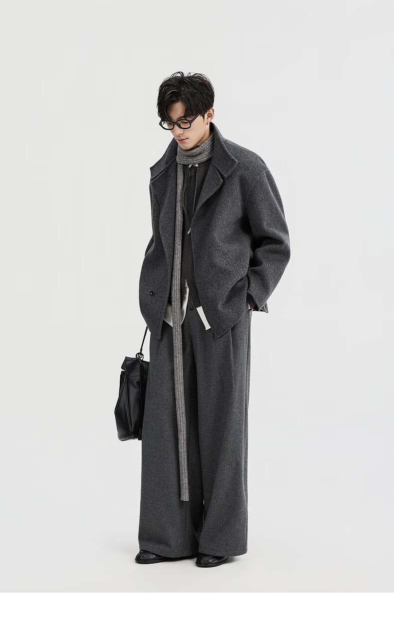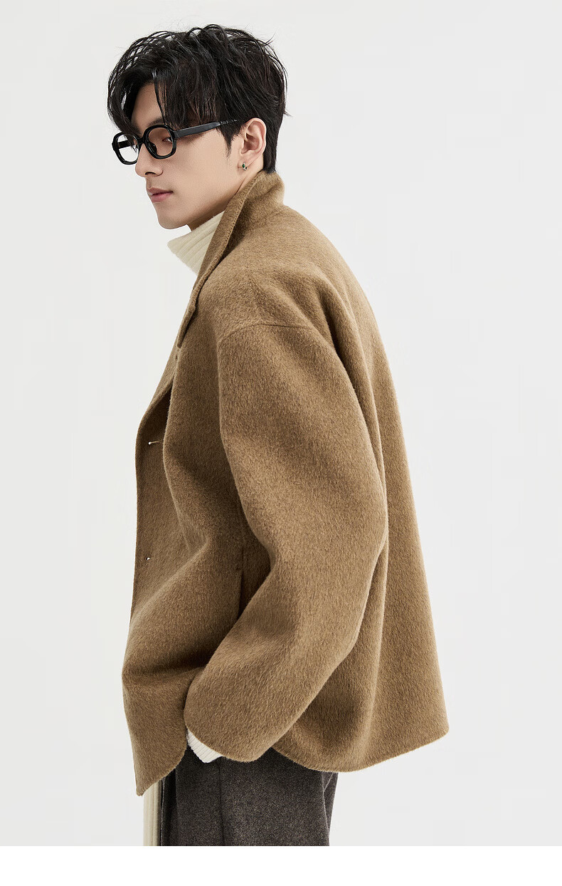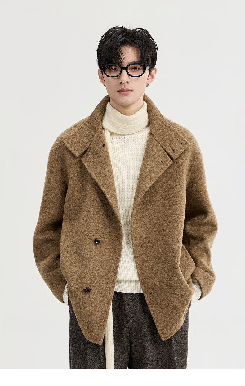 Piaget Zall foldable stand-up collar hand-length full wool double-sided woolen coat for men 2025 autumn and winter new goose down lining jacket for men mountain gray regular-no lining L (175)