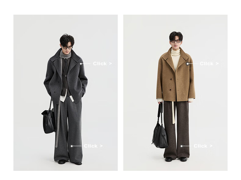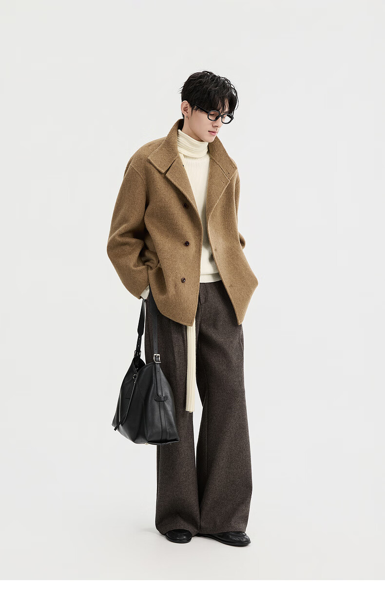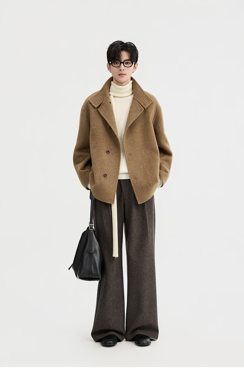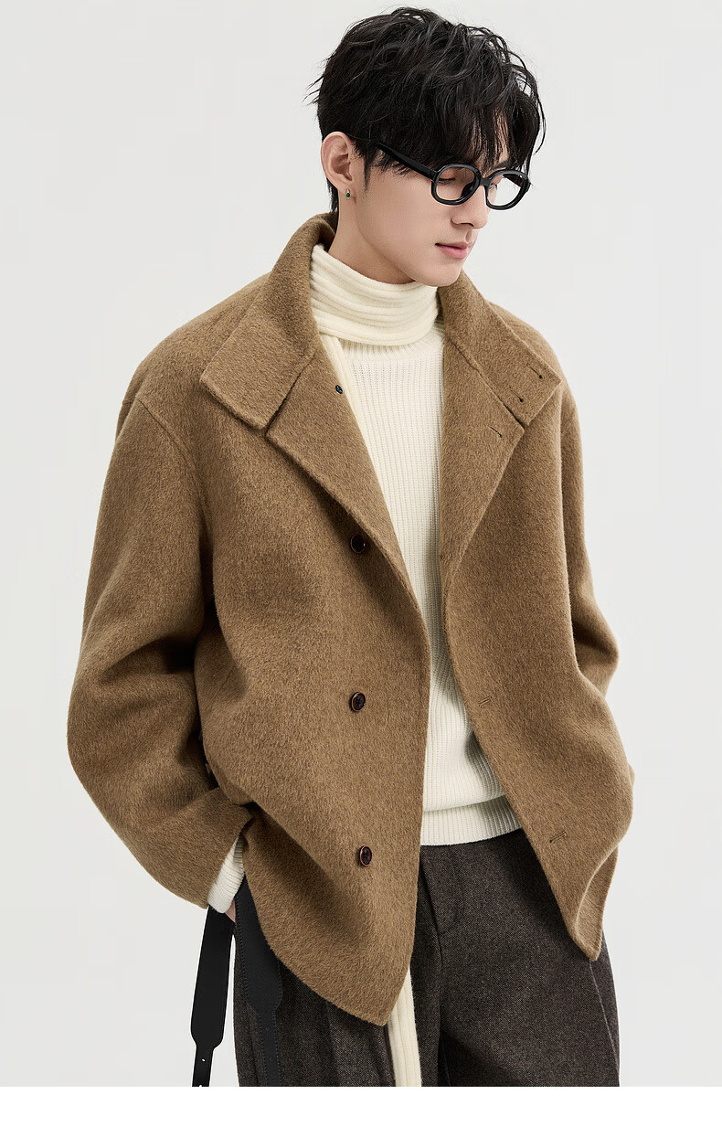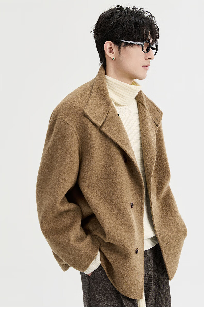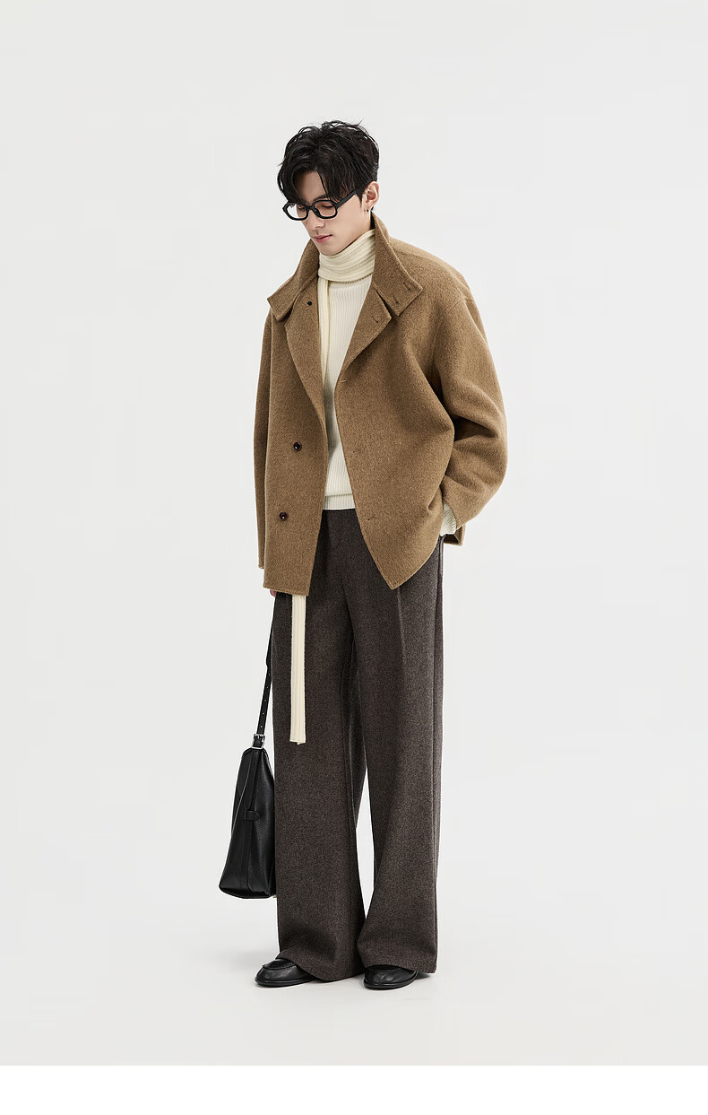 Piaget Zall foldable stand-up collar hand-length full wool double-sided woolen coat for men 2025 autumn and winter new goose down lining jacket for men mountain gray regular-no lining L (175)