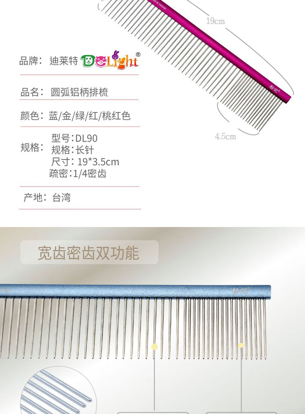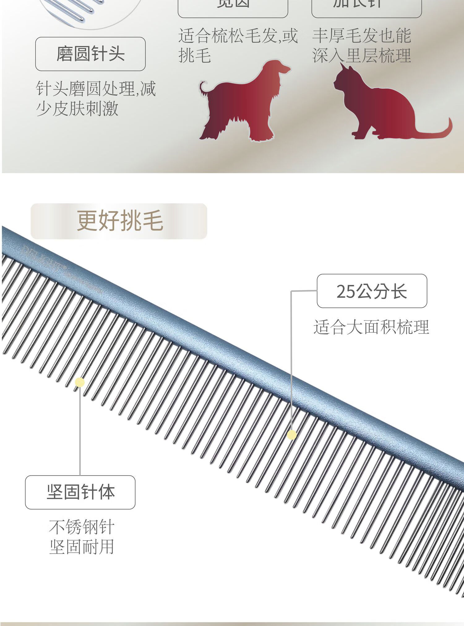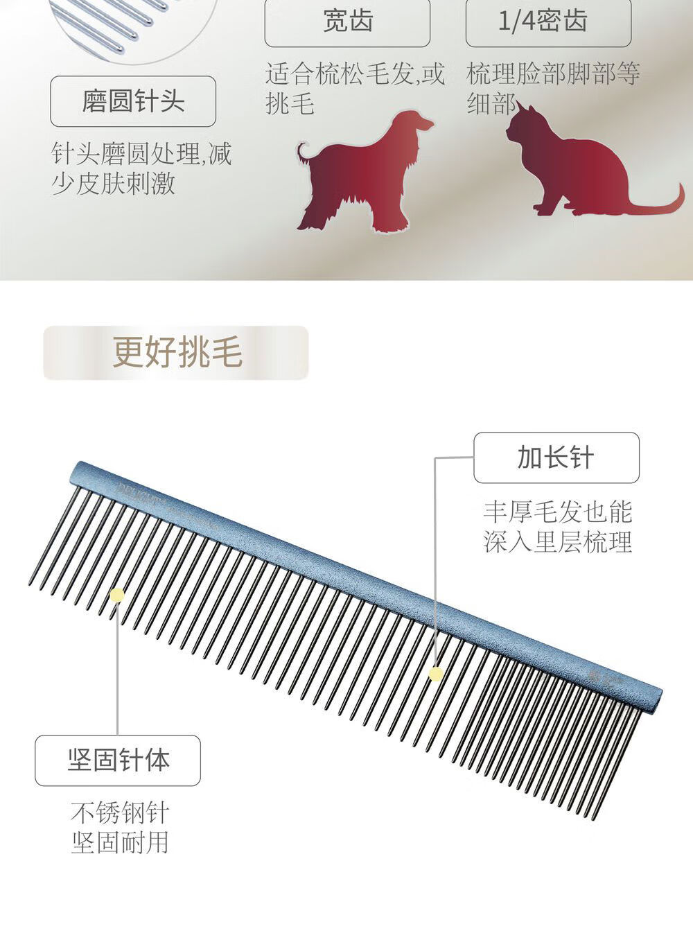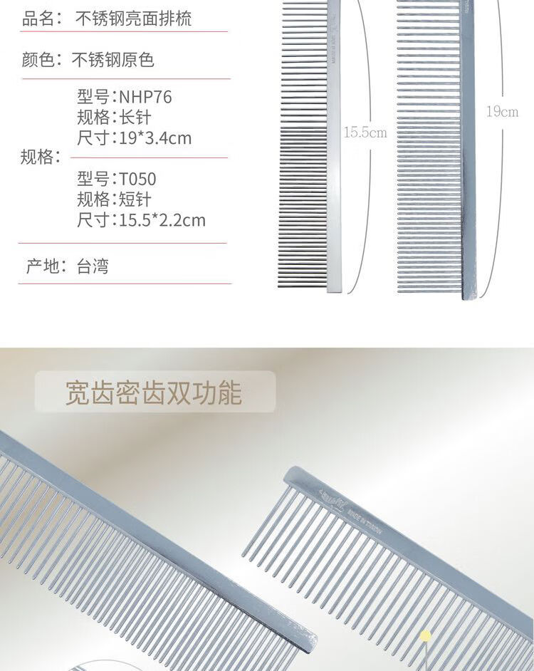 Ship's comb pet dog comb cat ragdoll cat knotting comb Teddy Bichon dog combing artifact pulling comb DL190-quality silver full density 10 points 5cm