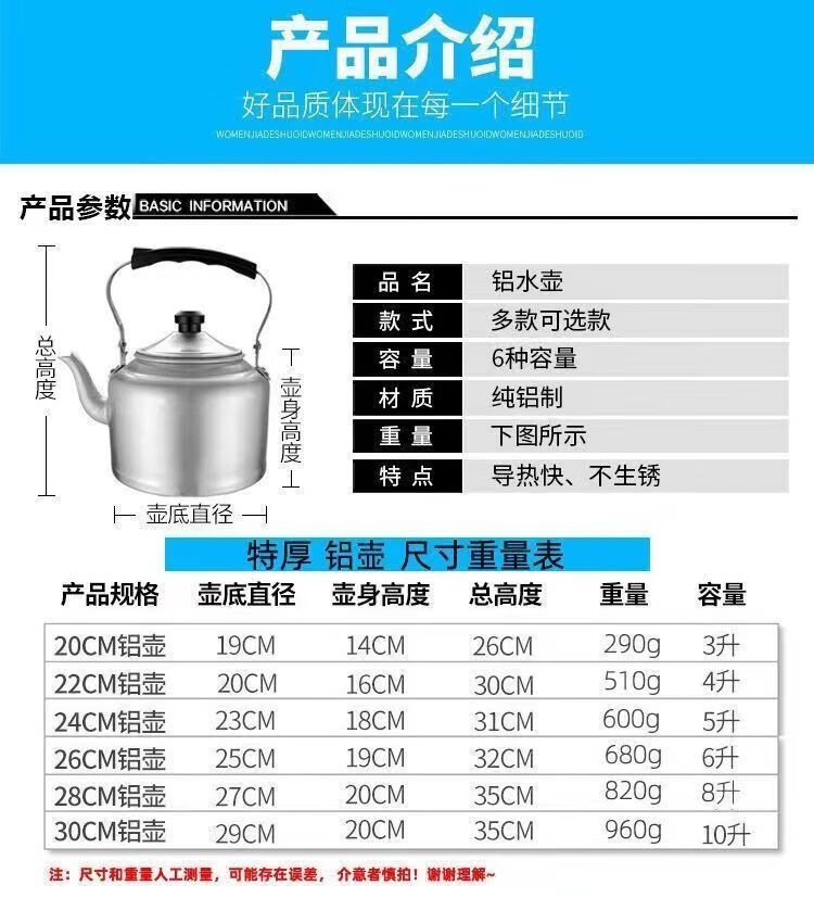 Thick aluminum kettle extra thick old-fashioned household outdoor firewood gas stove kettle household durable camping kettle 5000ml