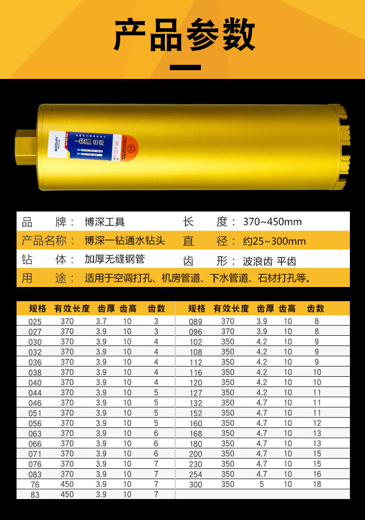 Bosun water drill water drill bit drills concrete air conditioning hole opener King Kong oil hood 63 wet and dry dual use 32*370