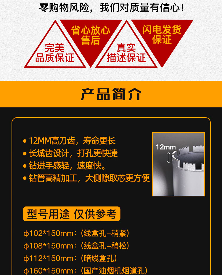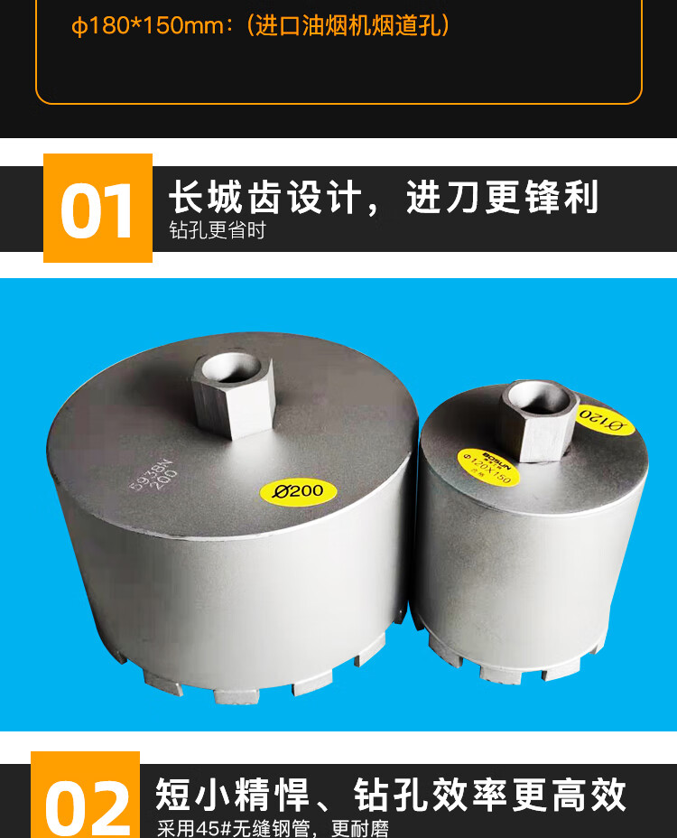 Bo deep water drill bit 83-200*150 for drilling reinforced concrete ultra-fast and durable opening box range hood short drill bit 83*150mm
