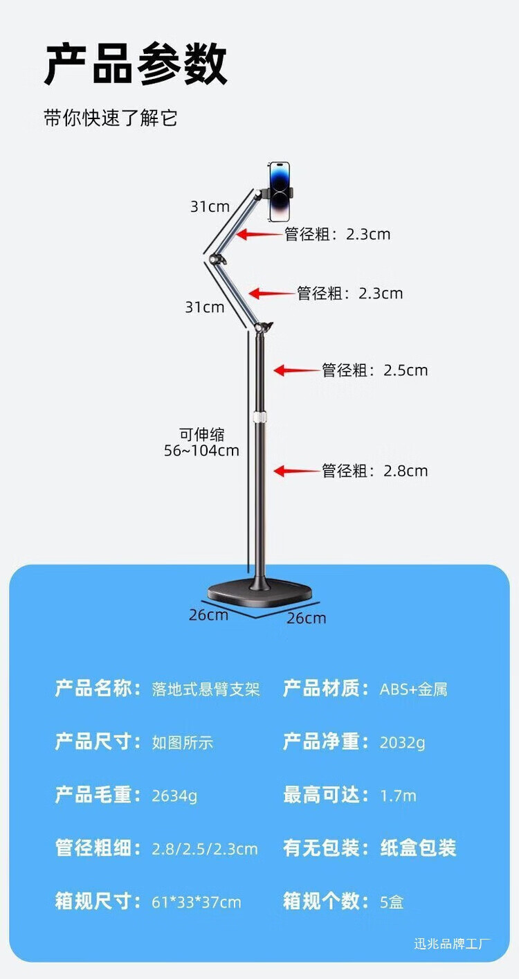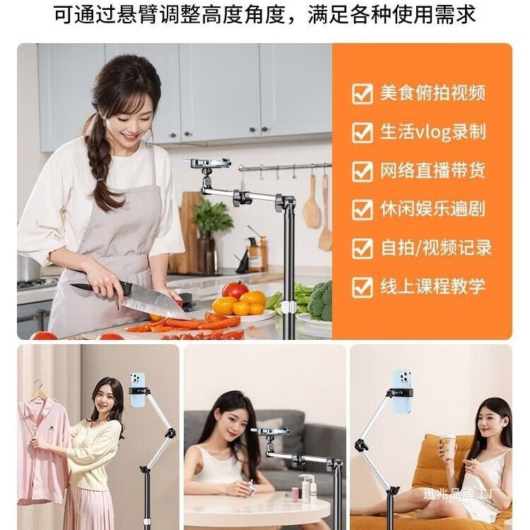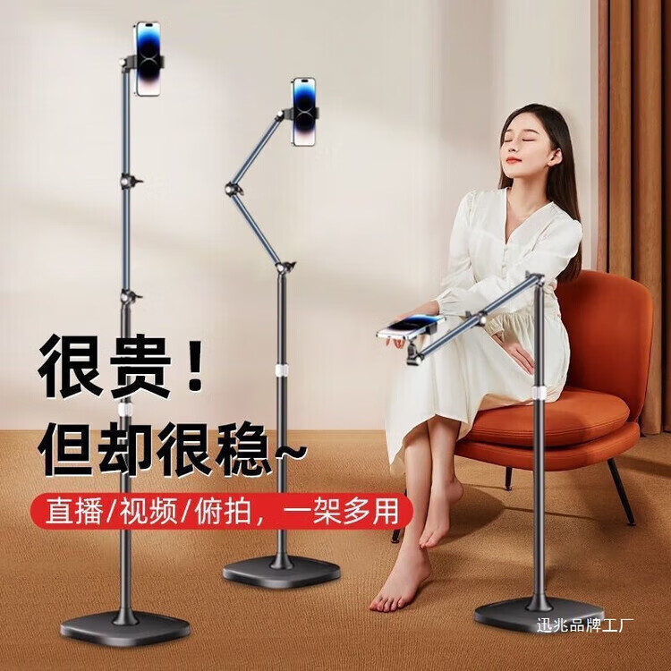 Zhaoshan 2025 straight mobile phone stand overhead shot portable wall-mounted lazy 360 rotating cantilever floor-standing cantilever stand green 1.68m upgraded version mobile phone and tablet dual-use version