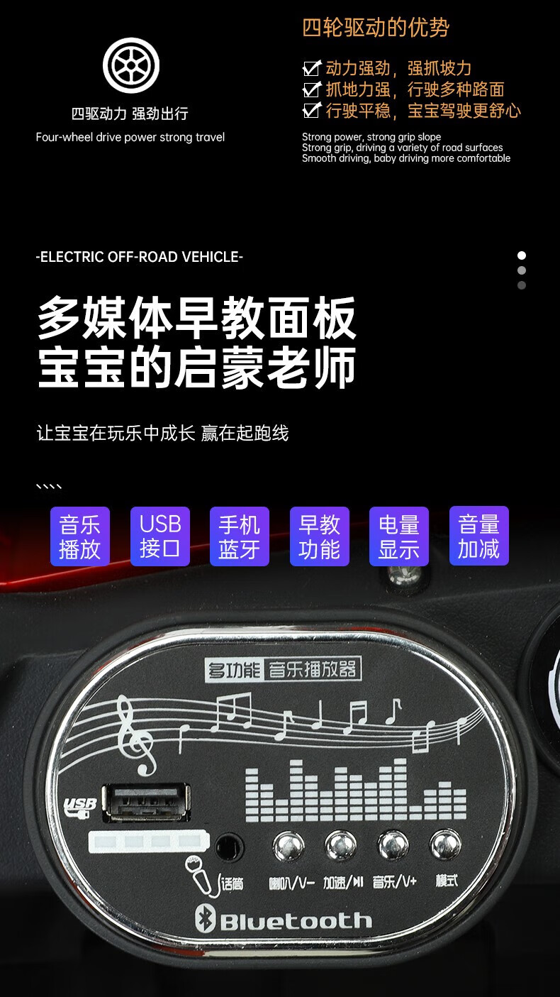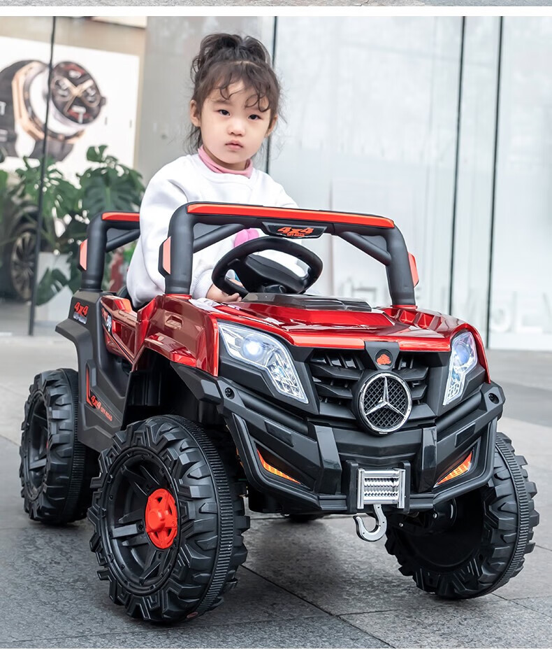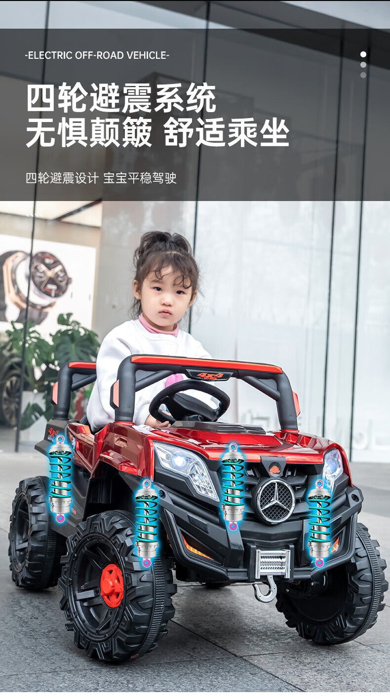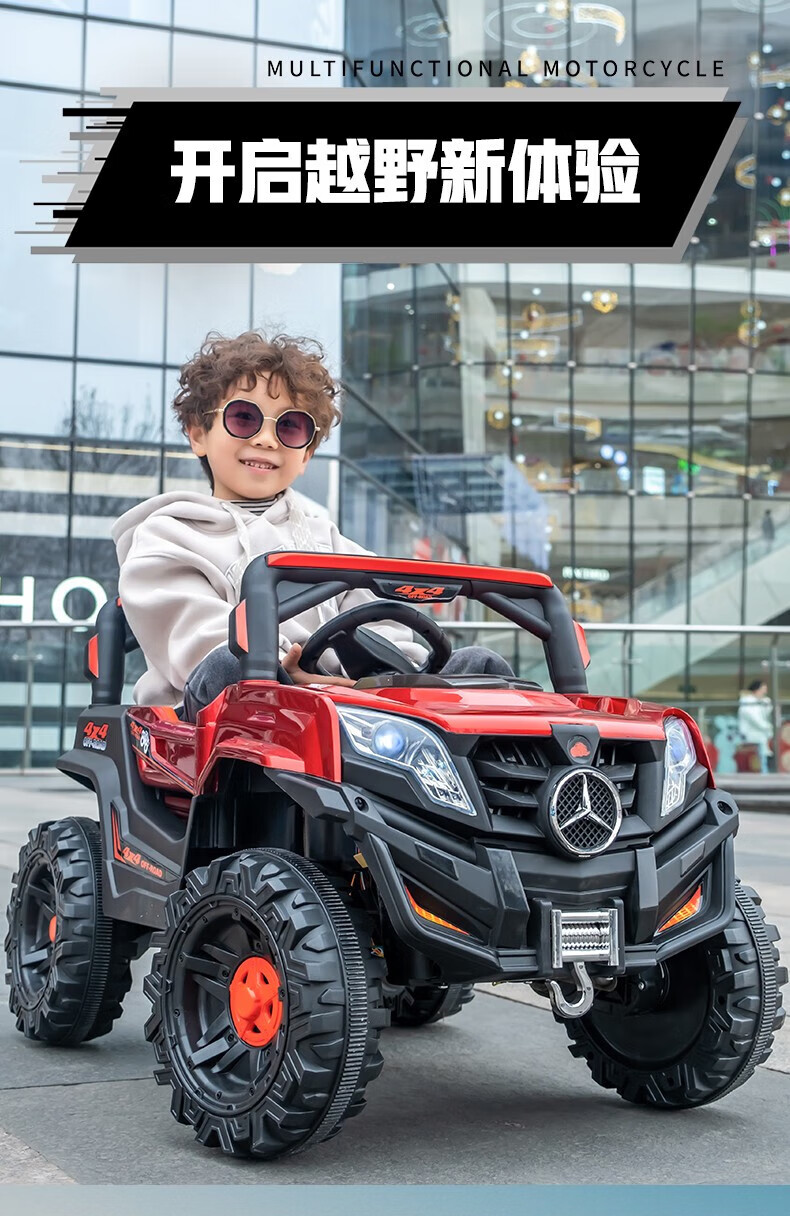 He Jiagong children's electric car four-wheel remote control car infant toy car can sit in a baby swing stroller red + Bluetooth early education + remote control + no swing