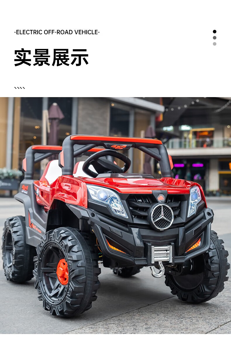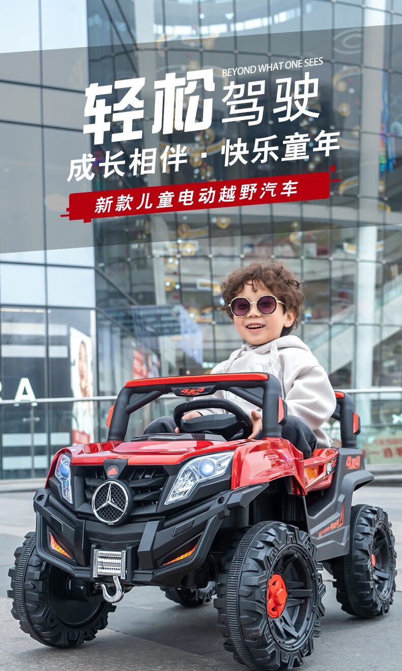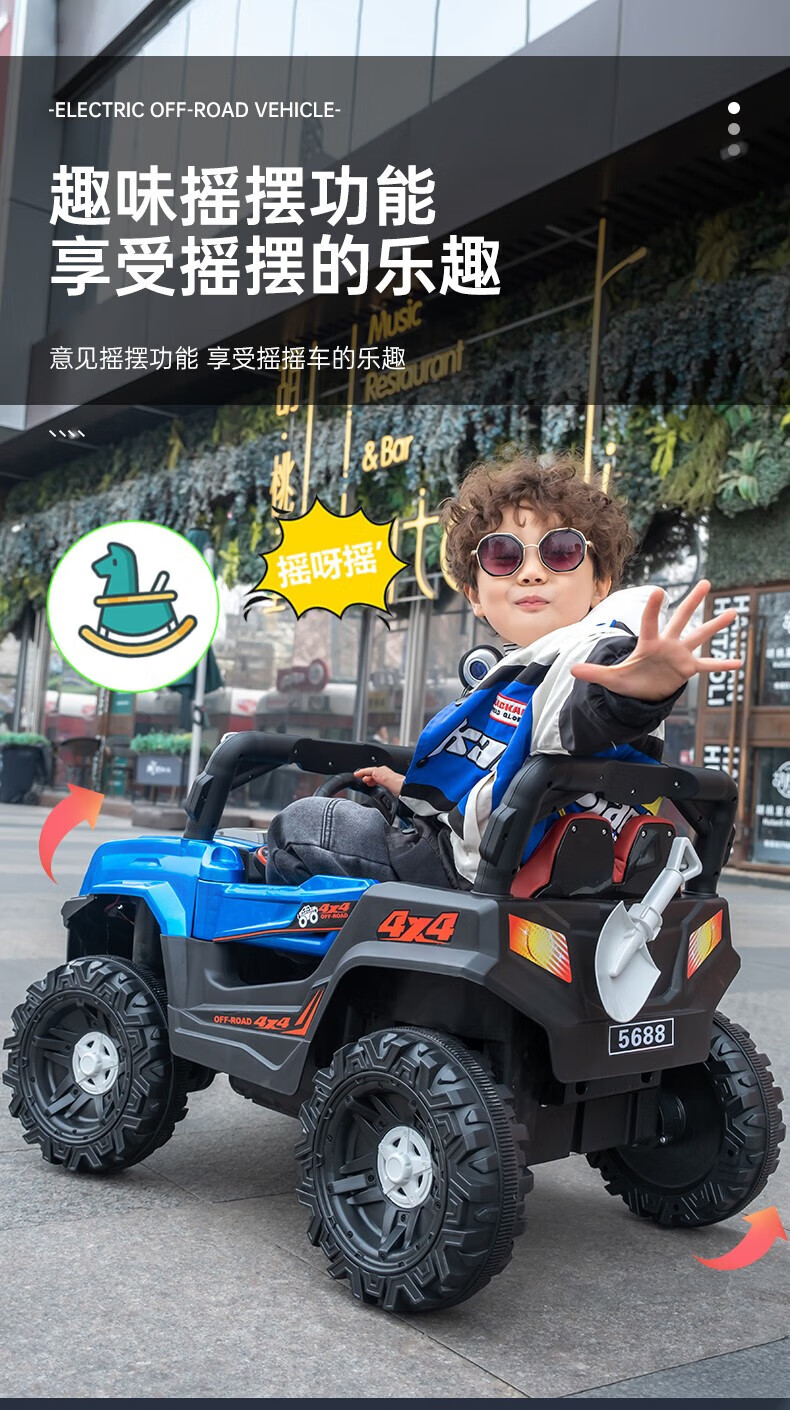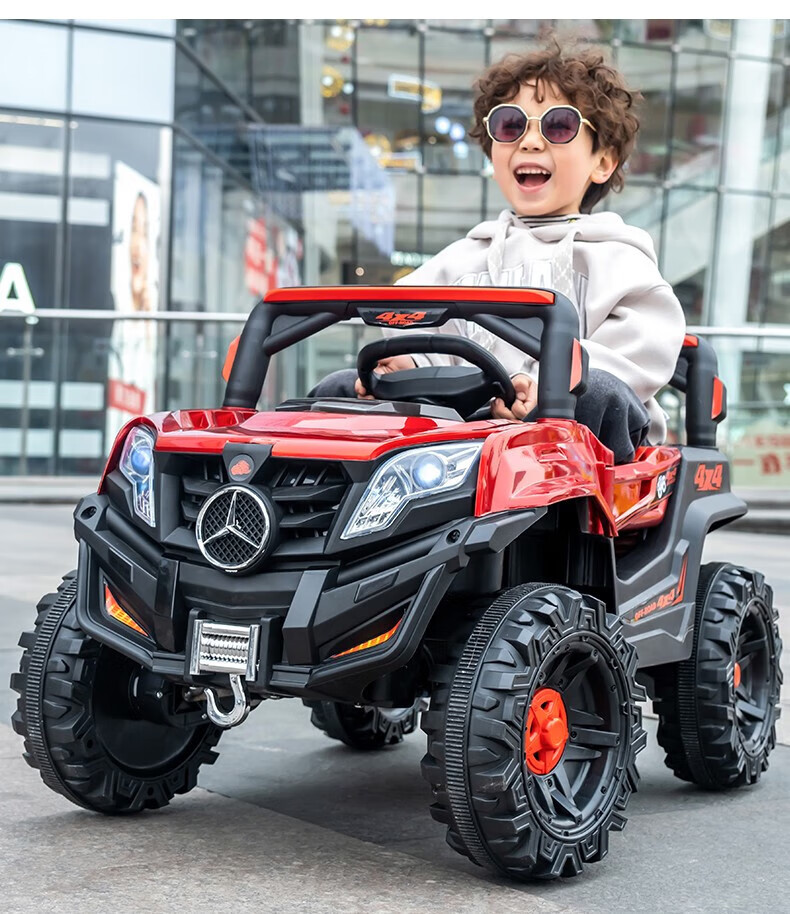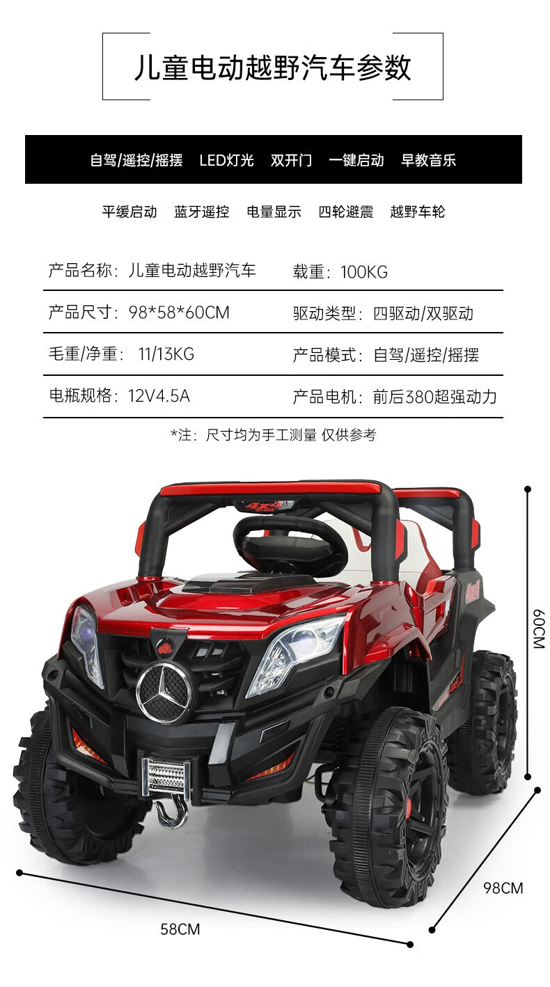 He Jiagong children's electric car four-wheel remote control car infant toy car can sit in a baby swing stroller red + Bluetooth early education + remote control + no swing