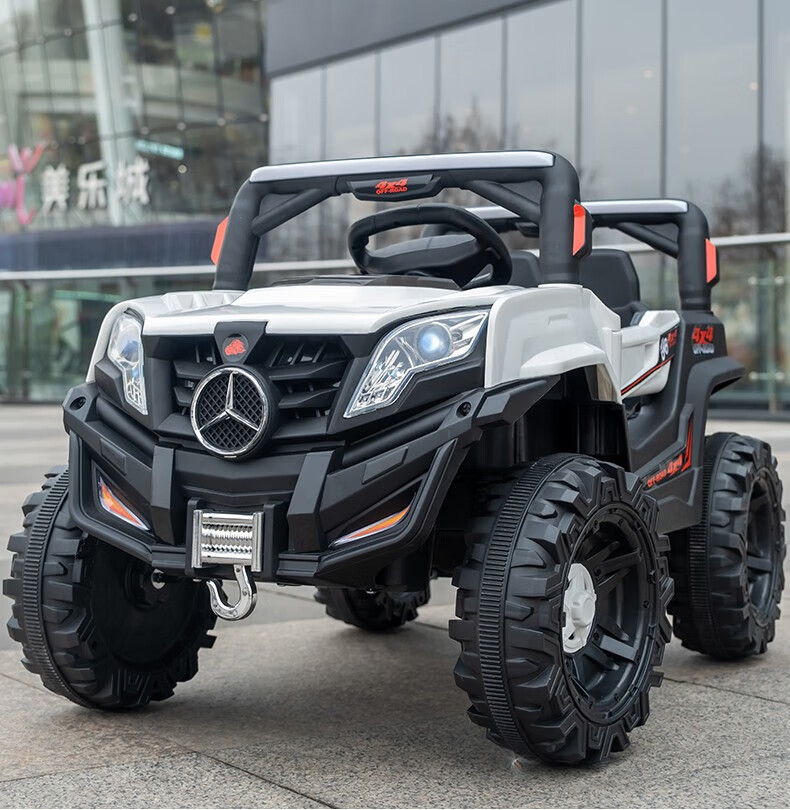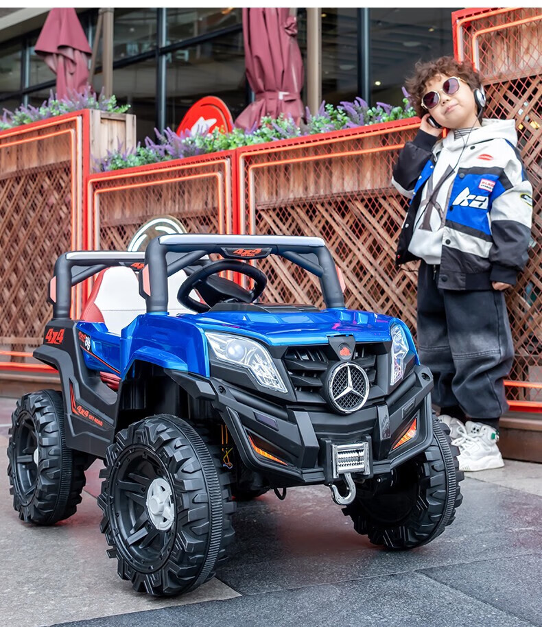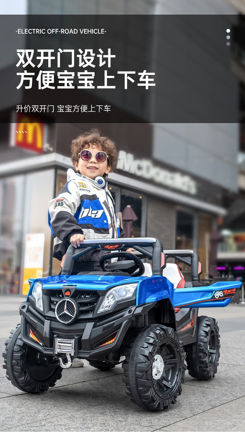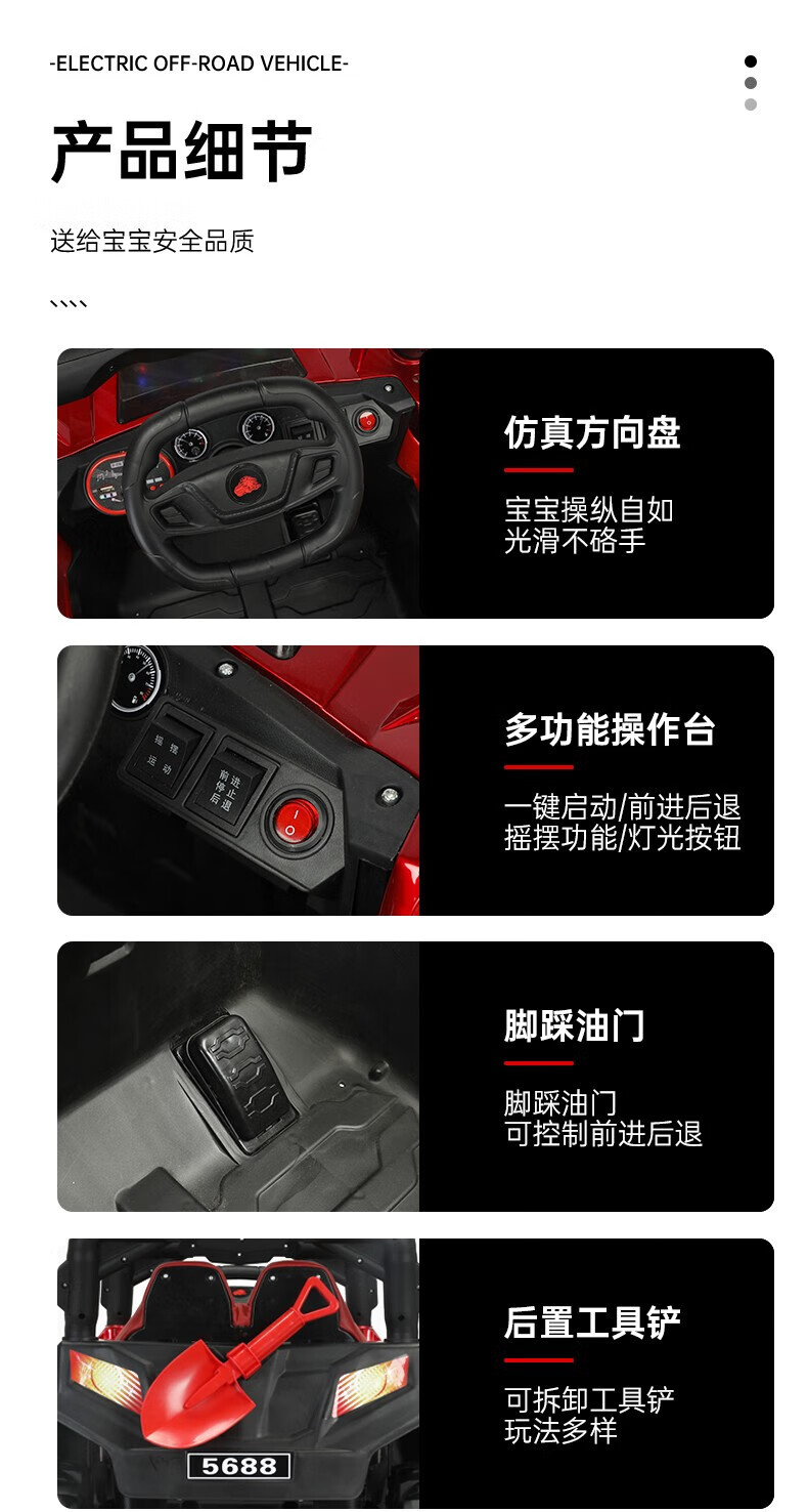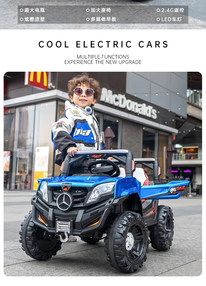 He Jiagong children's electric car four-wheel remote control car infant toy car can sit in a baby swing stroller red + Bluetooth early education + remote control + no swing