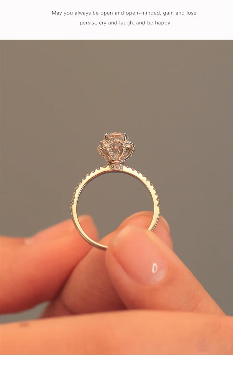 Pt950 platinum bloom rose moissanite diamond ring female hand bouquet diamond ring wedding proposal gift girlfriend bloom diamond ring 50 points - light luxury style
