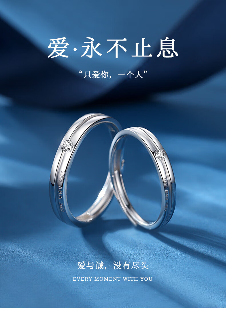Pt950 platinum couple ring for men and women, niche design, high-end open ring, birthday gift for girlfriend, love never ends, open ring - light luxury style
