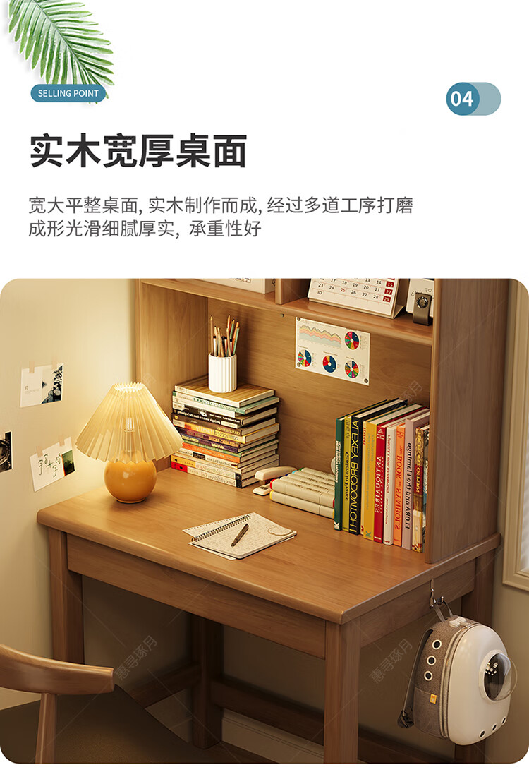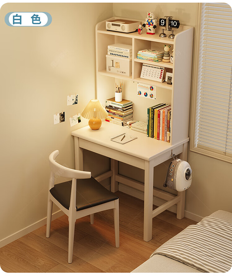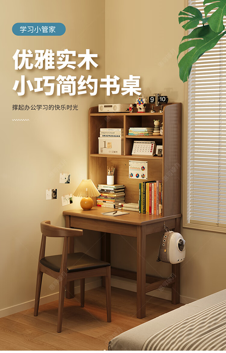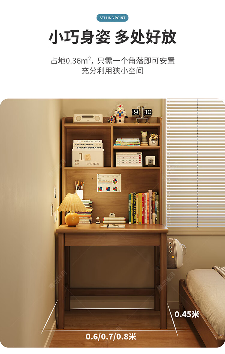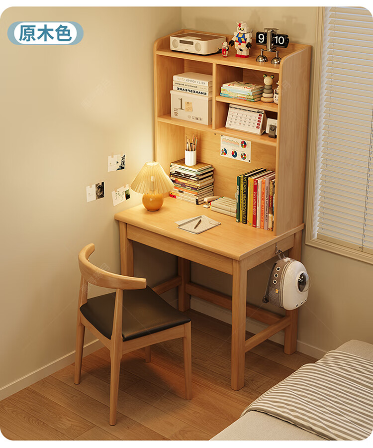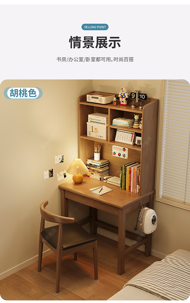 Huixun solid wood desk and bookshelf integrated simple home children's primary school student writing desk small apartment bedroom bedside computer table walnut color #desk + bookshelf 60cm*45cm*75cm total height 155cm