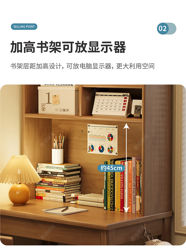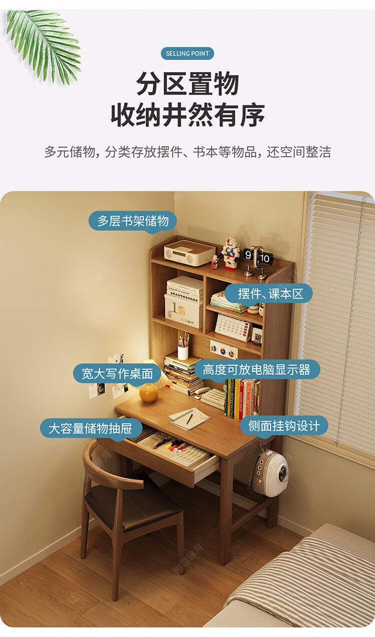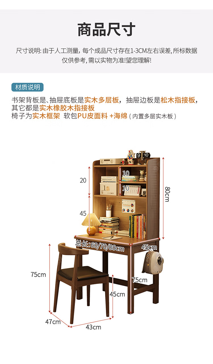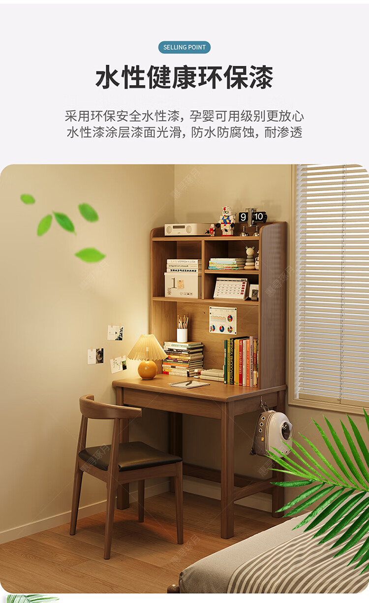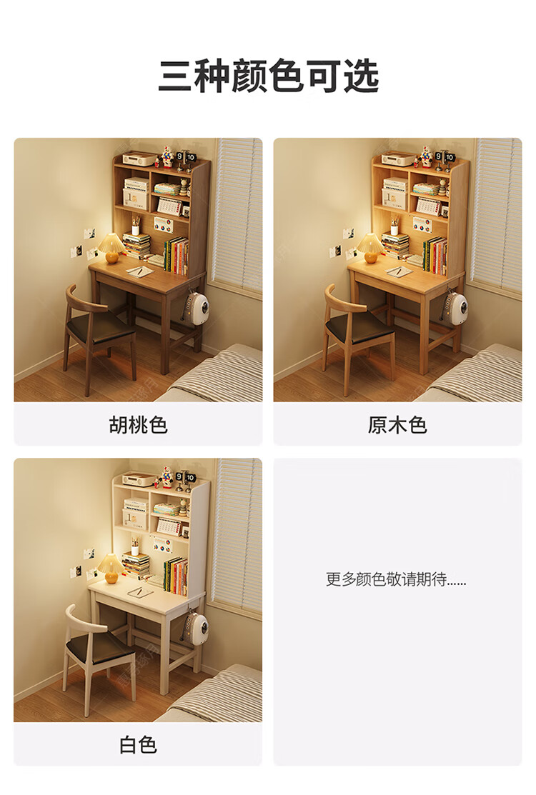 Huixun solid wood desk and bookshelf integrated simple home children's primary school student writing desk small apartment bedroom bedside computer table walnut color #desk + bookshelf 60cm*45cm*75cm total height 155cm