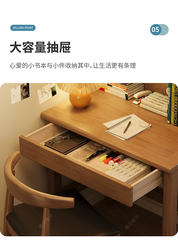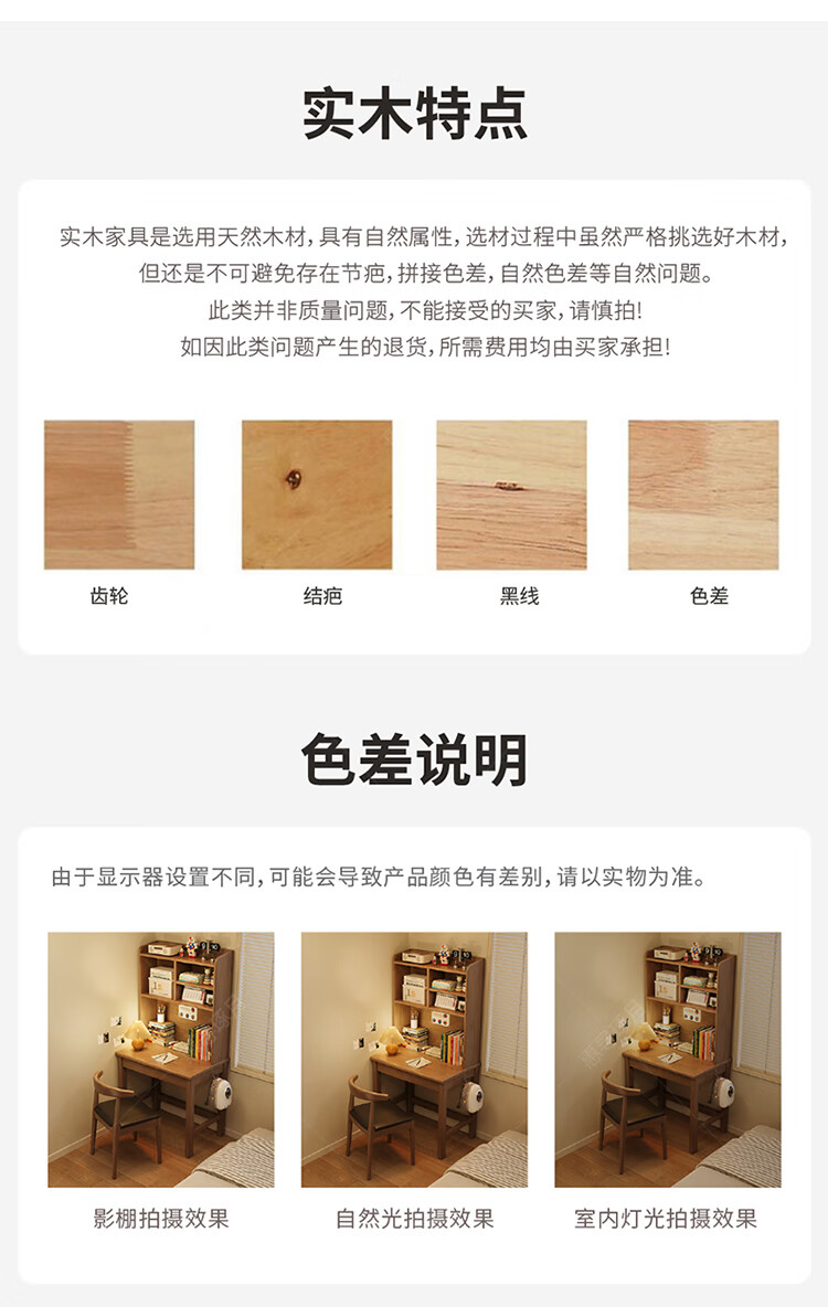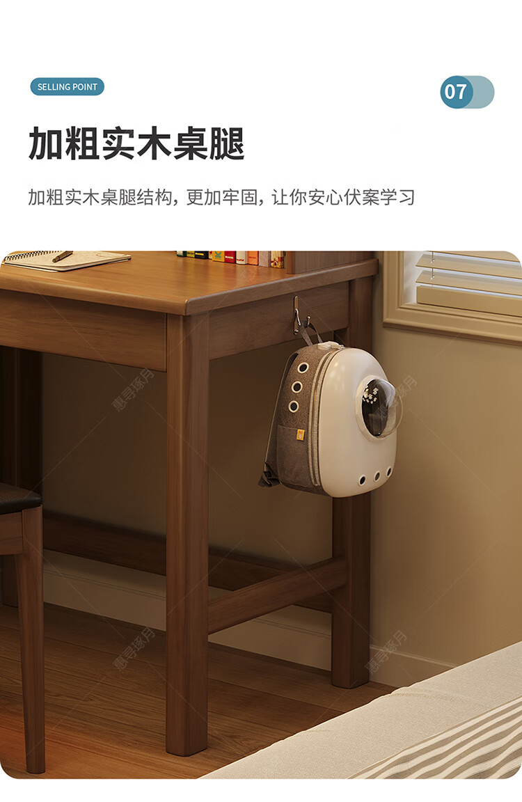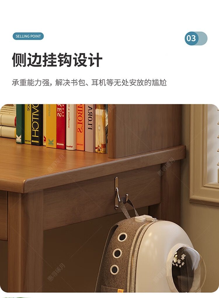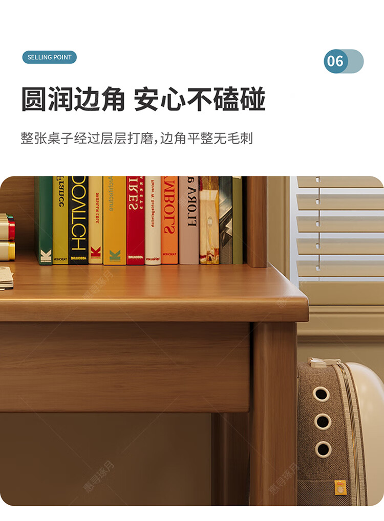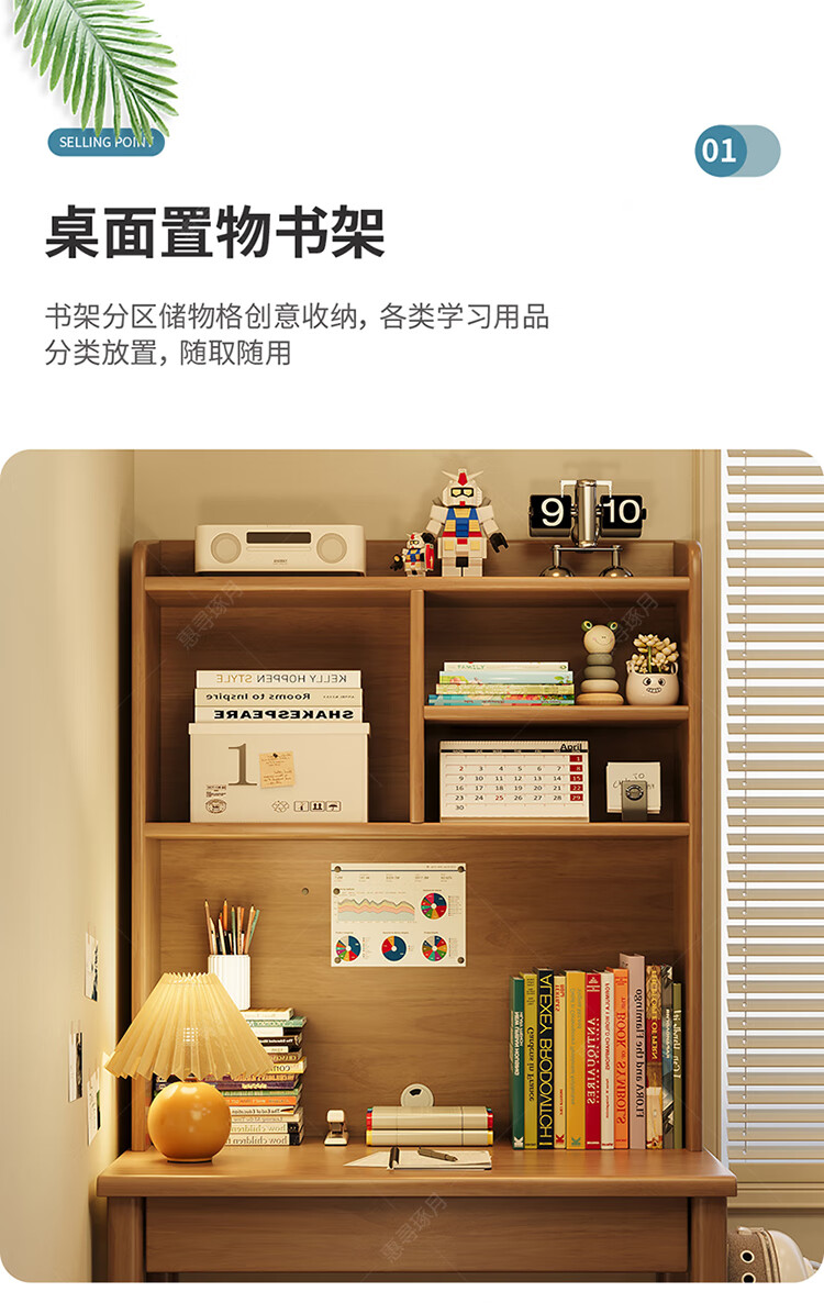 Huixun solid wood desk and bookshelf integrated simple home children's primary school student writing desk small apartment bedroom bedside computer table walnut color #desk + bookshelf 60cm*45cm*75cm total height 155cm