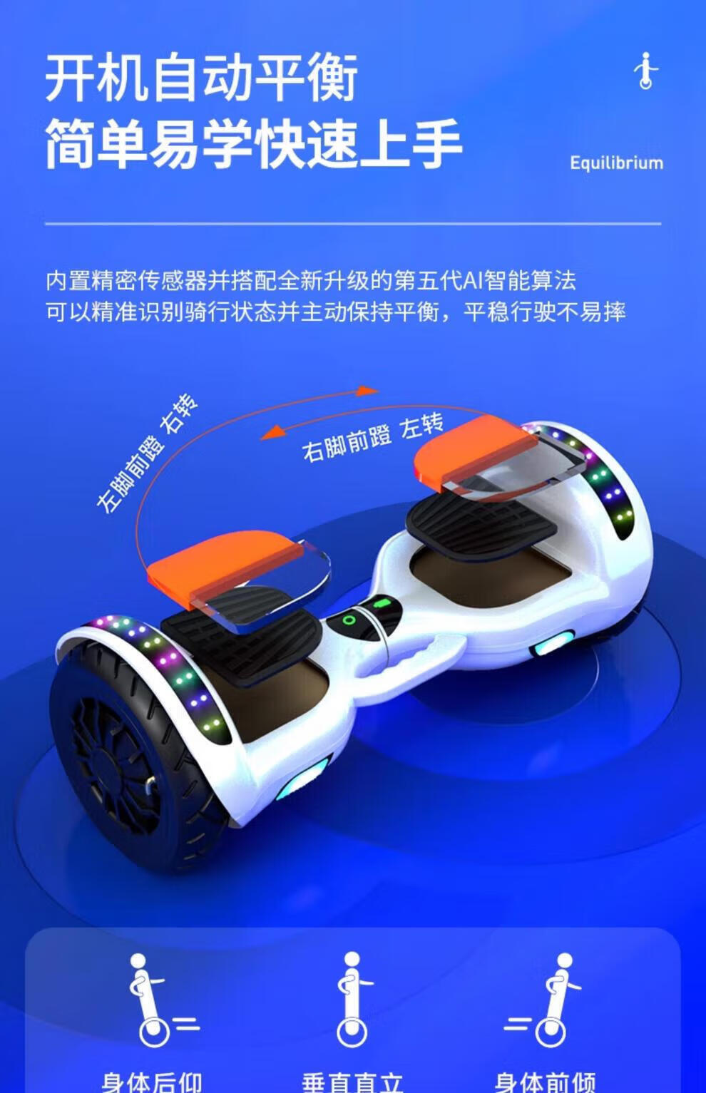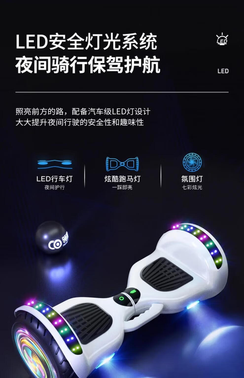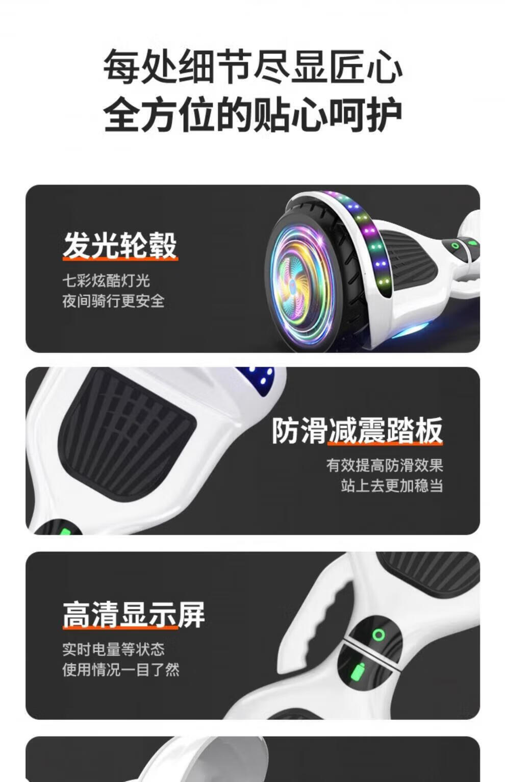 Lingao smart electric self-balancing car 2024 new model 6-8-10 to 15 years old and above children's parallel car 6.5-inch upgraded music version white self-balancing + safety