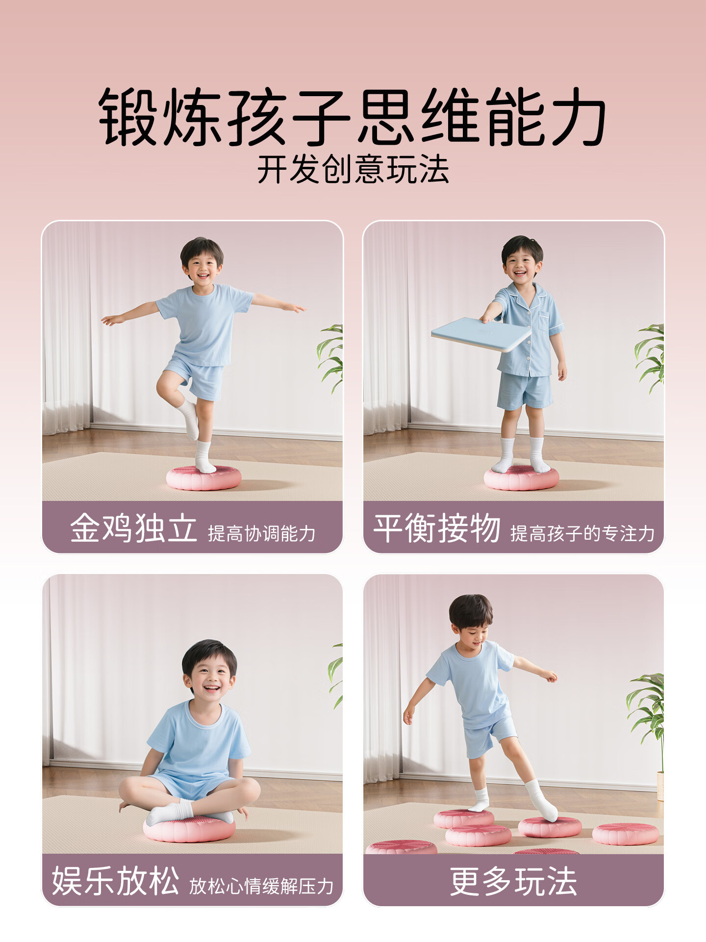 Maifeite children's balance ball yoga foot pedal inflatable disc air cushion core sensory training equipment home vestibular acupressure board pink - diameter 34cm / environmentally friendly and odorless / free pump
