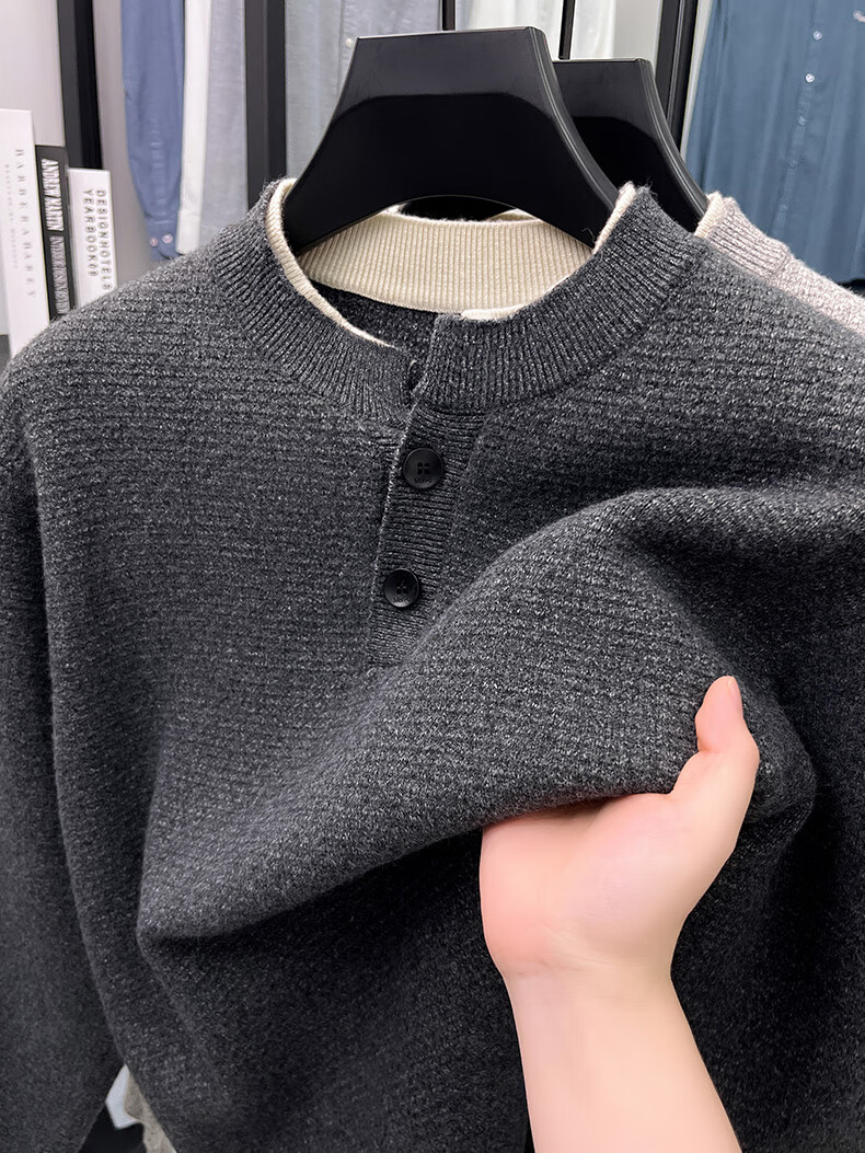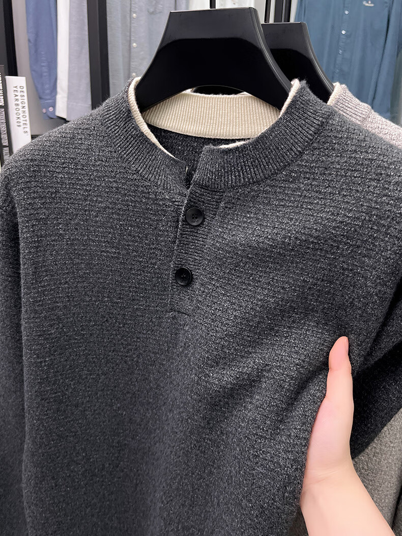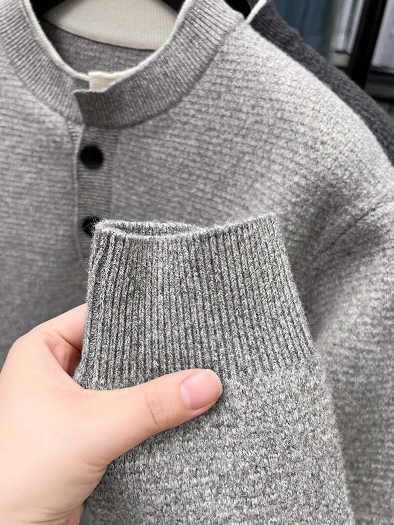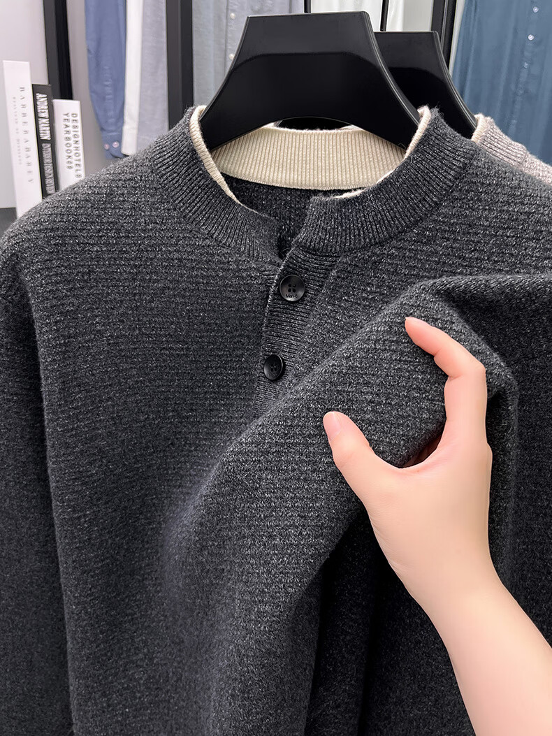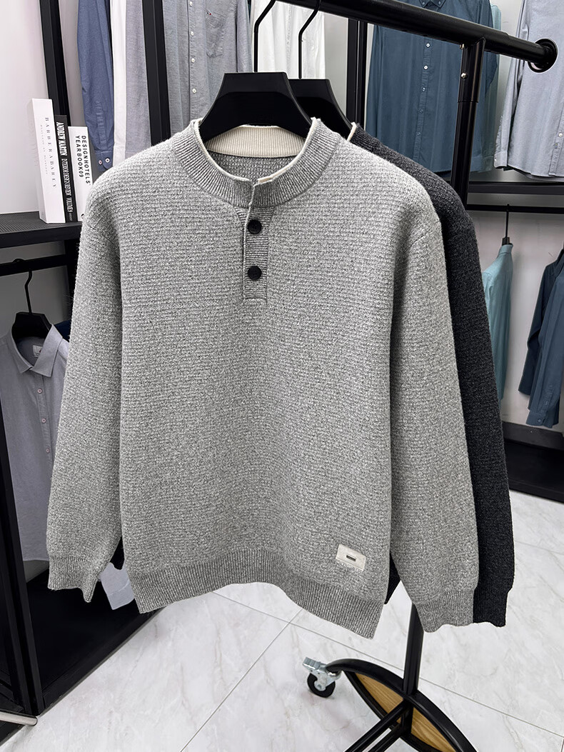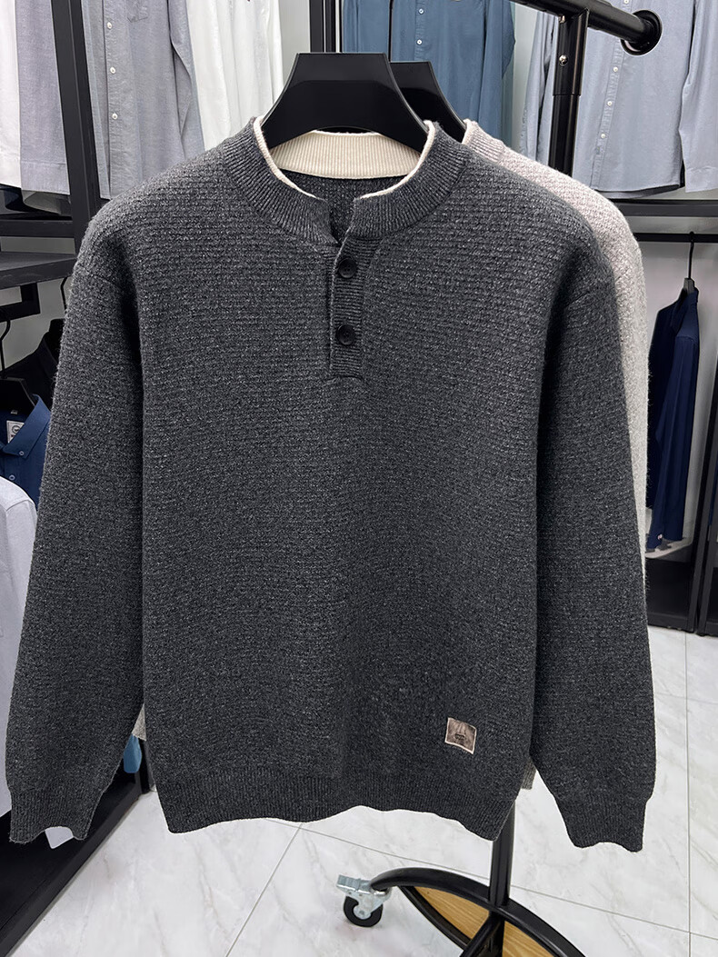 Pierre Cardin Henry Neck Sweater Men's Autumn and Winter New Thickened Sweater High-End Round Neck Baseline Clothes Men's Light Gray M Recommended 90-120Jin Jin equals 0.5 kg