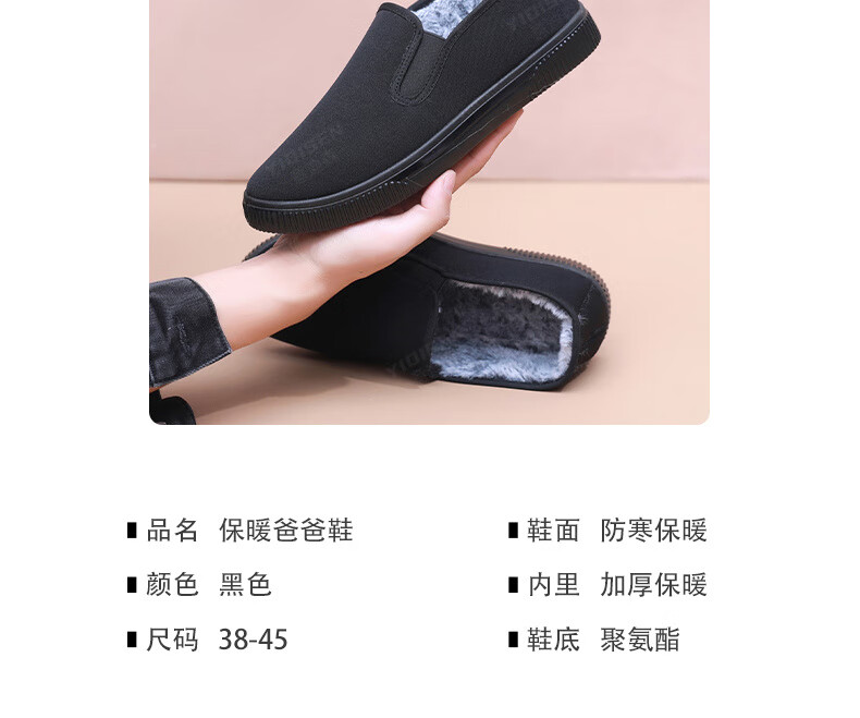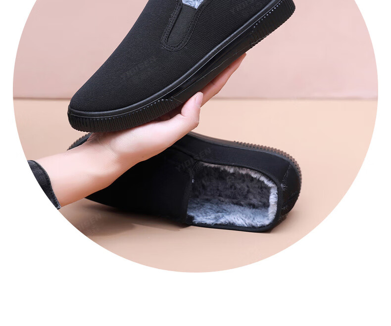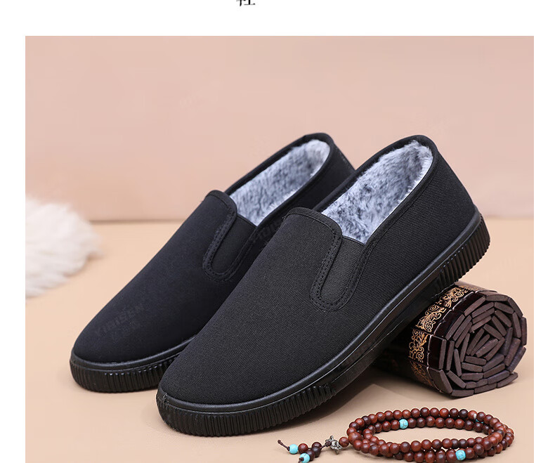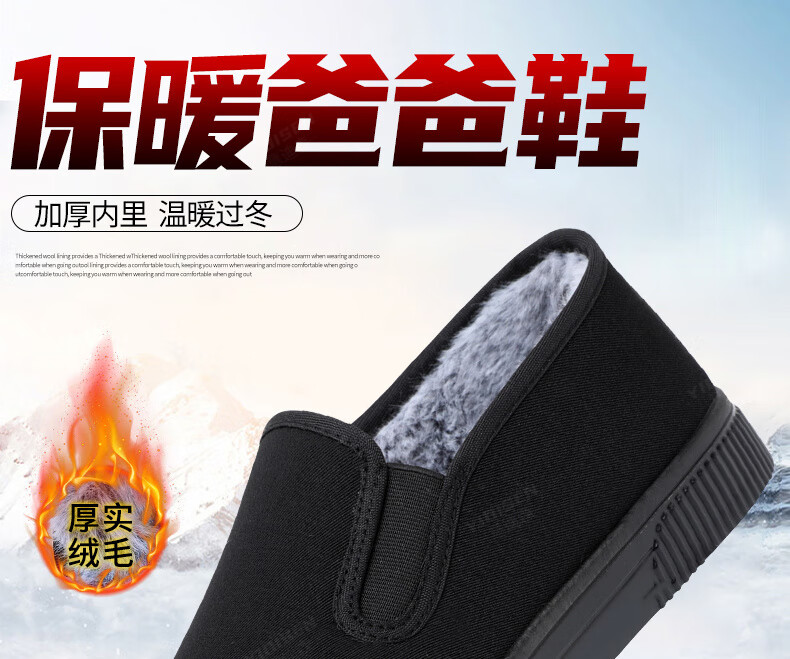 Edison old Beijing cotton shoes, winter cloth shoes for men, thickened with velvet, high-top, warm, anti-slip, soft-soled dad shoes for the elderly, black, velvet, 41 (255mm), regular size