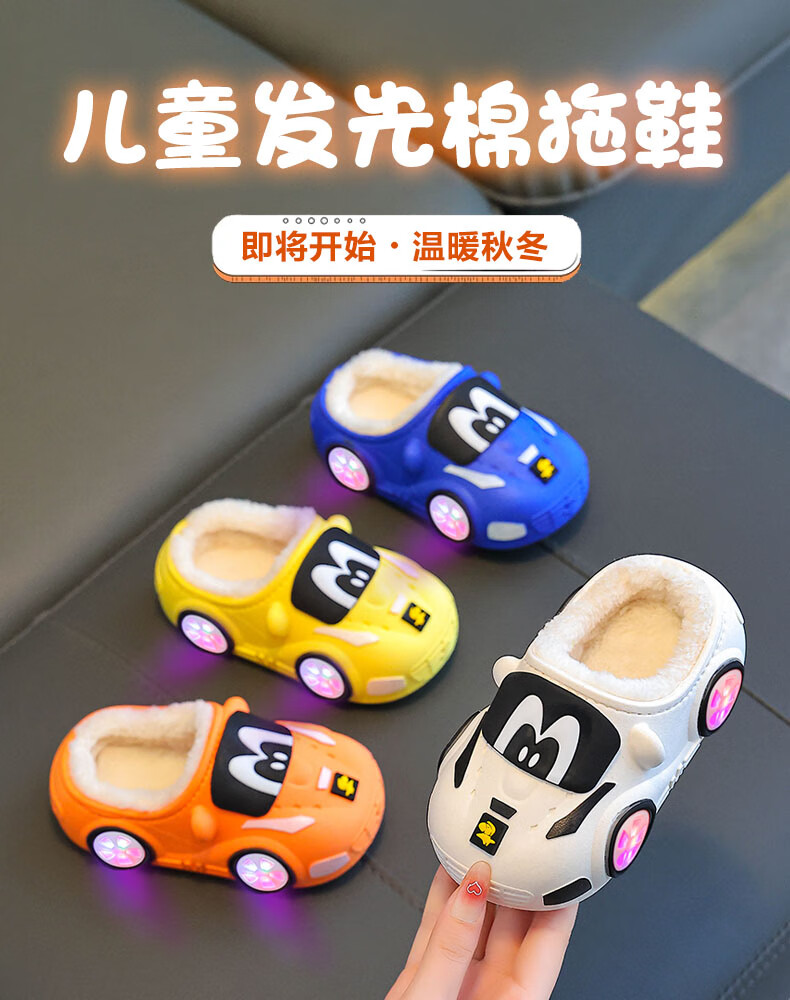 G.duck Little Yellow Duck Children's Cotton Slippers Boys Light Up and Glow 2025 New Autumn and Winter Waterproof and Warm Home Bag Heels for Men Car Light Up Style Bag Heels - Blue 22 23 Sizes Inner Length 14.5cm Suitable for Feet Length 13.5 to 1