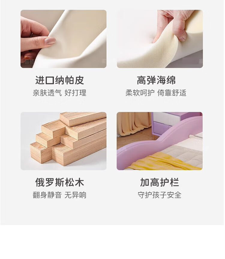 Ximengbao (X.M.B) Melody bed single bed for girls princess bedside bed extra wide crib with guardrail crib guardrail bed + latex mattress + bed cabinet 2 1500mm*1900mm x with