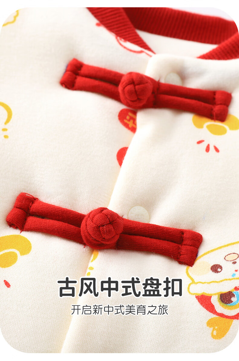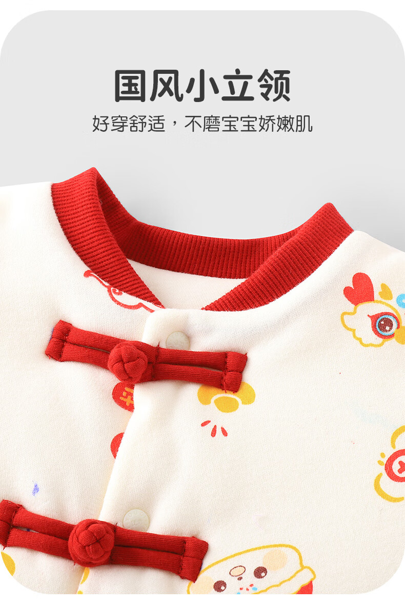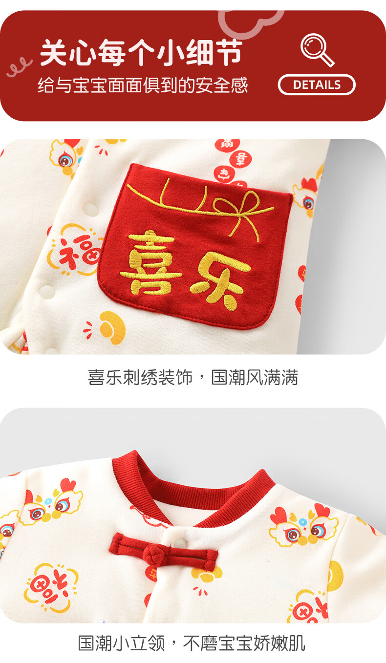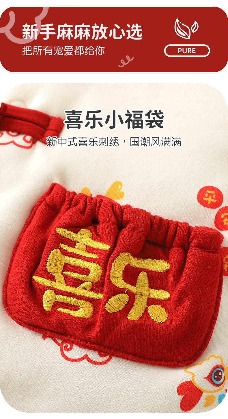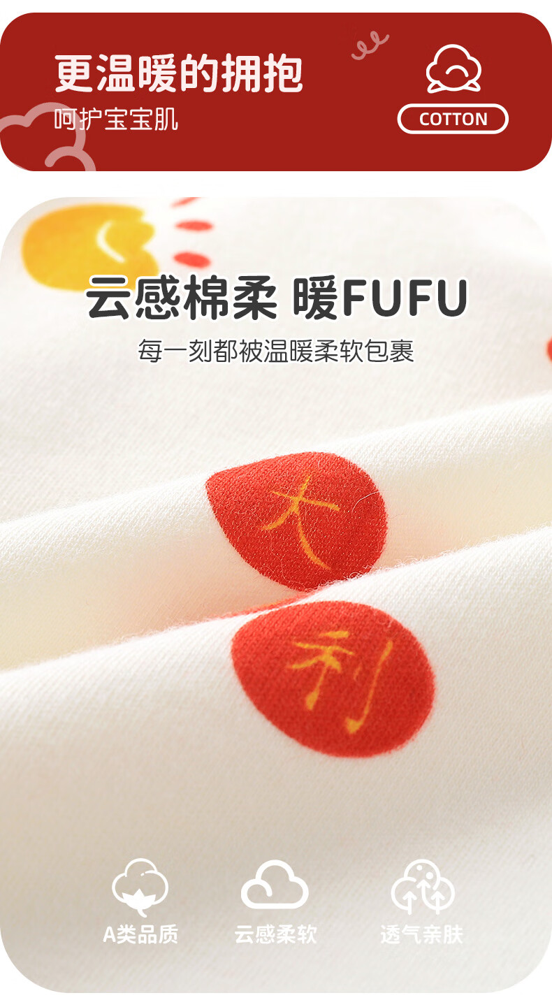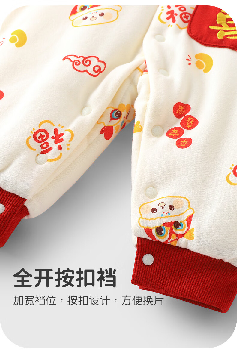 Youqi baby full-month clothing thickened jumpsuit autumn and winter baby 100-day one-year-old clothing warm cotton clothing festive New Year greetings clothing Happy little lucky bag thickened and warm 66cm