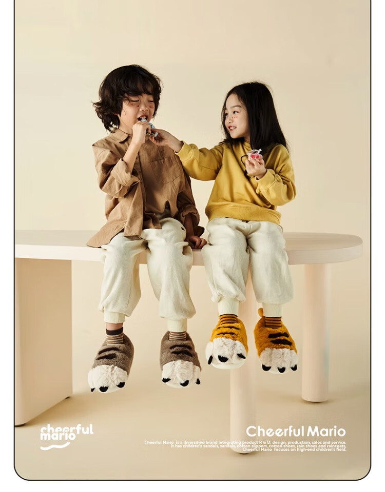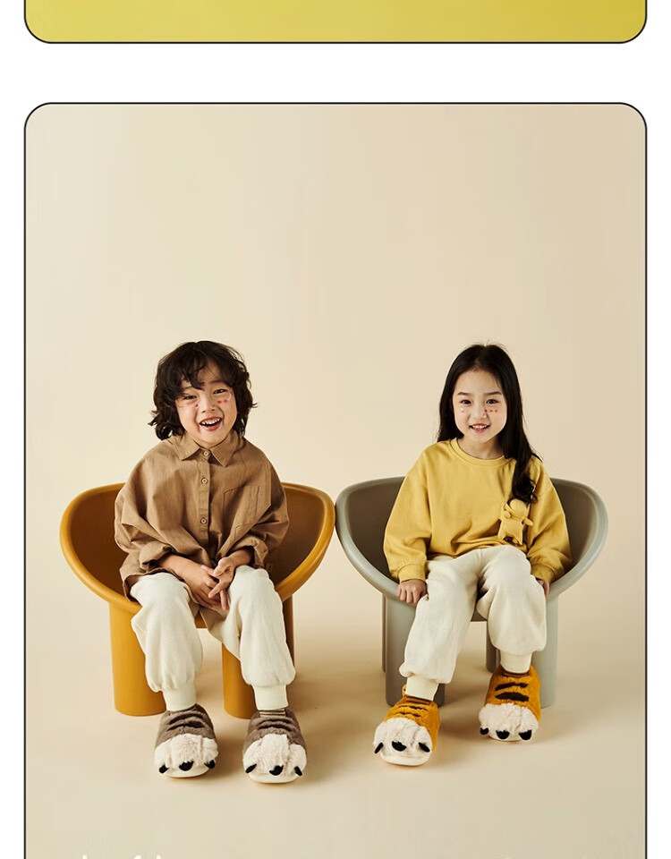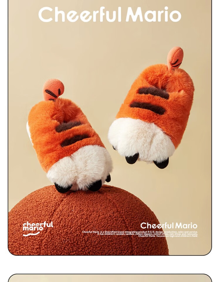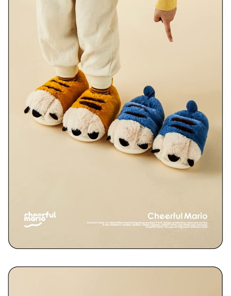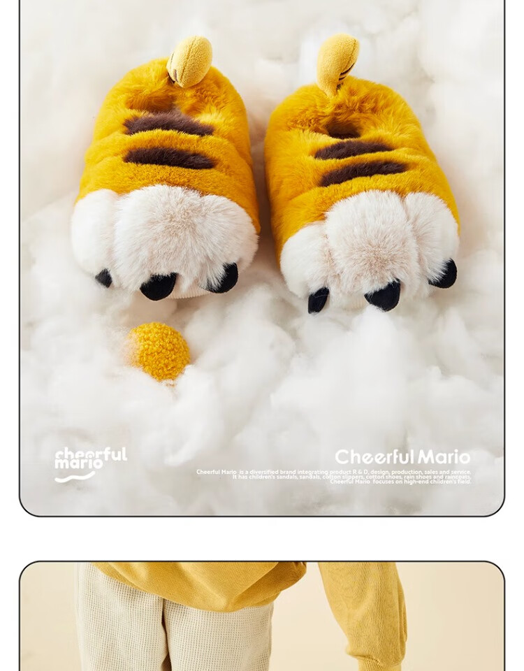 G.duck Little Yellow Duck Children's Cotton Slippers Boys Tiger Paws Autumn and Winter New Indoor Furry Slippers Baby Girls Cotton Ginger Yellow 17 cm inner length suitable for feet 16cm long