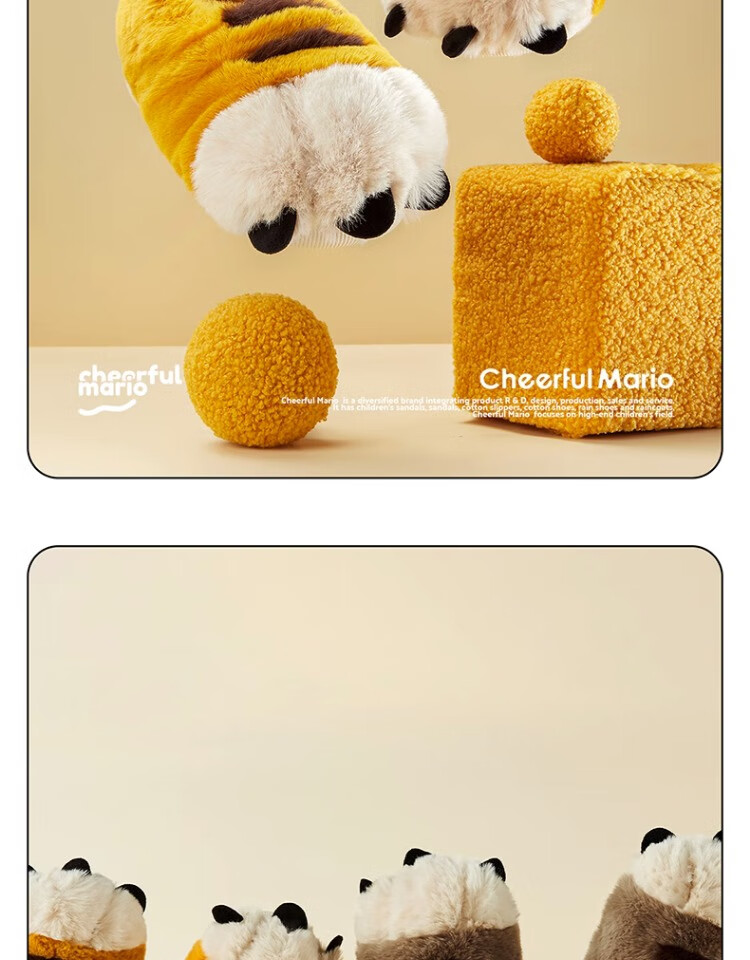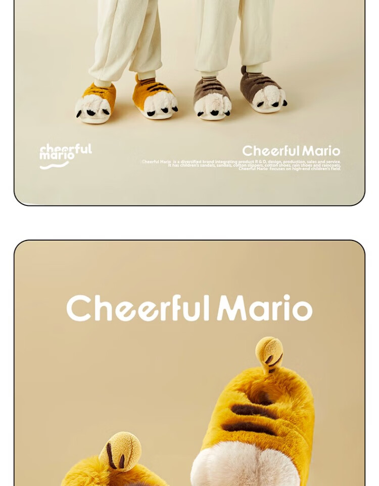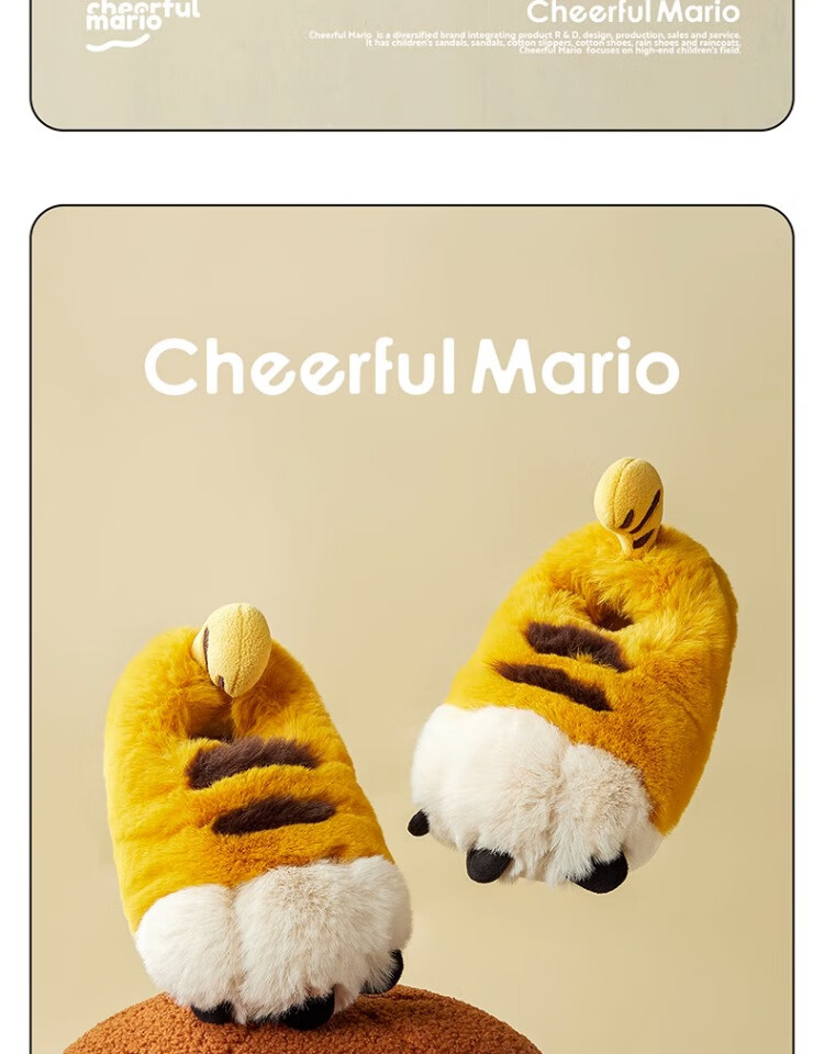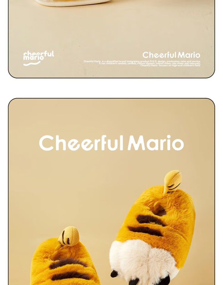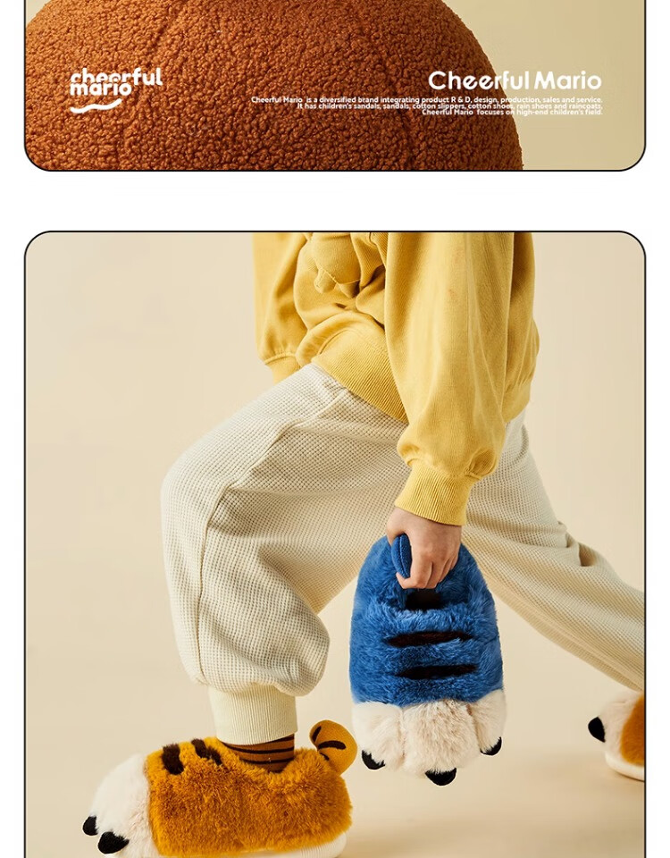 G.duck Little Yellow Duck Children's Cotton Slippers Boys Tiger Paws Autumn and Winter New Indoor Furry Slippers Baby Girls Cotton Ginger Yellow 17 cm inner length suitable for feet 16cm long