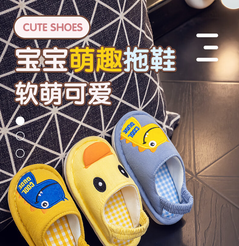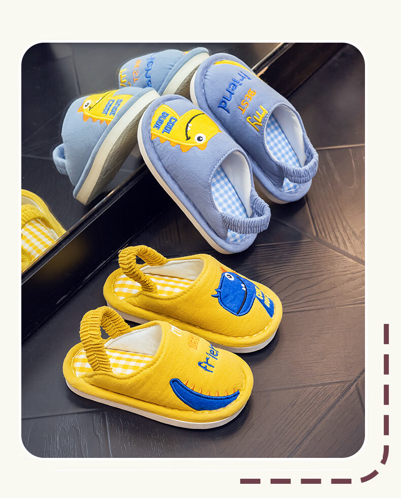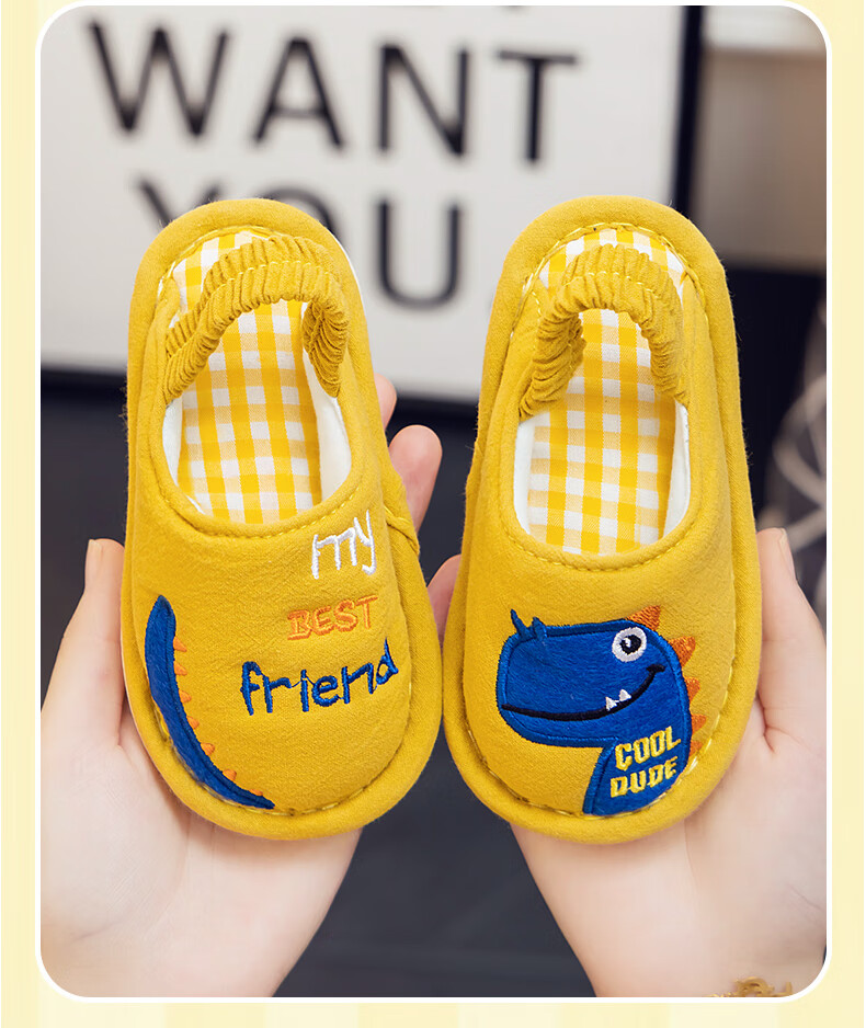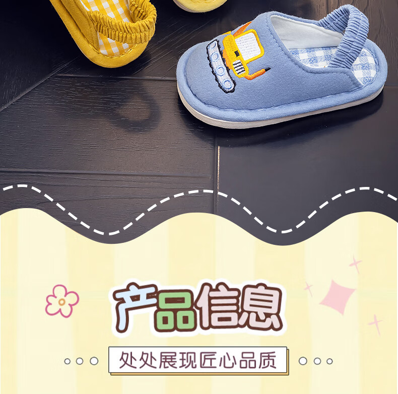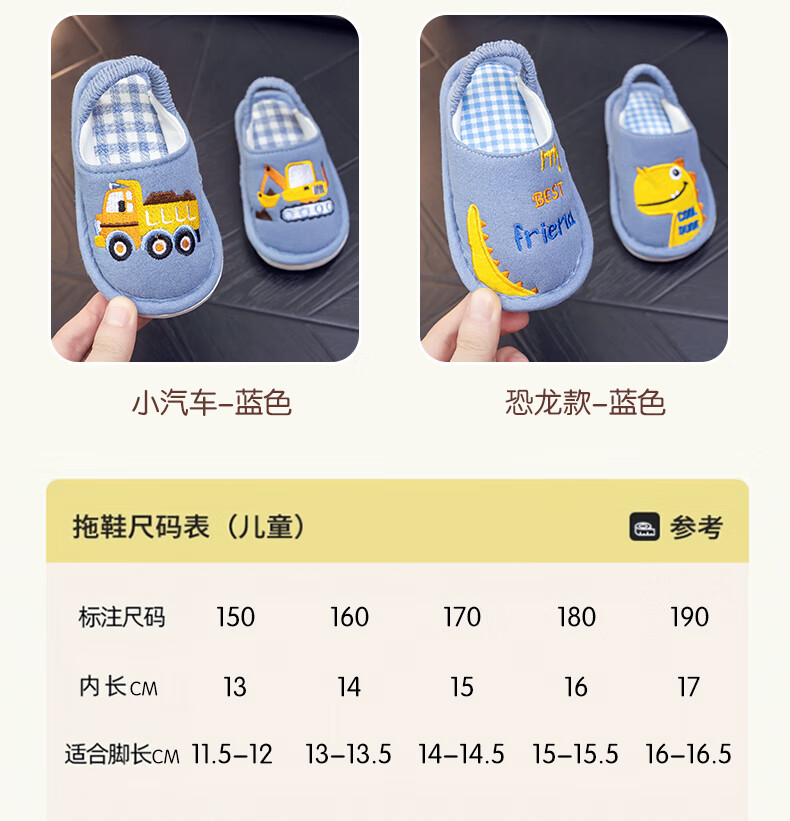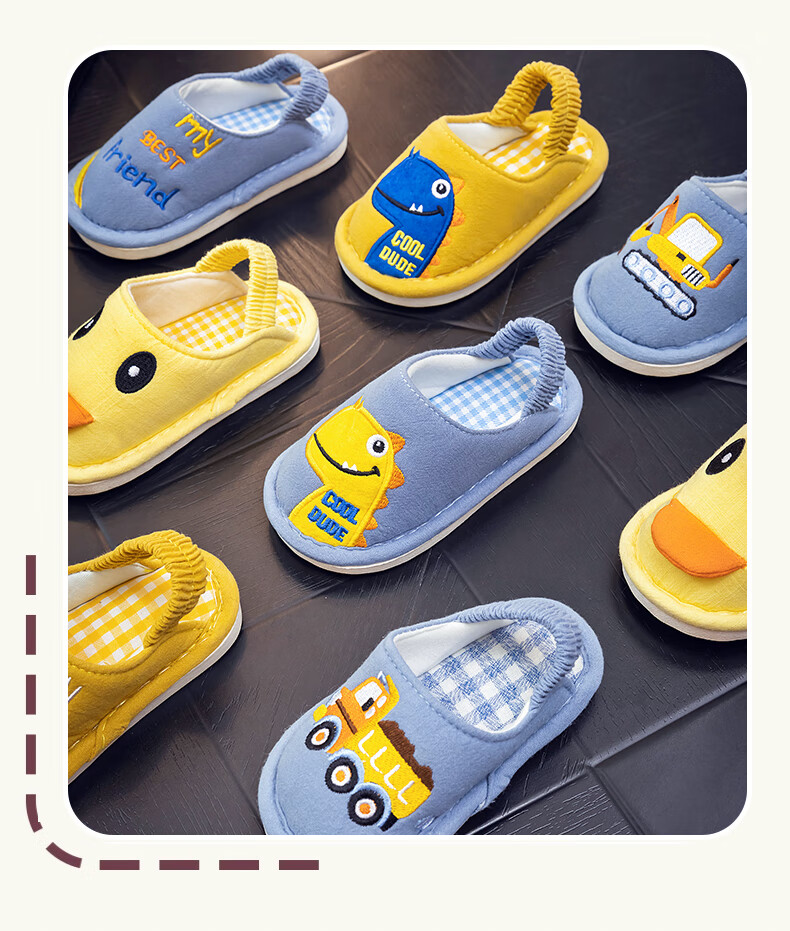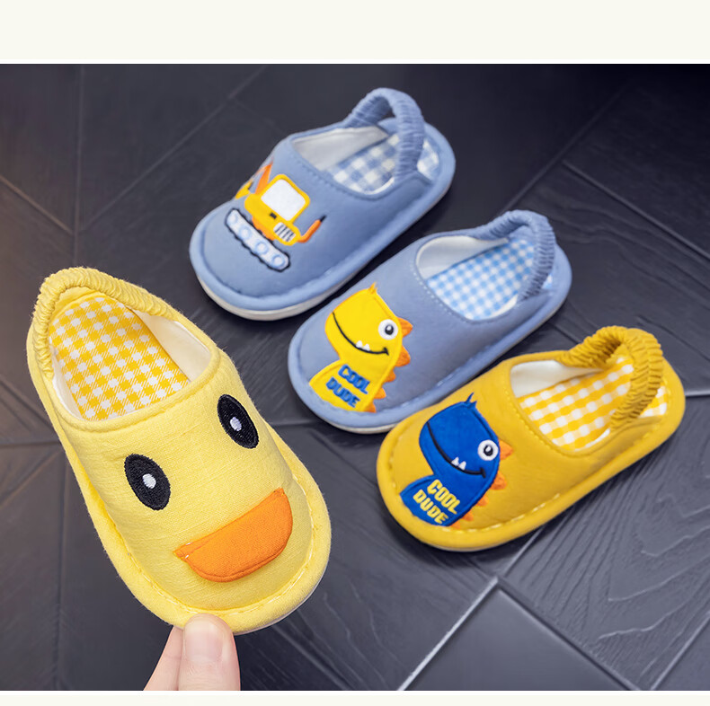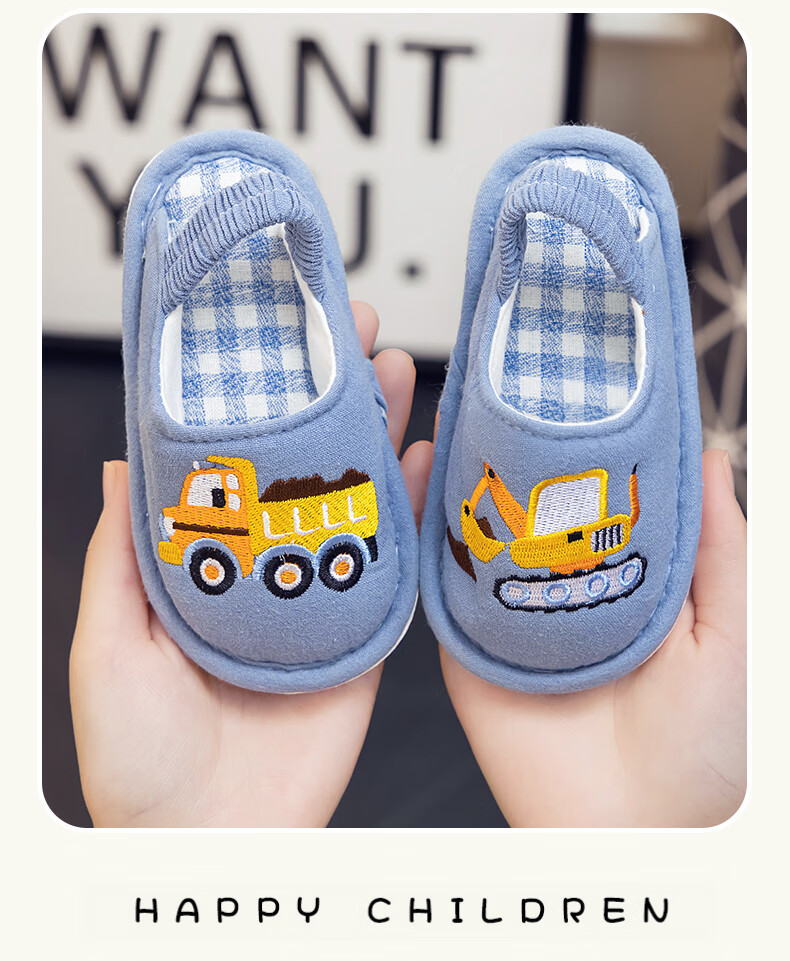 G.duck little yellow duck children's slippers winter women's 1 non-slip 2-year-old infant boy indoor home girl baby cotton wool slippers blue engineering vehicle 10.5 150 yards inner length 13cm
