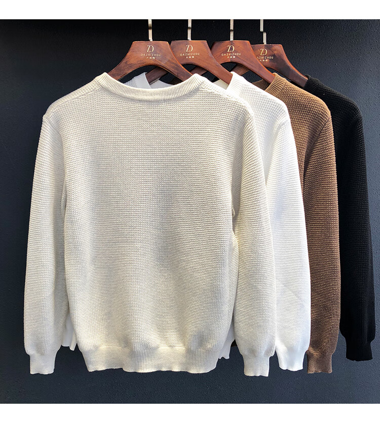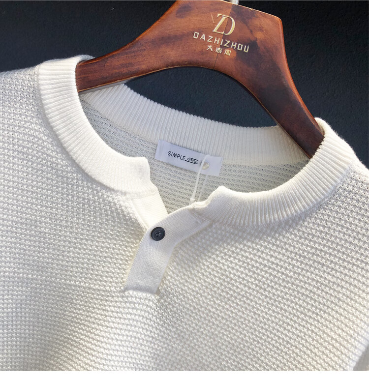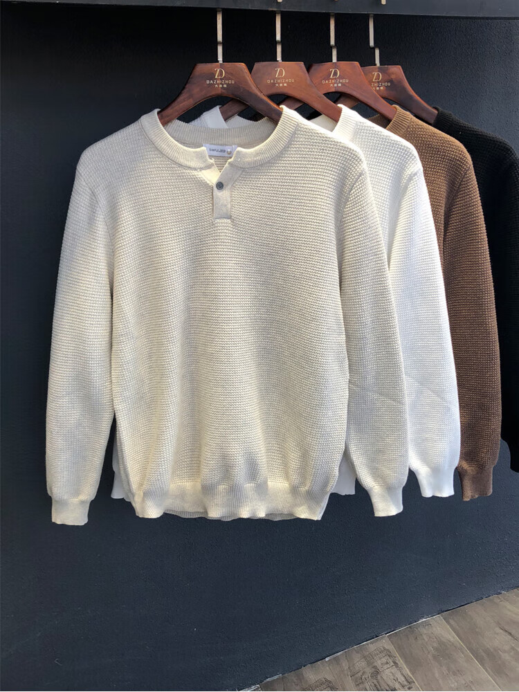 Beihai Erxiang 2025 Autumn New Men's Henry Collar Sweater Tops Versatile Simple Solid Color Breathable Fashion Bottoming White L 120-135Jin Jin is equal to 0.5 kg