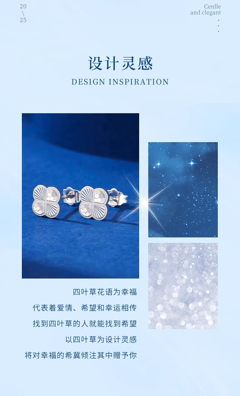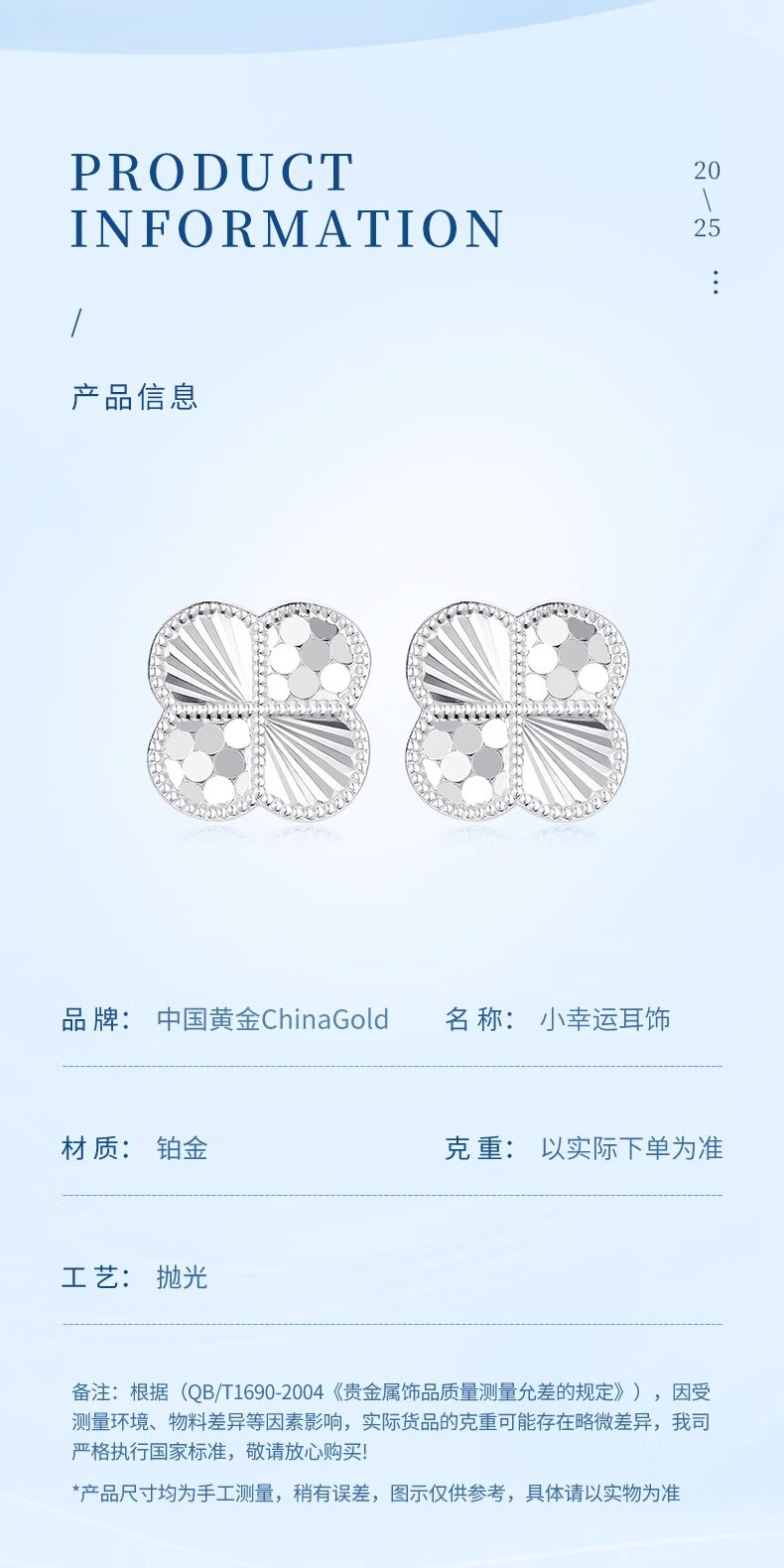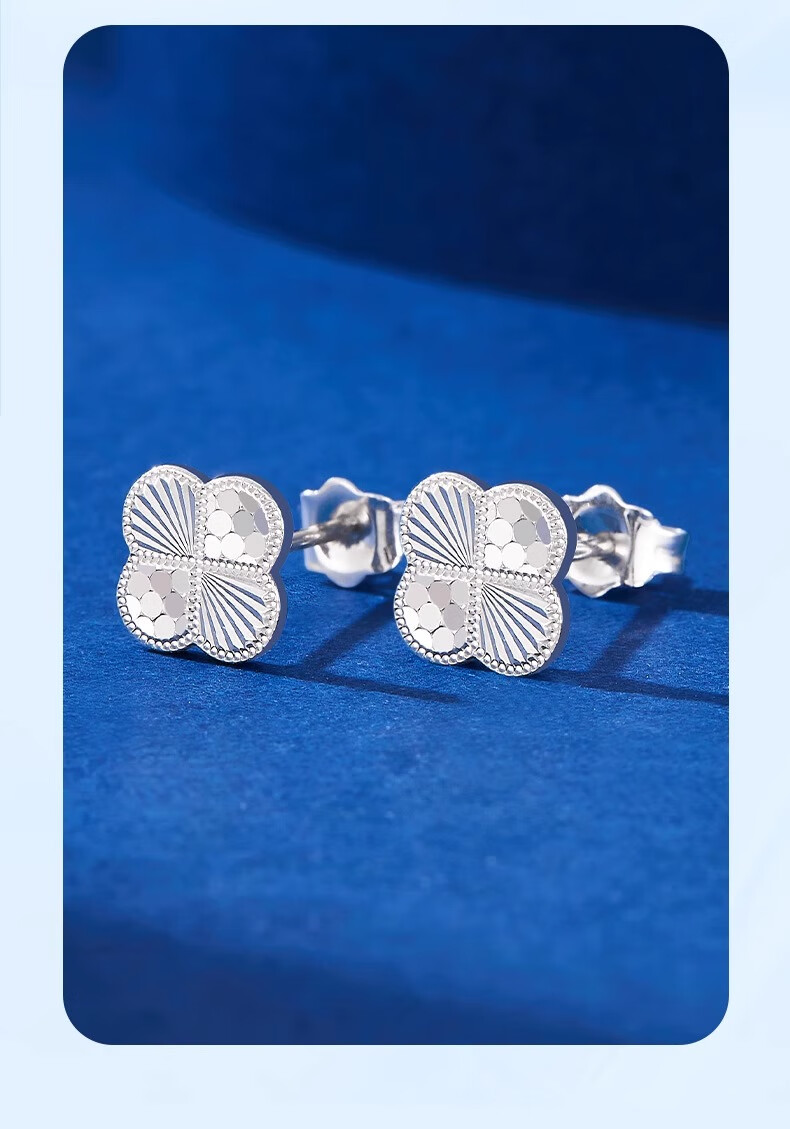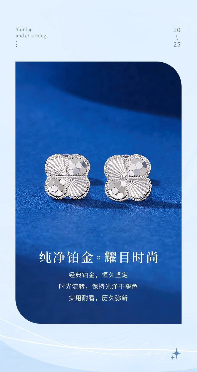 China Gold (CHINA GOLD) PT950 platinum earrings for women, honeycomb four-leaf clover platinum earrings, light luxury anniversary birthday gift for girlfriend, platinum honeycomb four-leaf clover earrings, one pair, about 2.2g, brand gift box