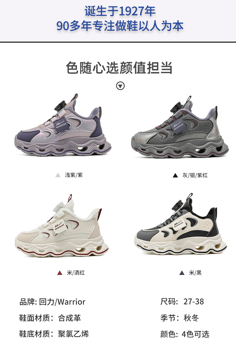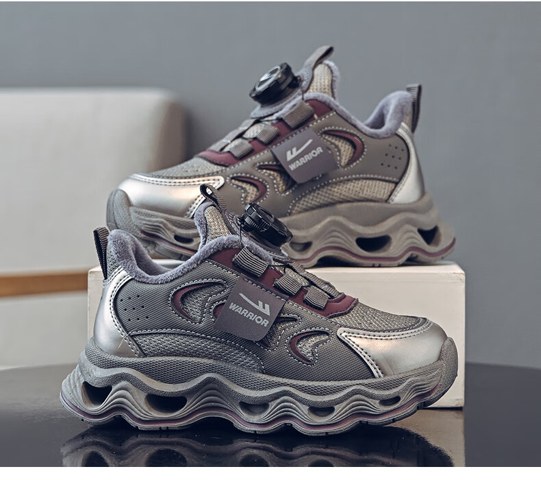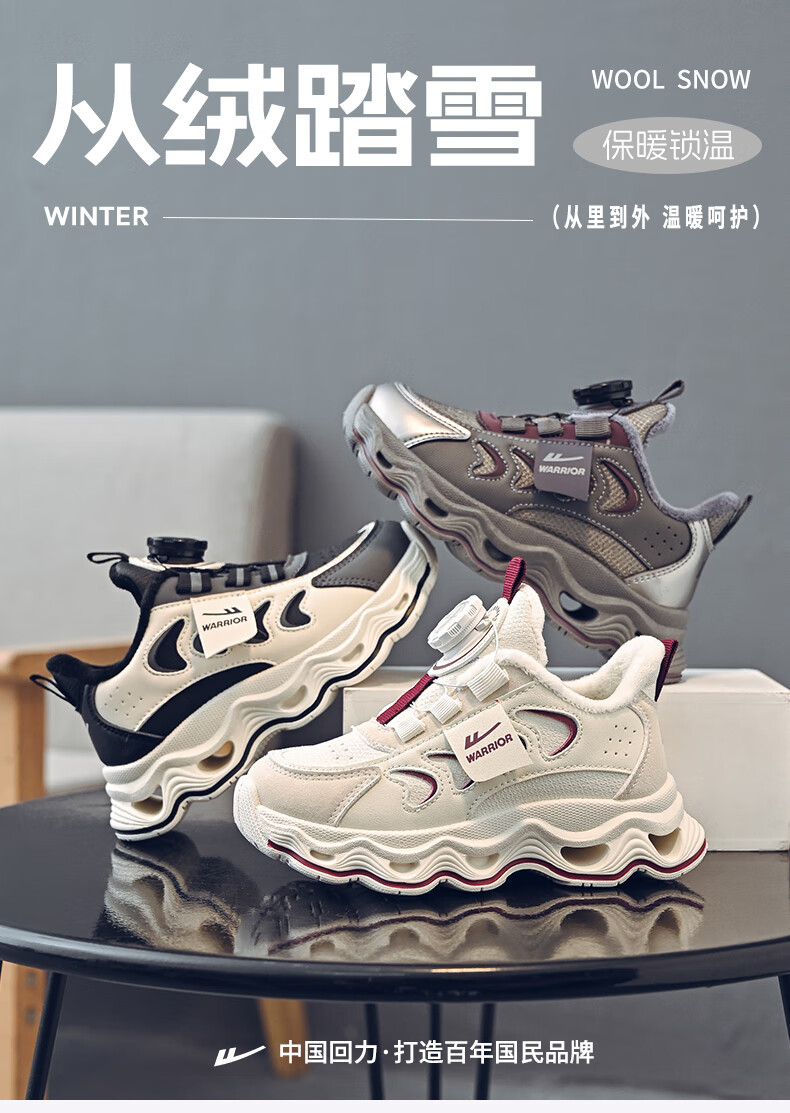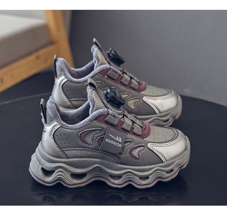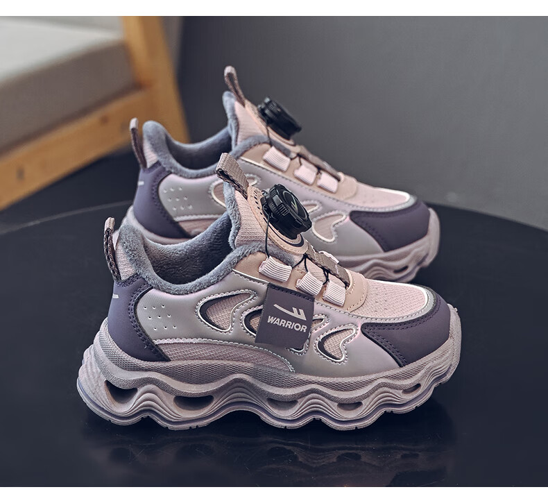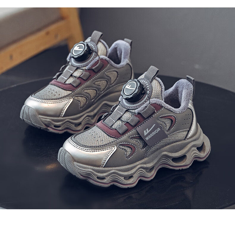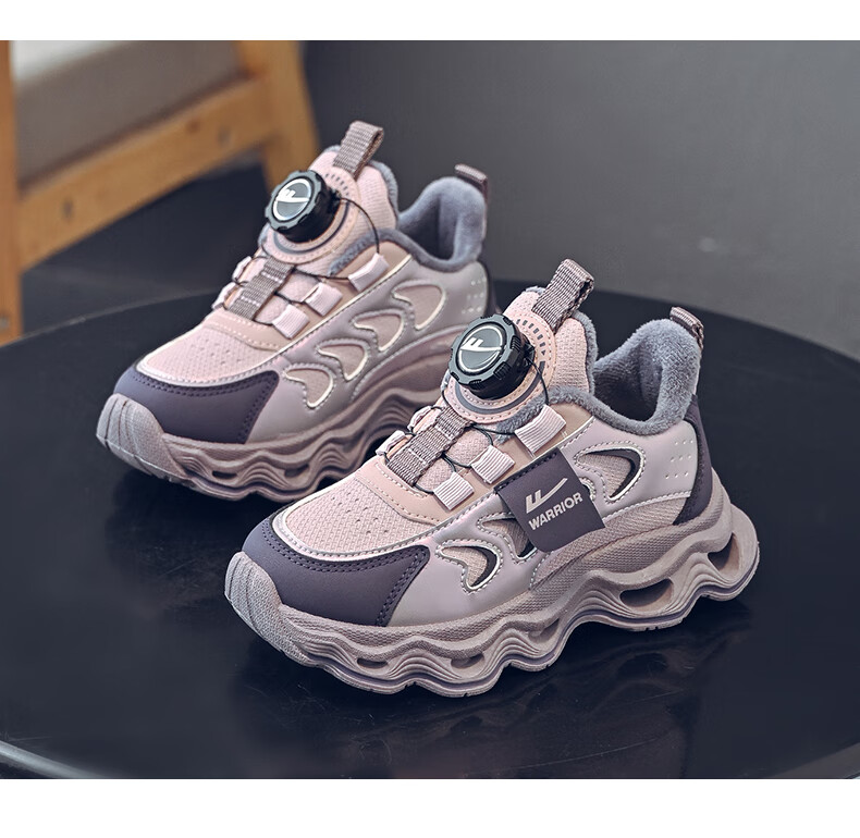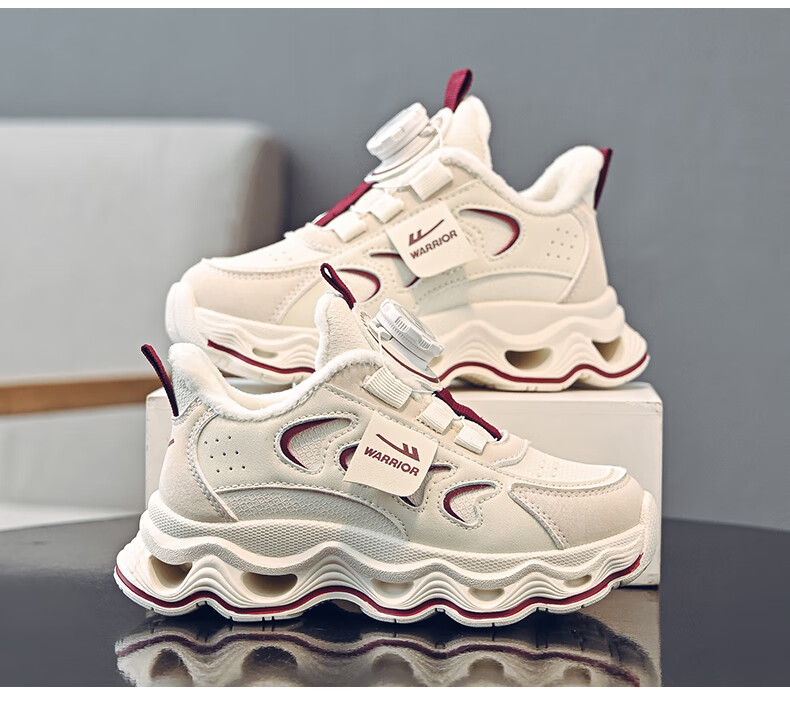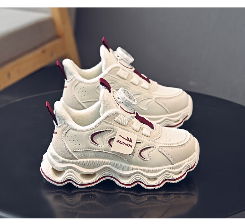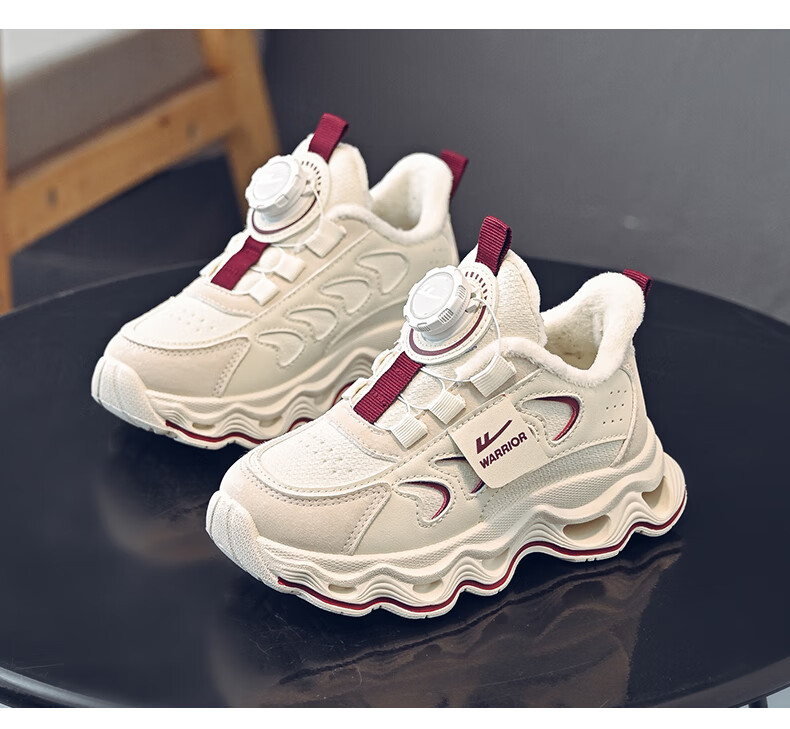 Warrior children's shoes, girls' cotton shoes, 2025 new autumn and winter, middle and large children's students' velvet shoes, thickened children's sports shoes, rice/burgundy (velvet) 38, inner length 24.7/foot length 23.7