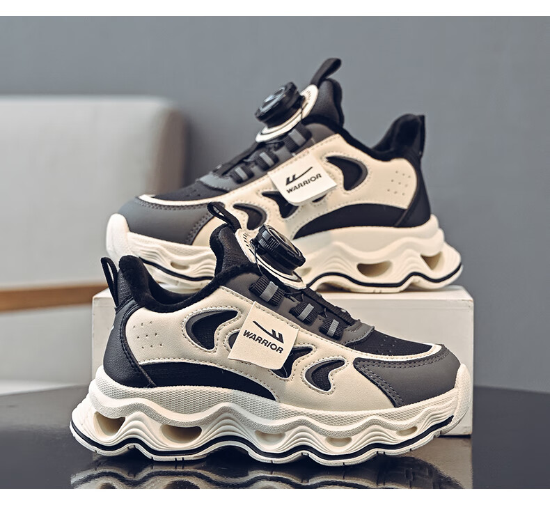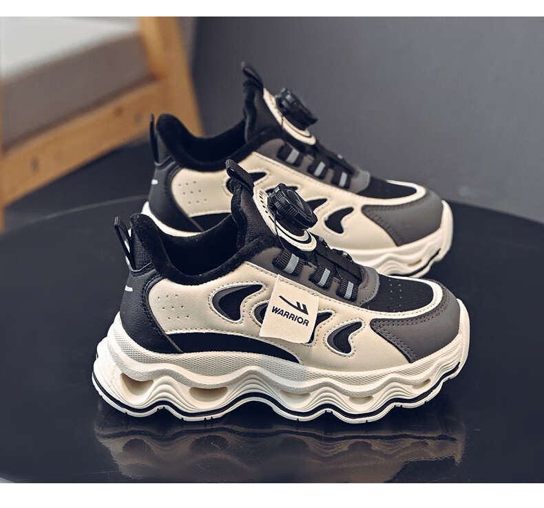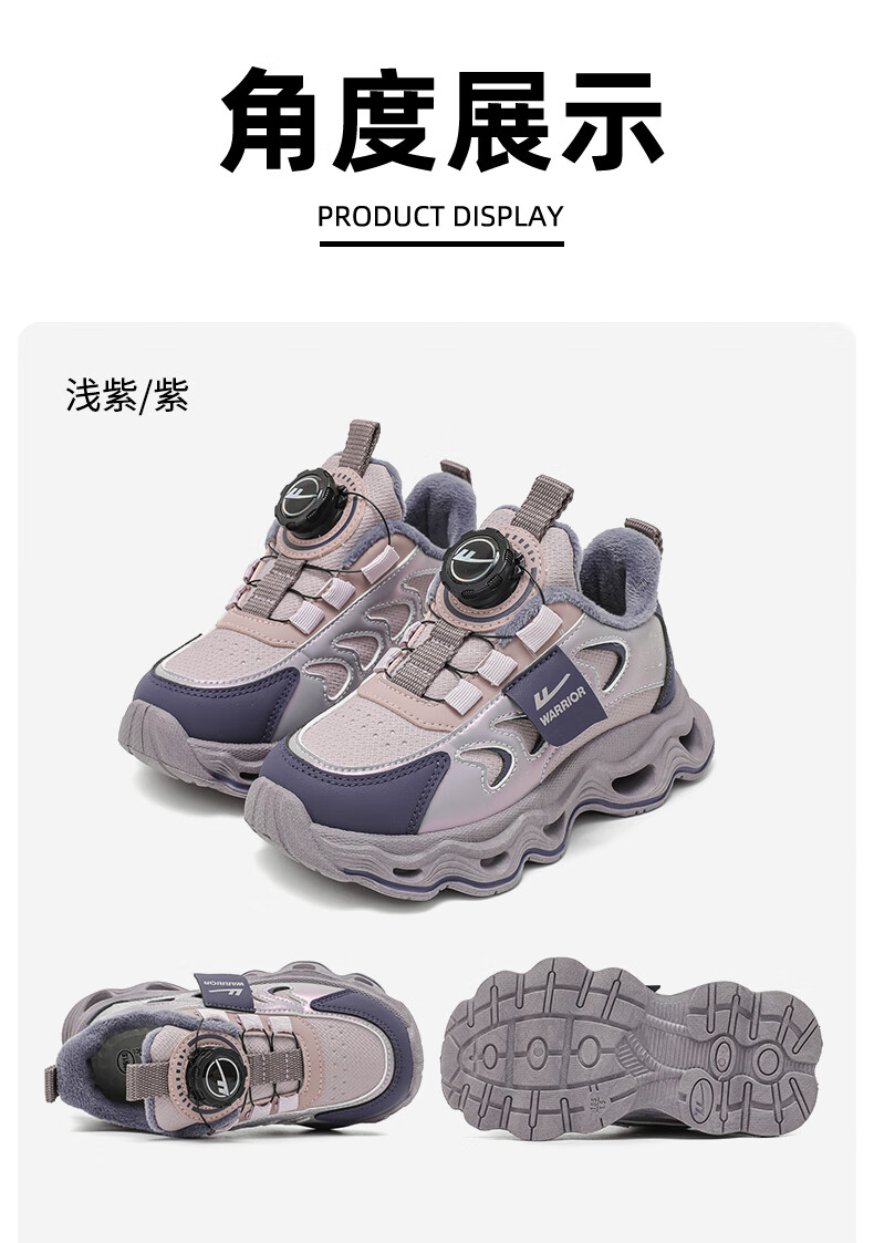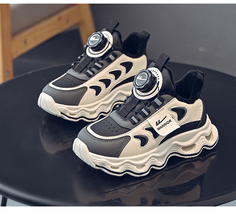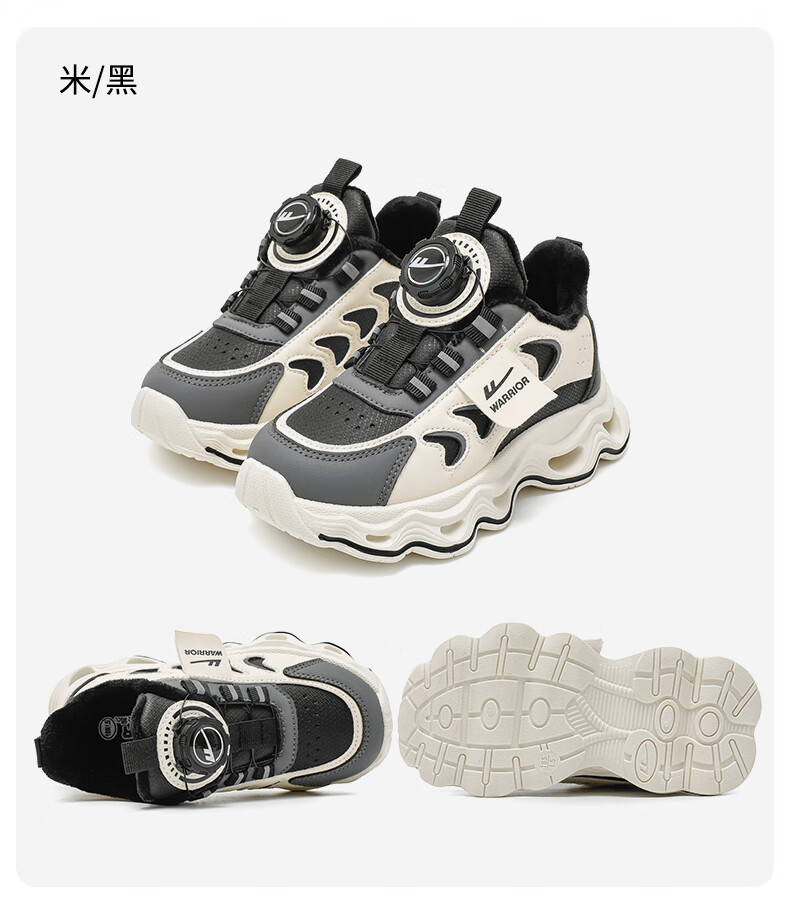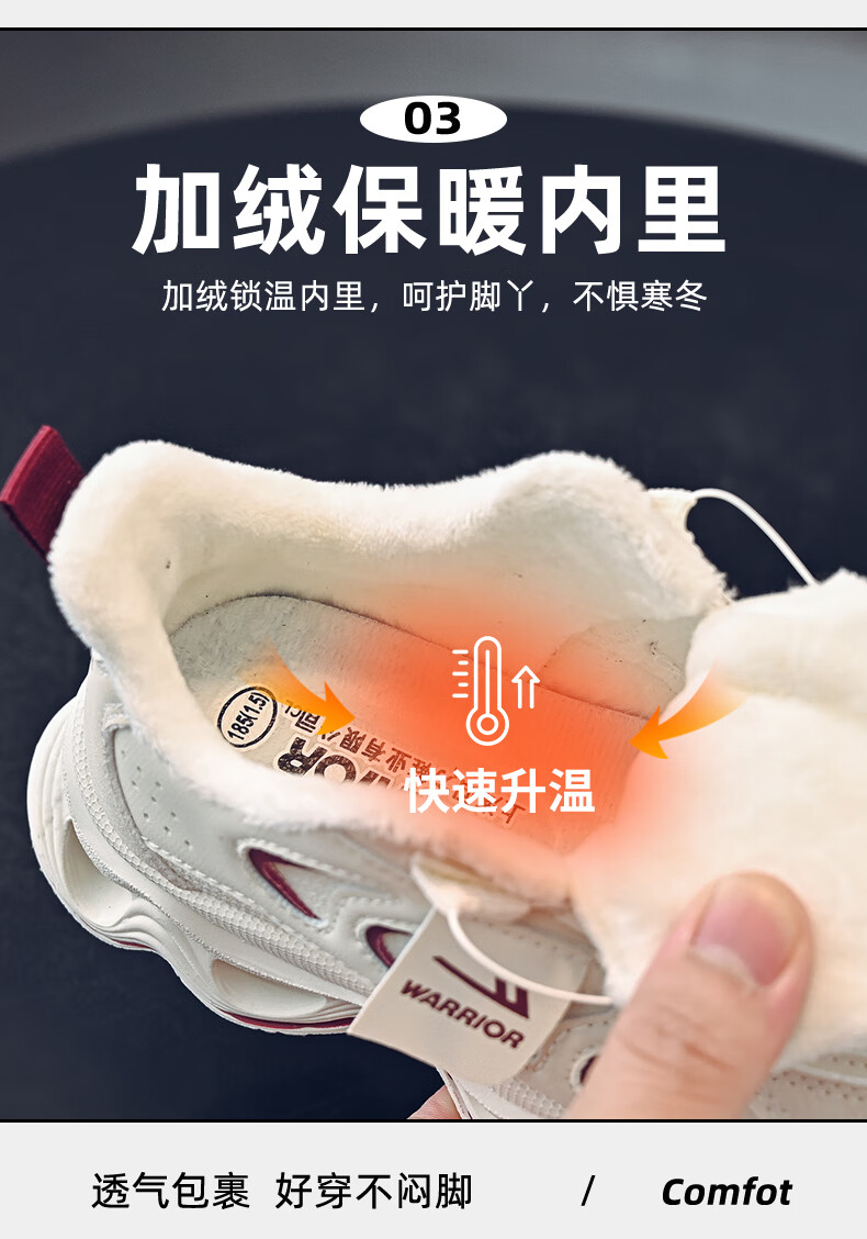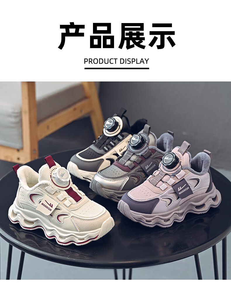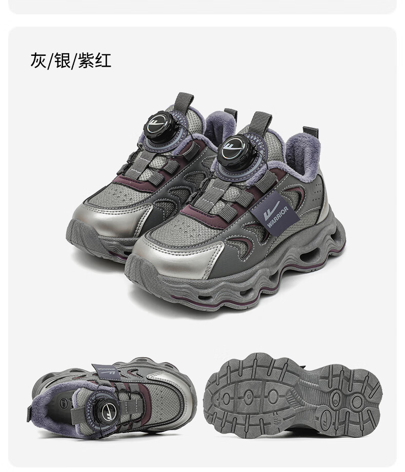 Warrior children's shoes, girls' cotton shoes, 2025 new autumn and winter, middle and large children's students' velvet shoes, thickened children's sports shoes, rice/burgundy (velvet) 38, inner length 24.7/foot length 23.7