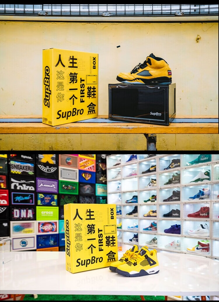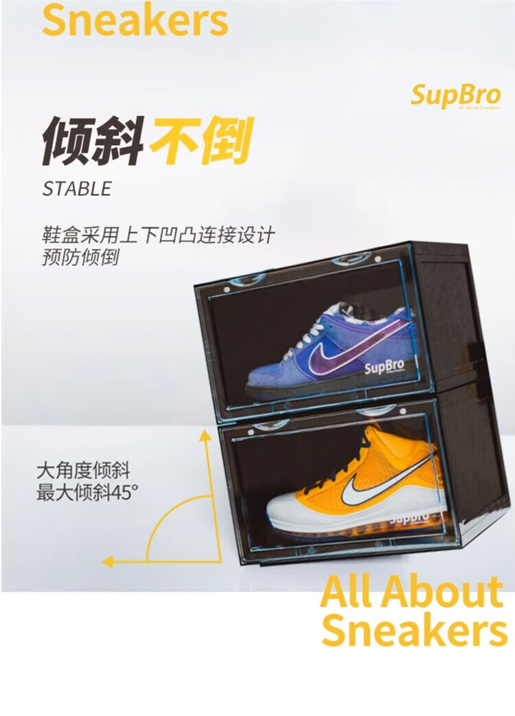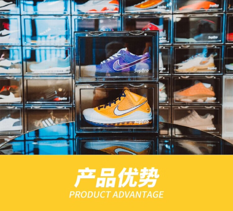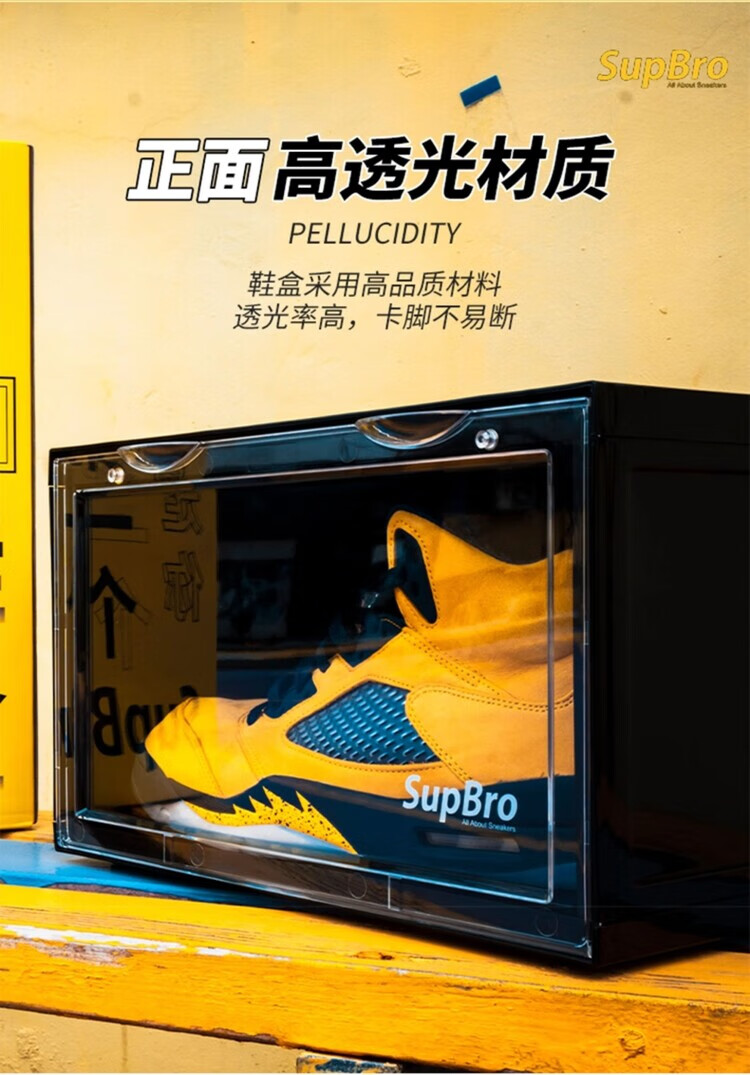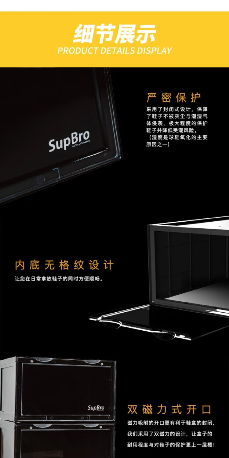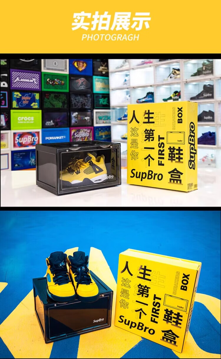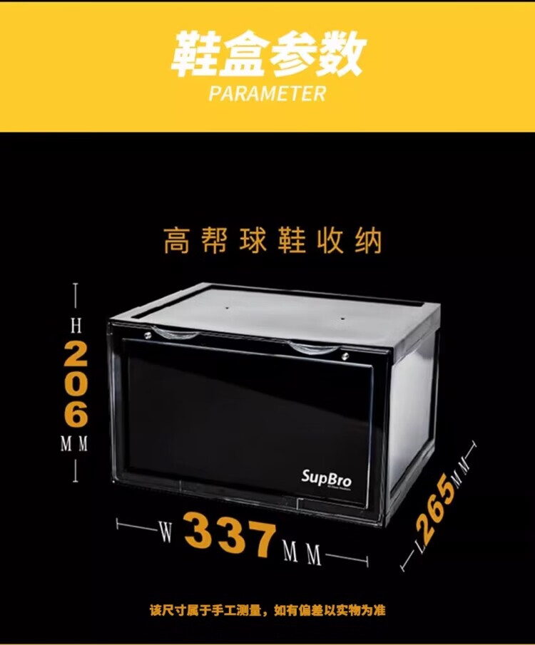 Raft core plastic shoe box SupBro high-end storage box transparent sneakers side-opening display folding shoe cabinet shoe wall storage artifact high-end side-opening black * 8 pieces can be placed up to size 46 33.7x26.5x20.6cm