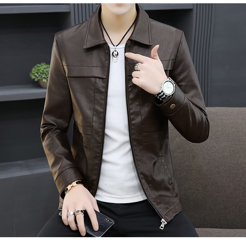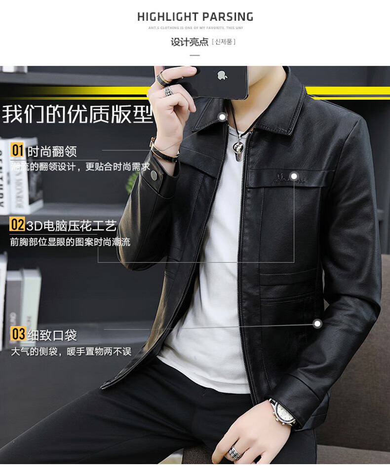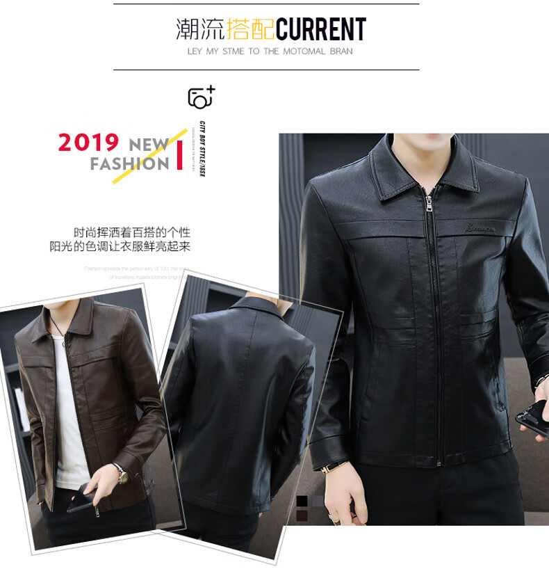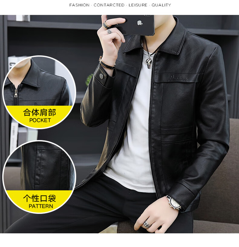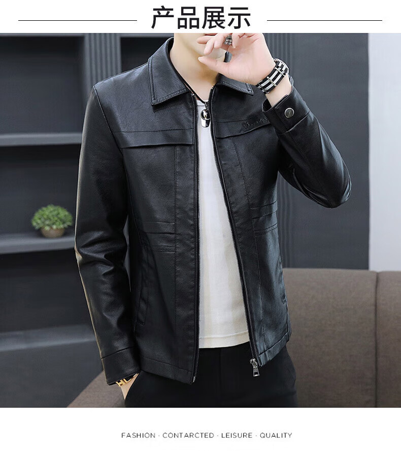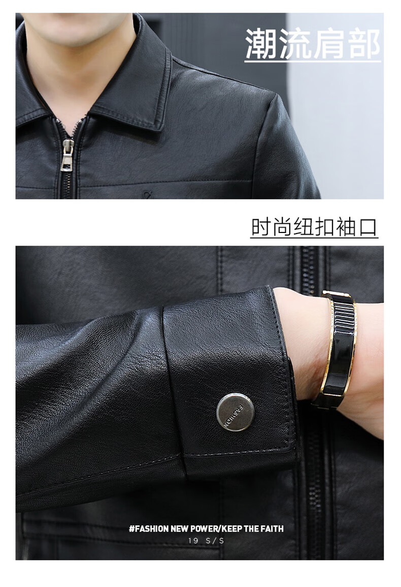 七匹狼狼影皮衣外套男士2025年秋冬新款潮流痞帅机车服休闲皮夹 8902黑色 加绒 3XL 推荐【161-175斤】