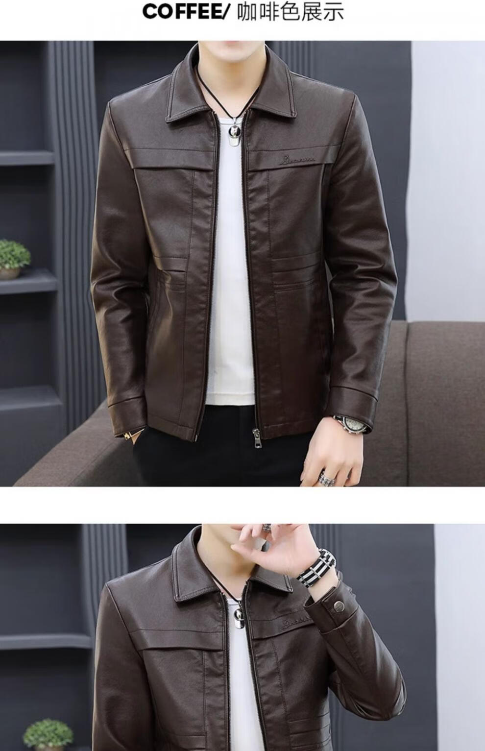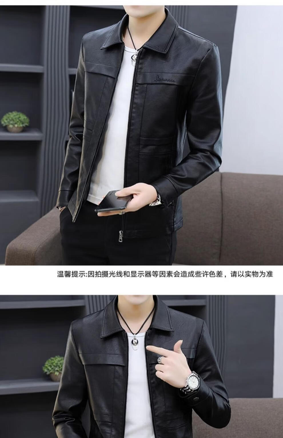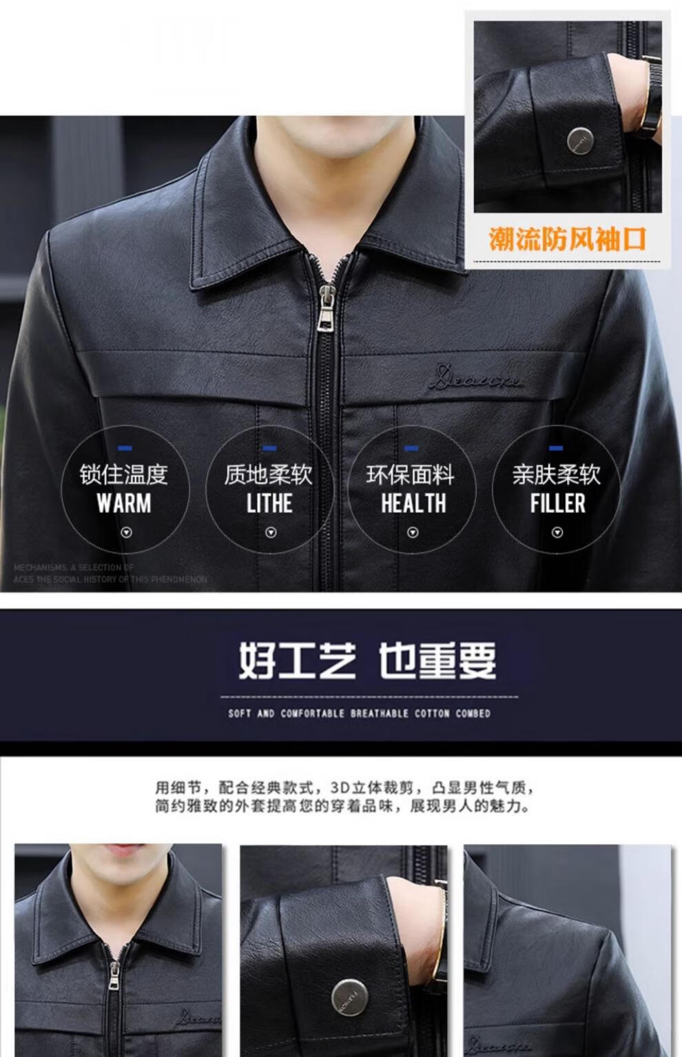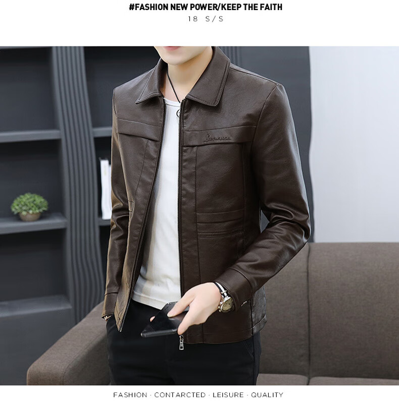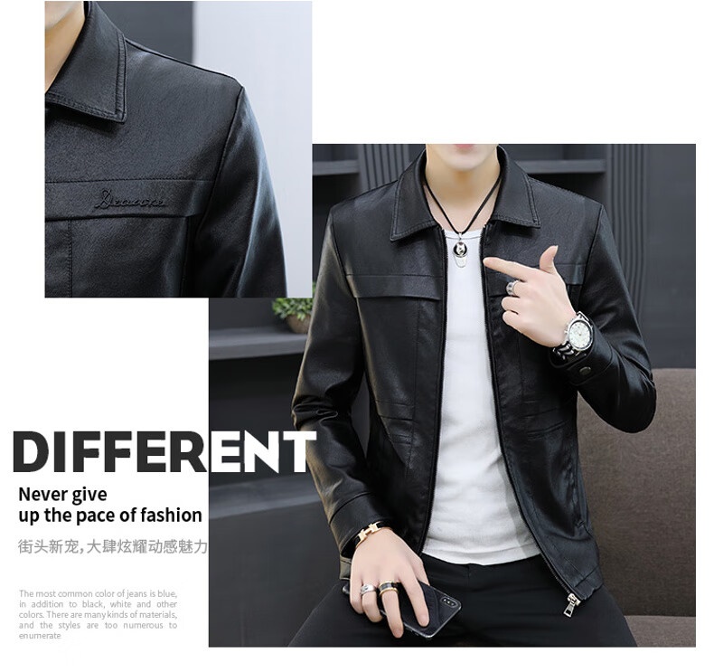 七匹狼狼影皮衣外套男士2025年秋冬新款潮流痞帅机车服休闲皮夹 8902黑色 加绒 3XL 推荐【161-175斤】