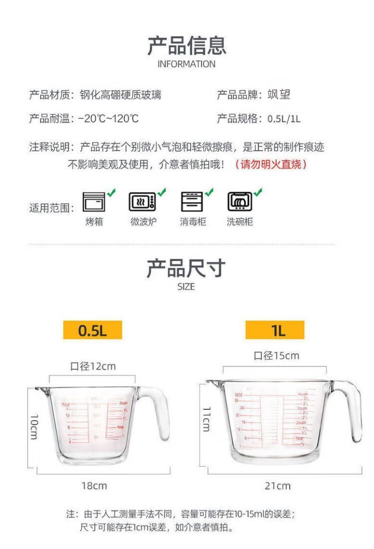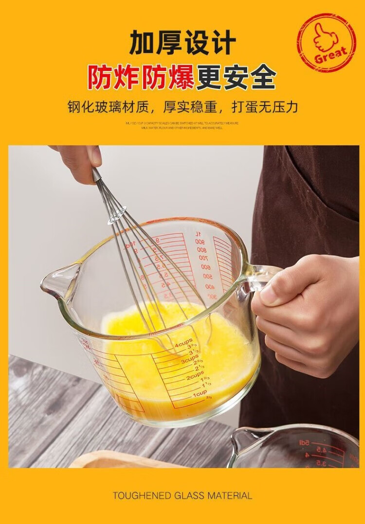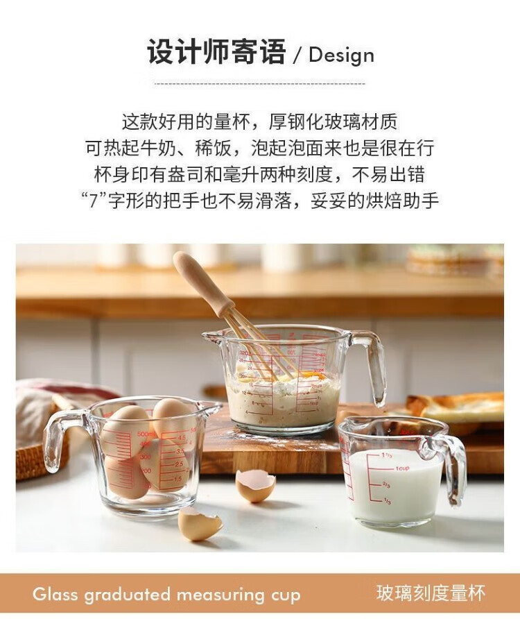 German glass graduated cup household high temperature resistant large capacity baking cup egg flour milliliter measuring scale Q51-500ml glass measuring cup with scale