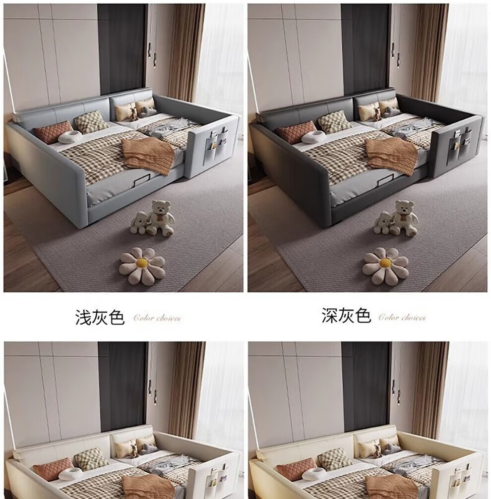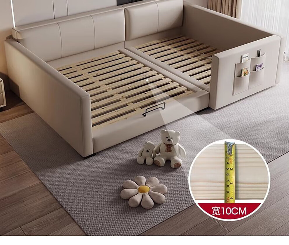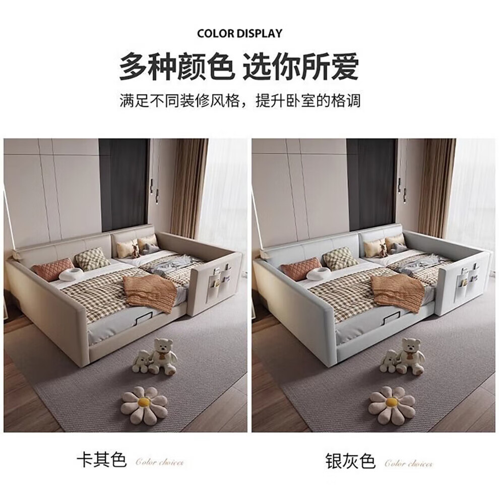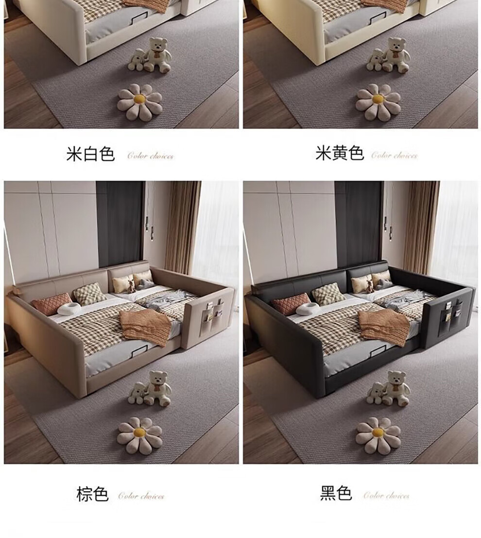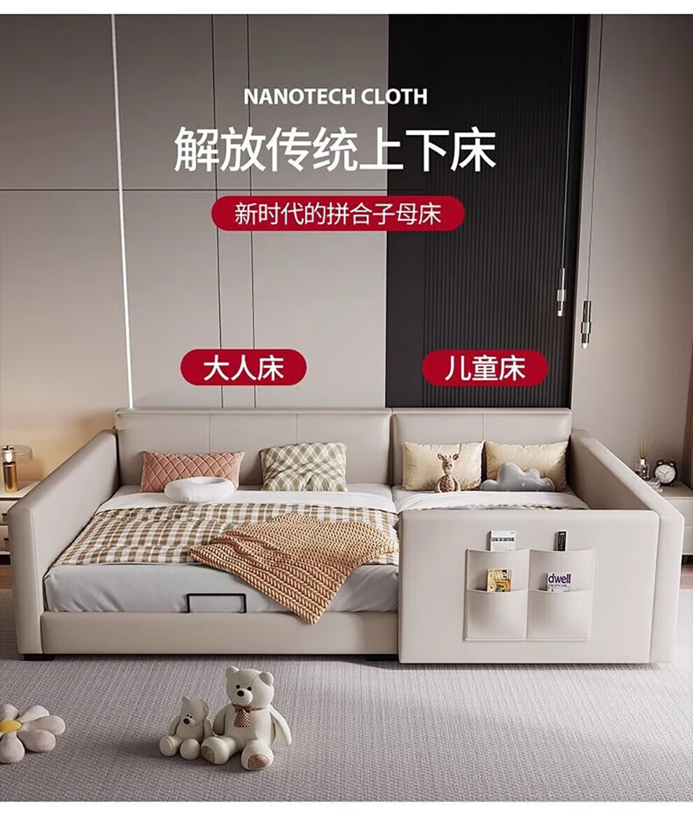Sihuimei second-child family bed parent-child bed for a family of three or four, master bedroom king bed double bed extra large splicing bed leather bed 1.5m bed + 0.9m auxiliary bed without mattress frame structure