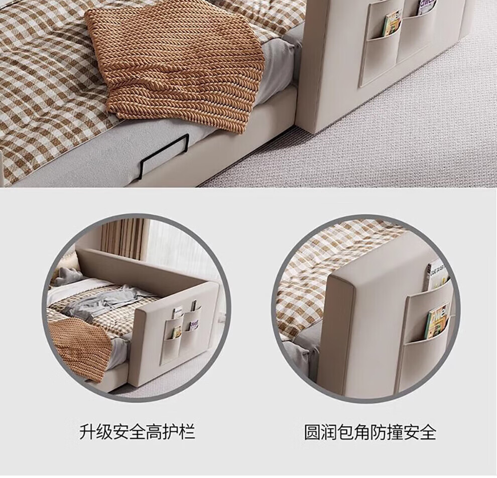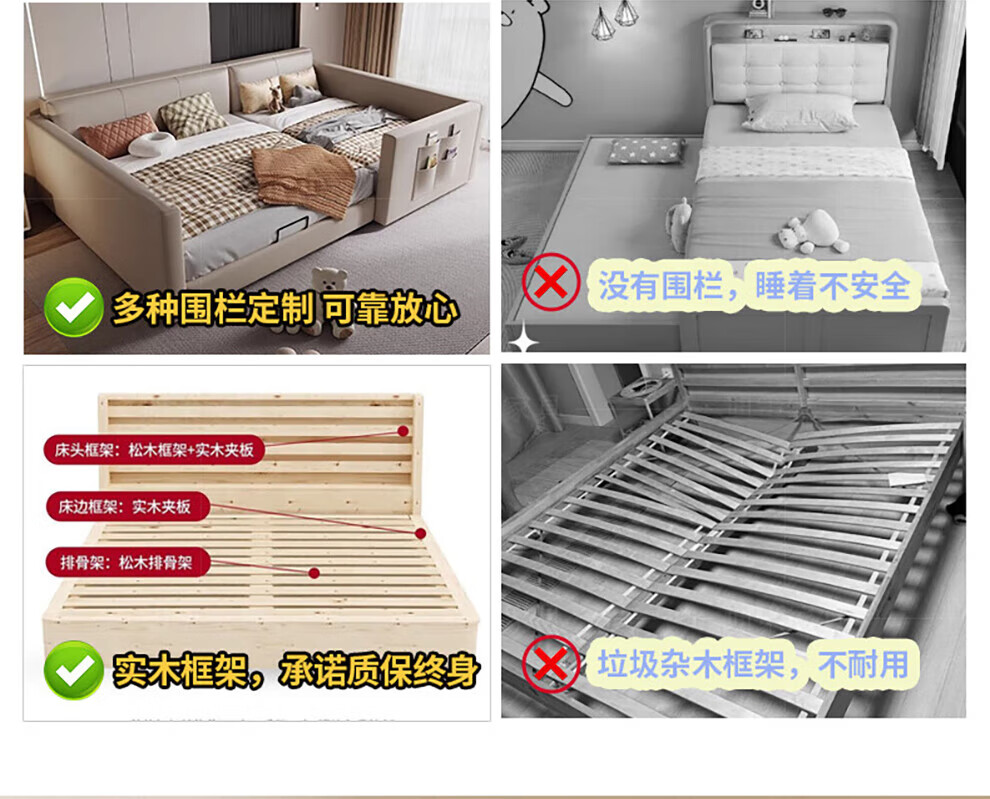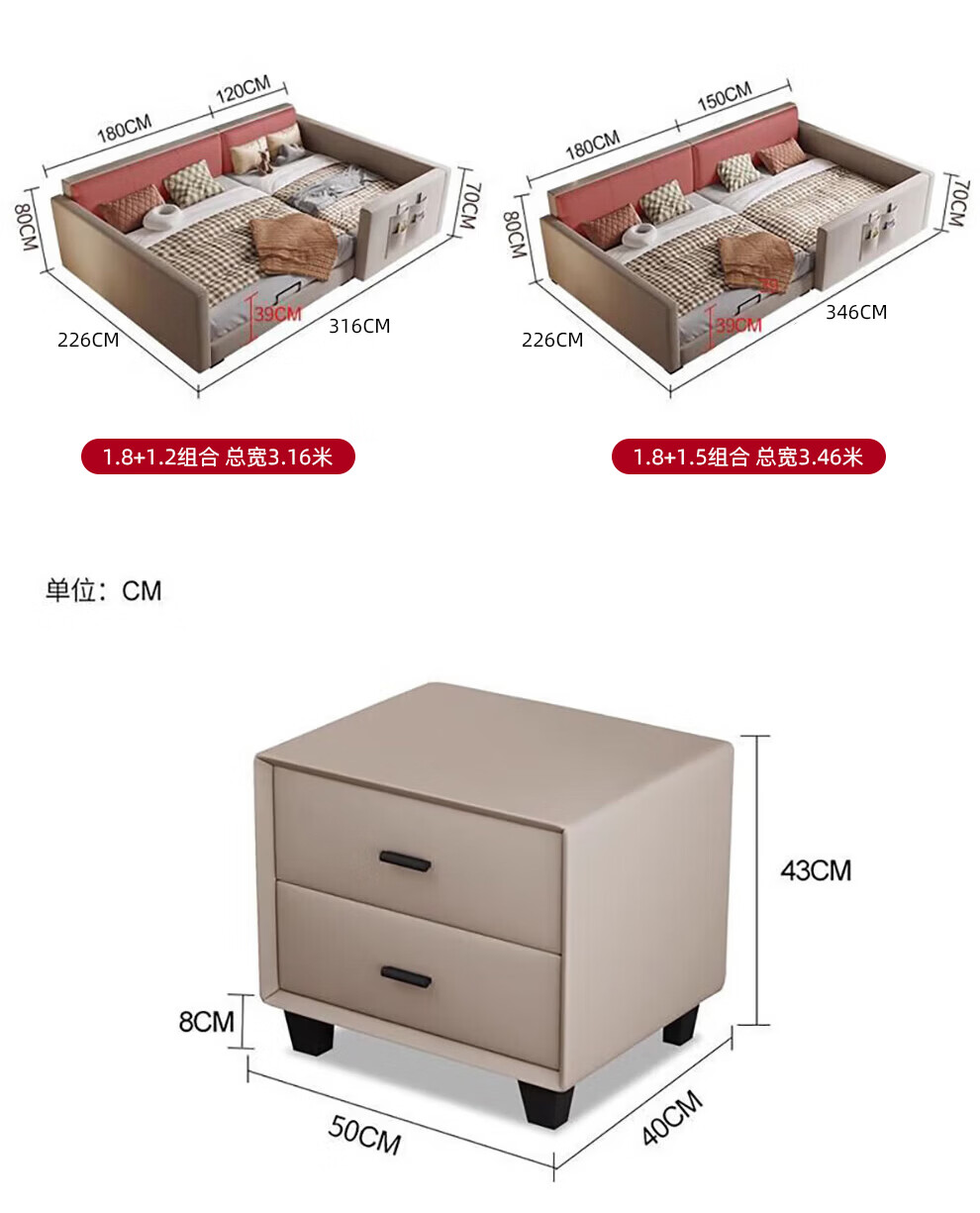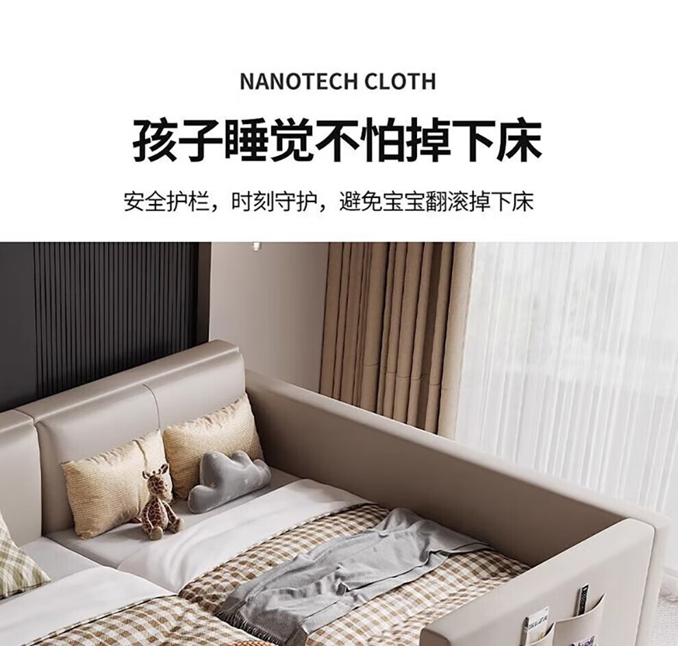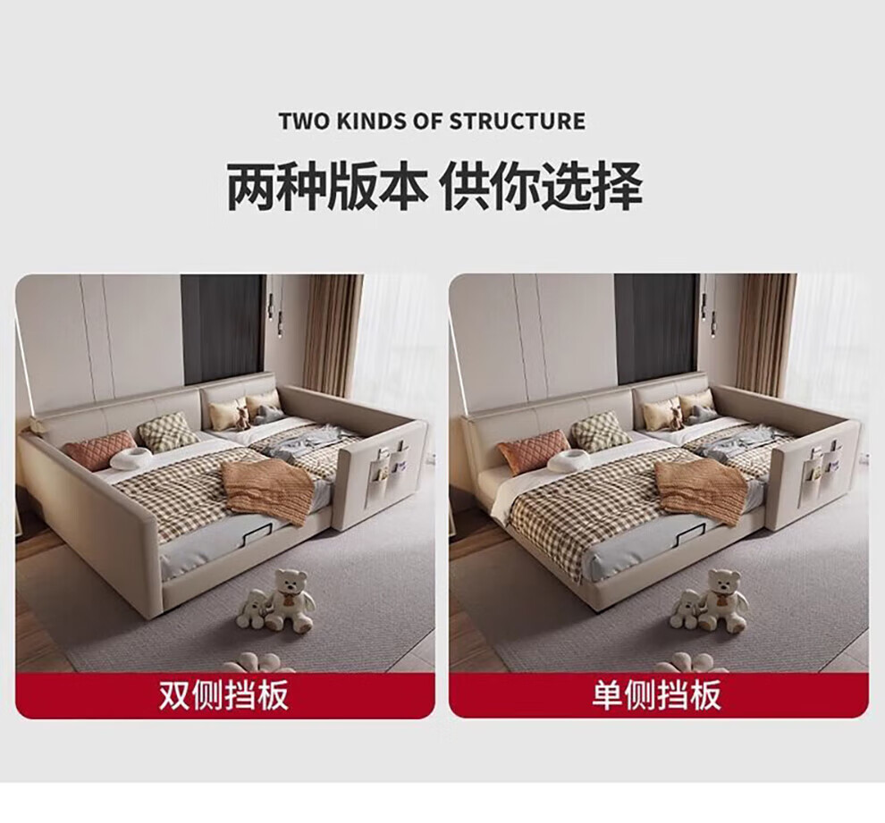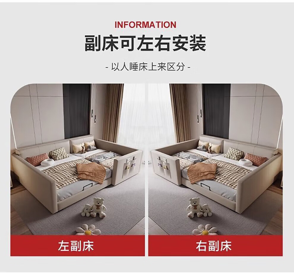 Sihuimei second-child family bed parent-child bed for a family of three or four, master bedroom king bed double bed extra large splicing bed leather bed 1.5m bed + 0.9m auxiliary bed without mattress frame structure