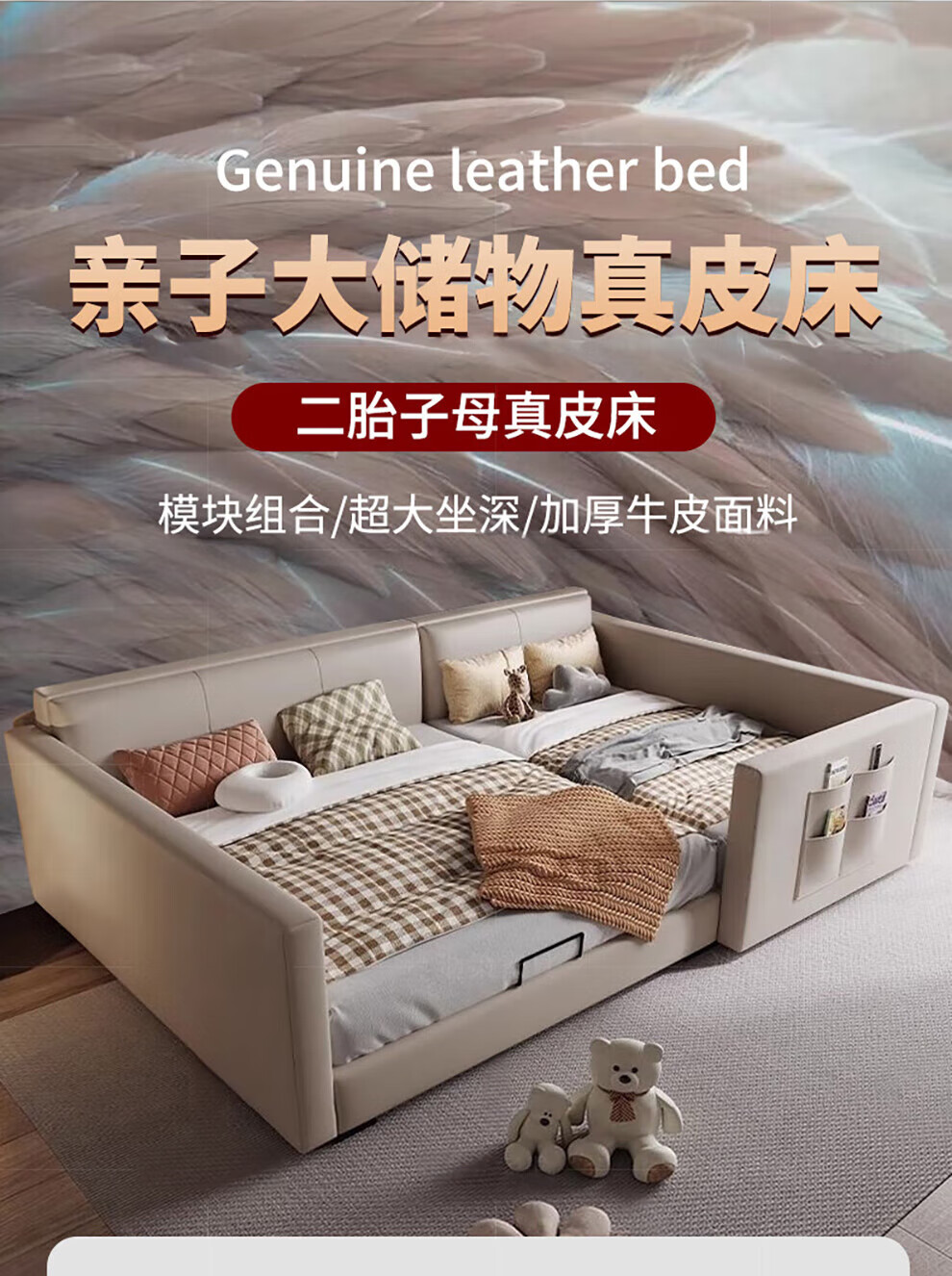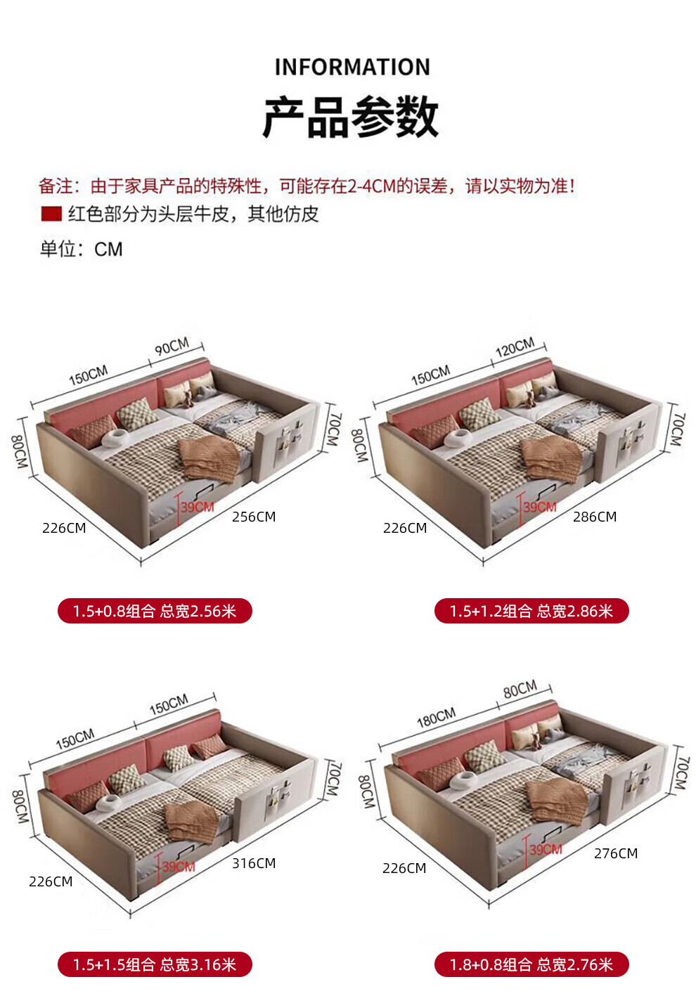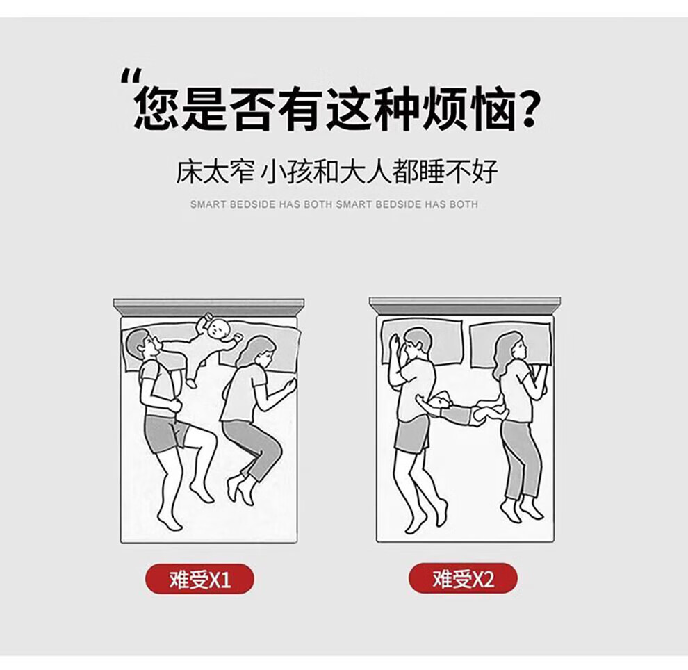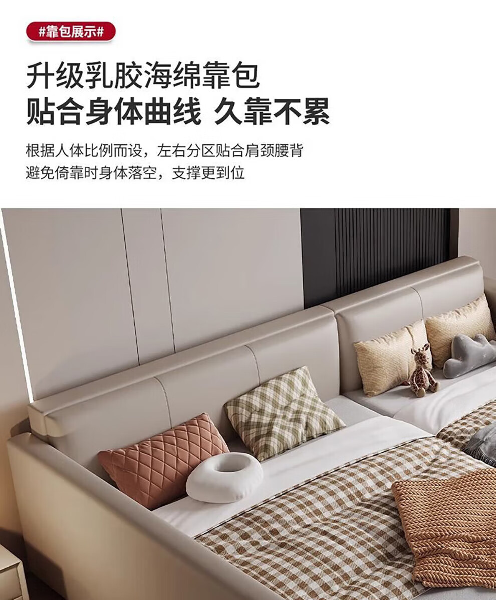 Sihuimei second-child family bed parent-child bed for a family of three or four, master bedroom king bed double bed extra large splicing bed leather bed 1.5m bed + 0.9m auxiliary bed without mattress frame structure