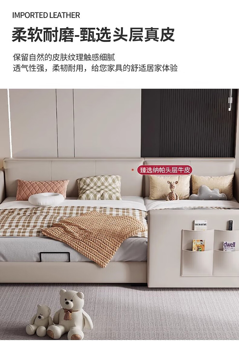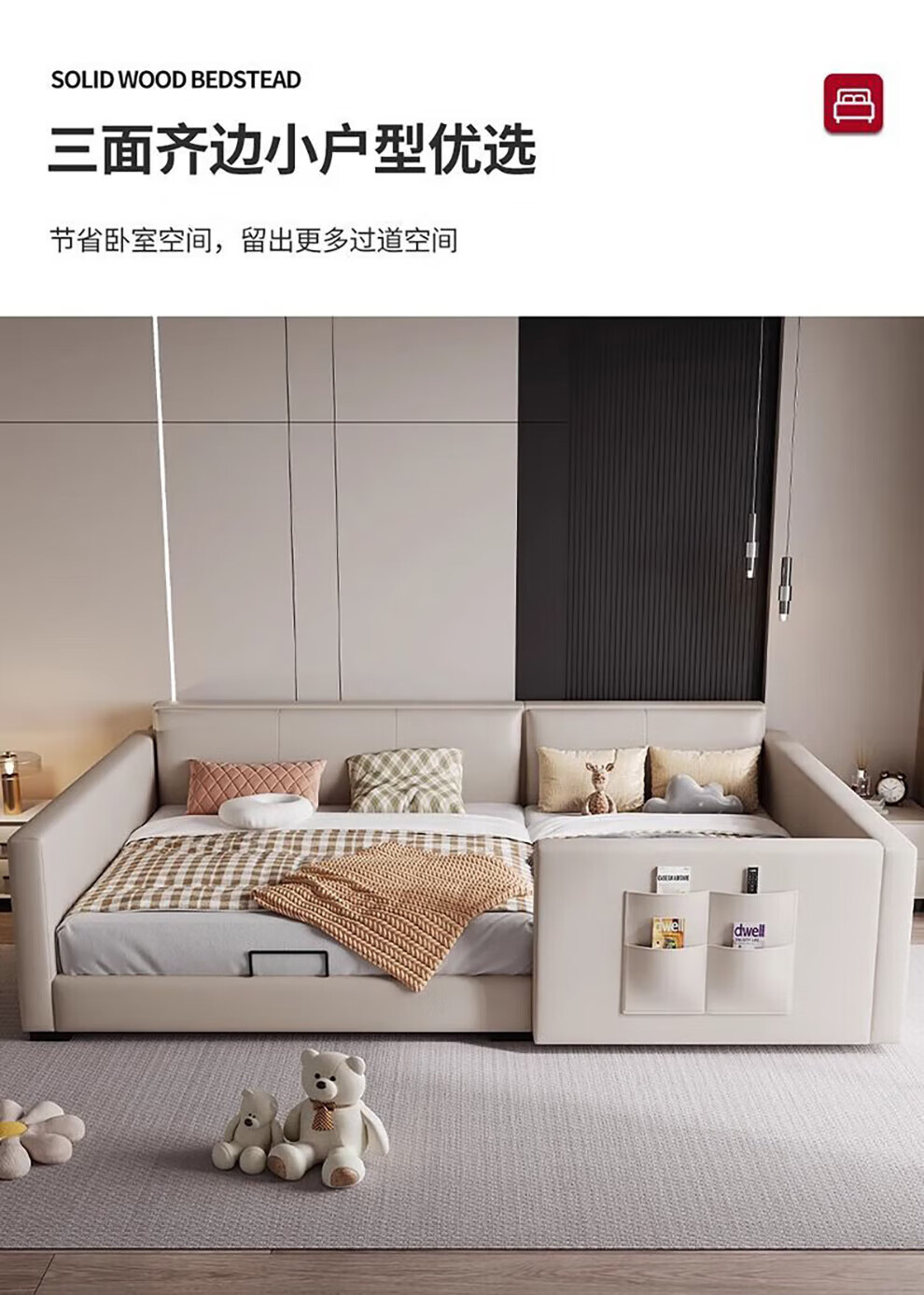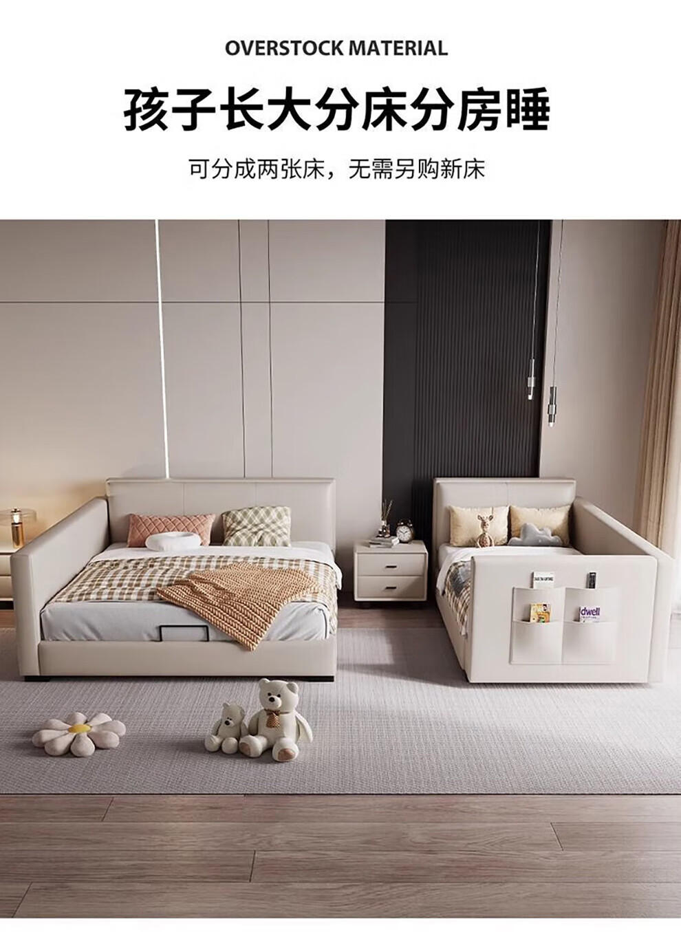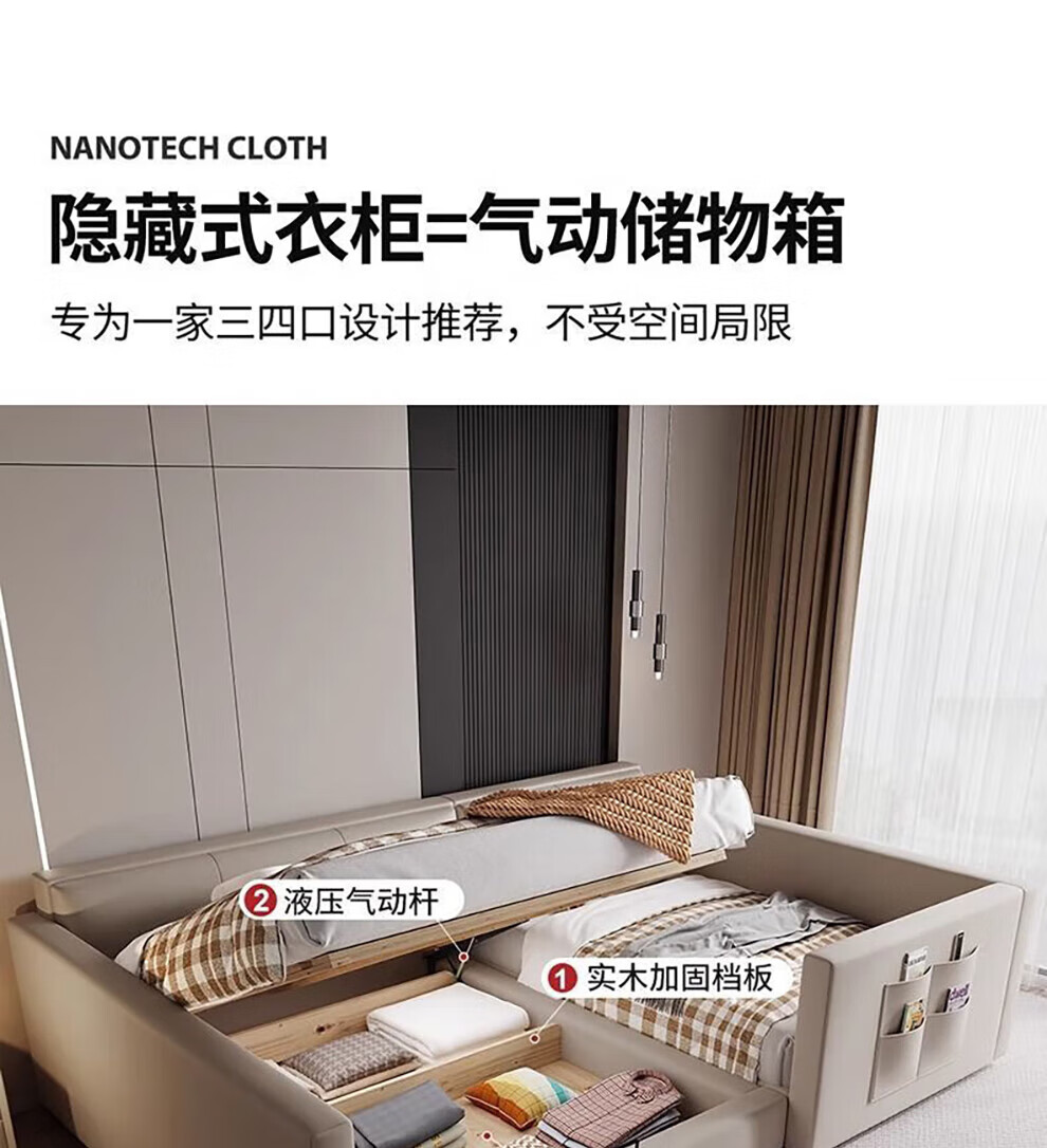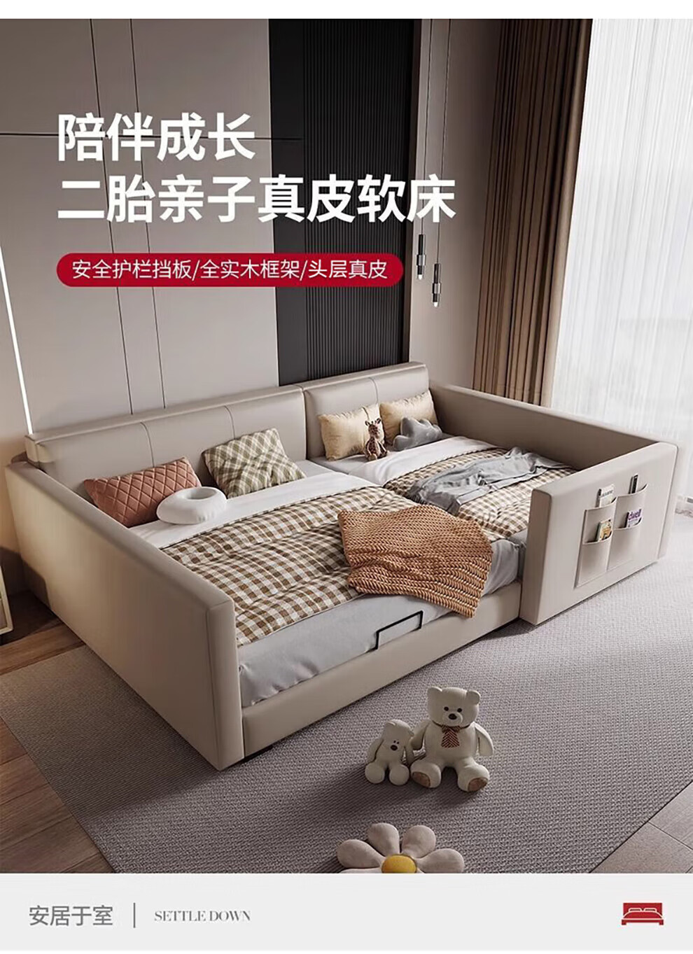 Sihuimei second-child family bed parent-child bed for a family of three or four, master bedroom king bed double bed extra large splicing bed leather bed 1.5m bed + 0.9m auxiliary bed without mattress frame structure