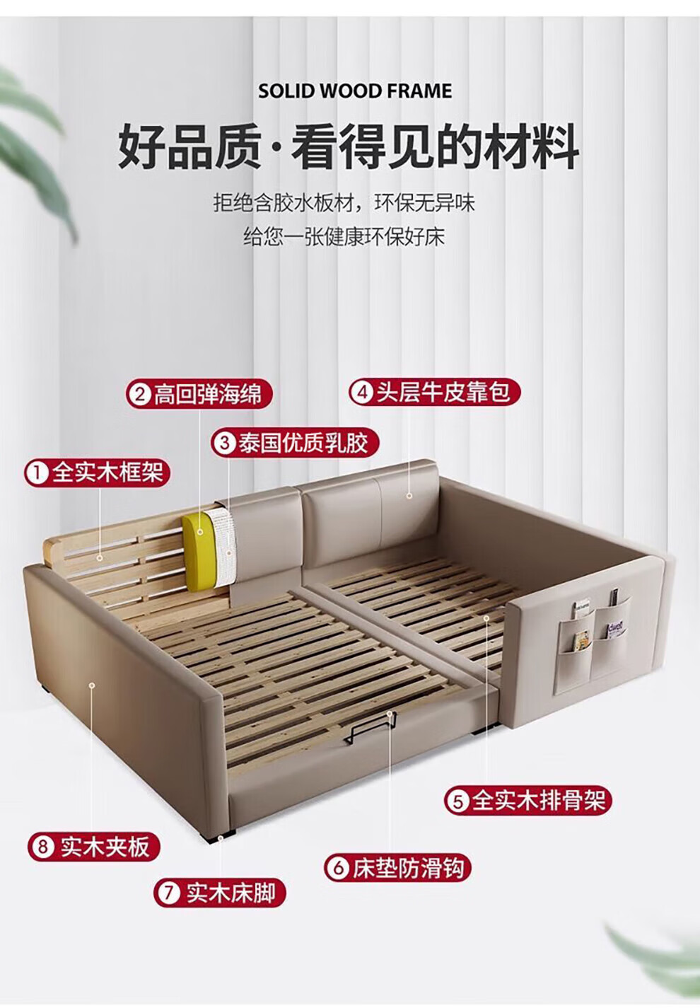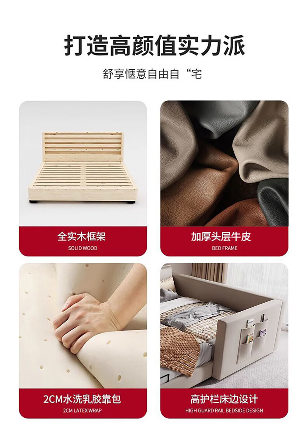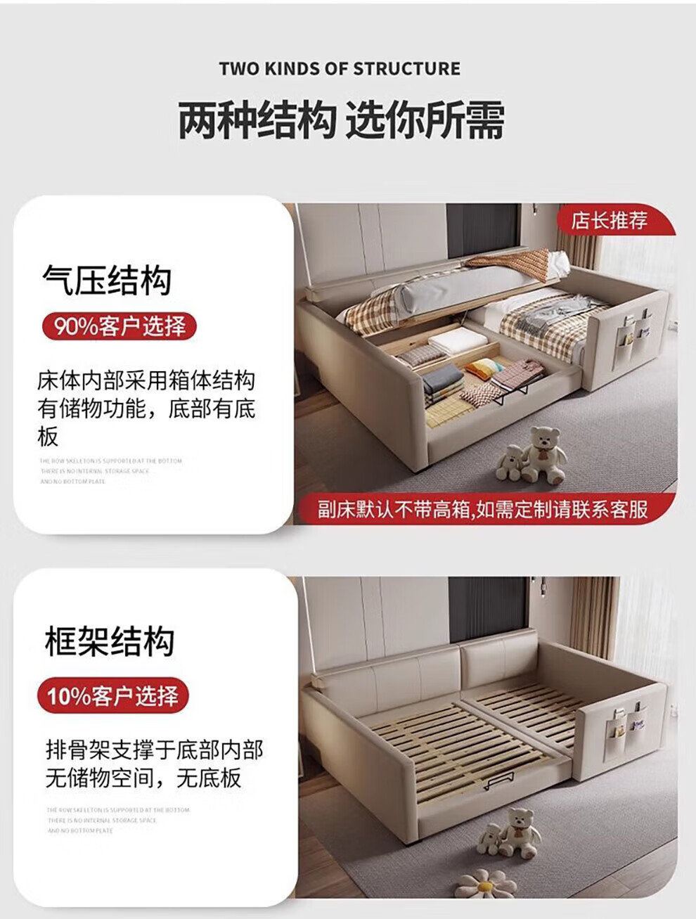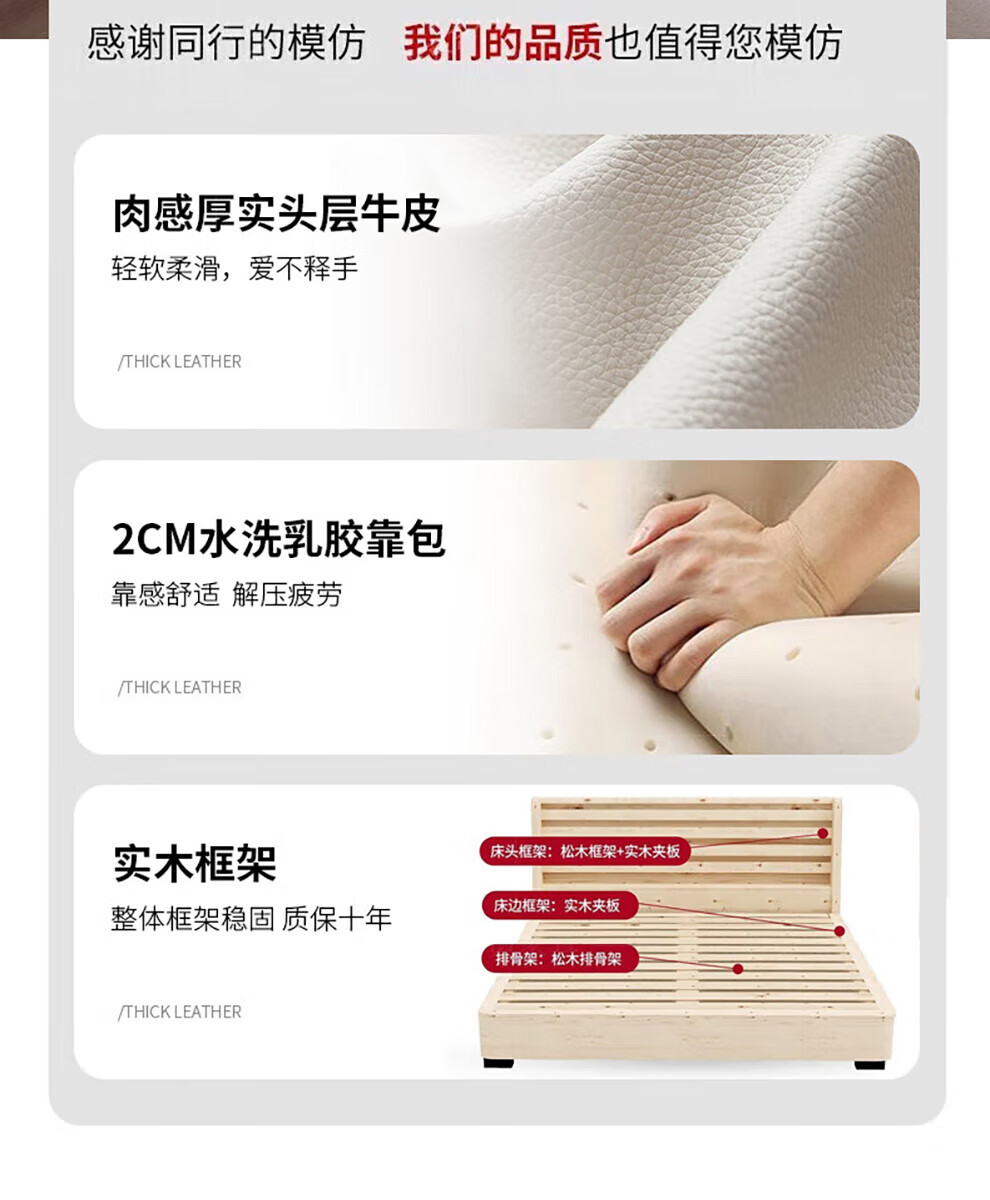 Sihuimei second-child family bed parent-child bed for a family of three or four, master bedroom king bed double bed extra large splicing bed leather bed 1.5m bed + 0.9m auxiliary bed without mattress frame structure