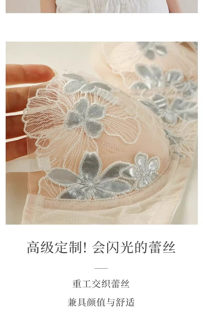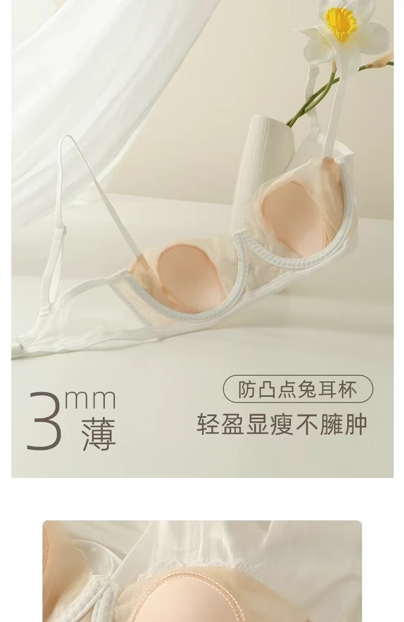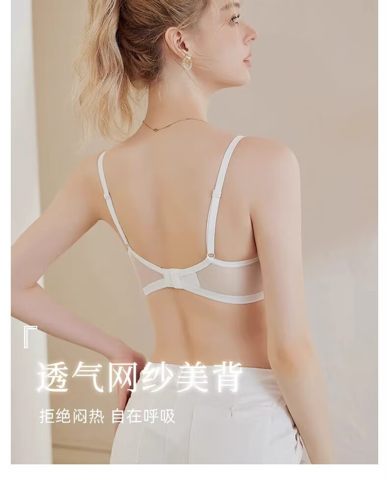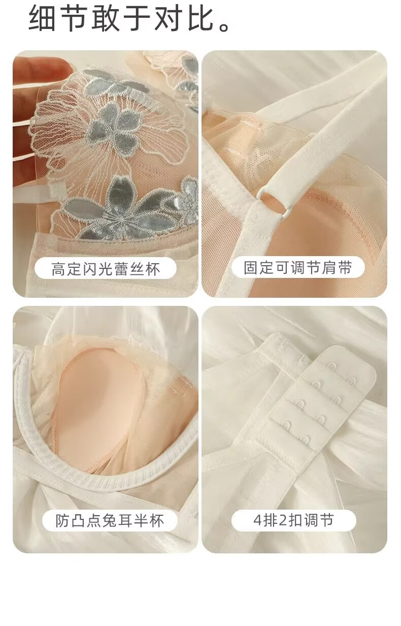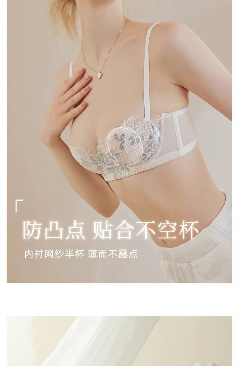 KING WINNER French lace low-cut underwear for women, thin, large breasts, small breasts, gathered sexy half-cup bra, white suit, 70B, one size fits all
