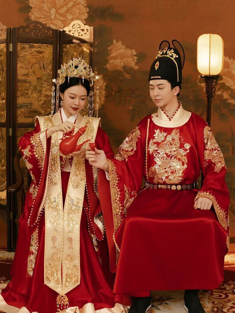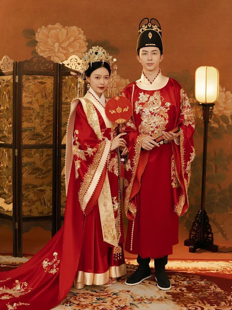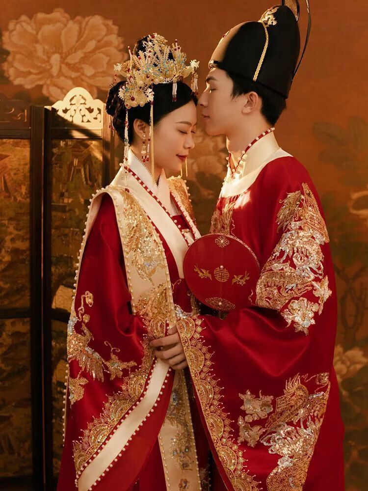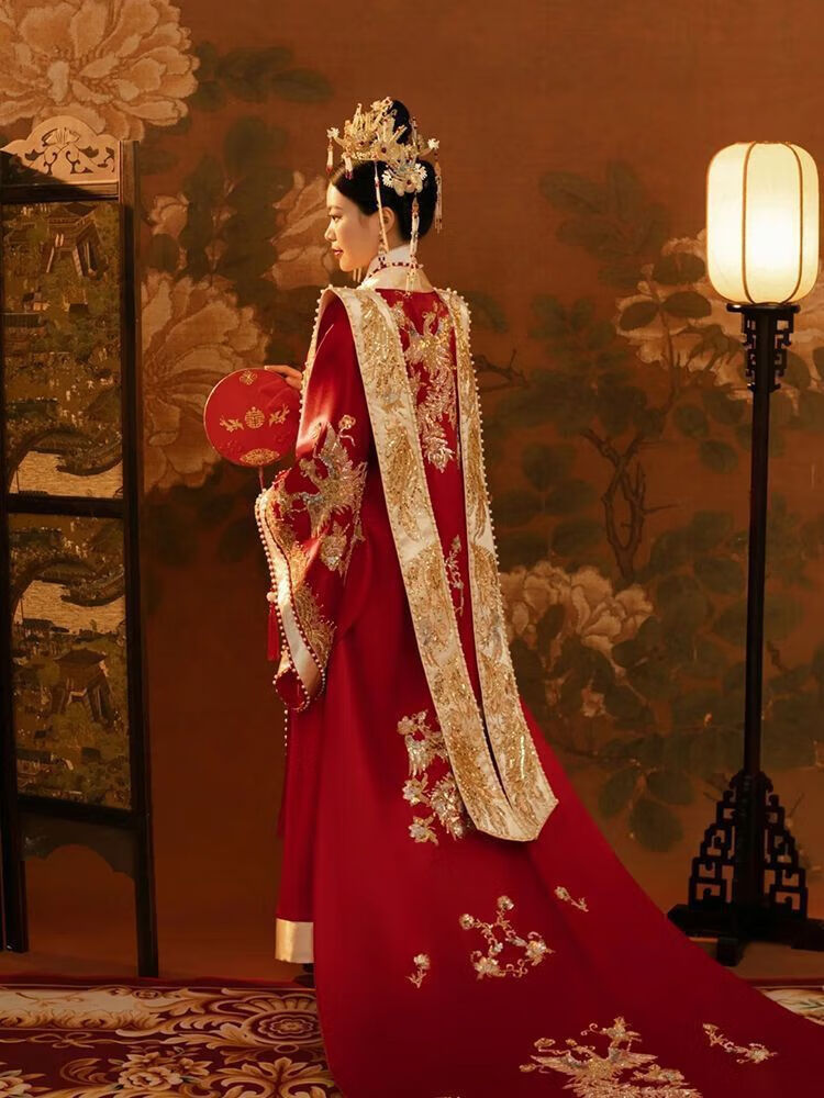 Vnxifm Ming Dynasty Wedding Clothes Large Size Xiuhe Clothes Wedding Clothes Couple Wedding Clothes Wedding Dresses Toasting Clothes Ancient Style Han Clothes Fengguan Xiapei N-352 Women's One Size
