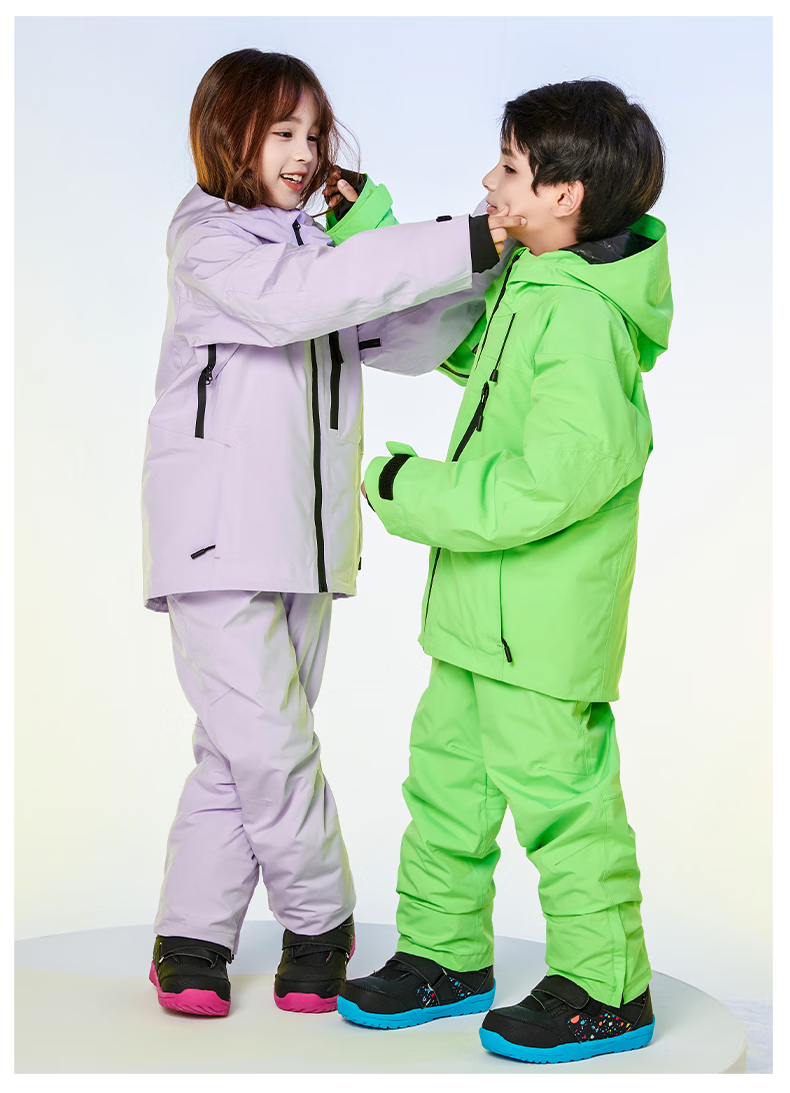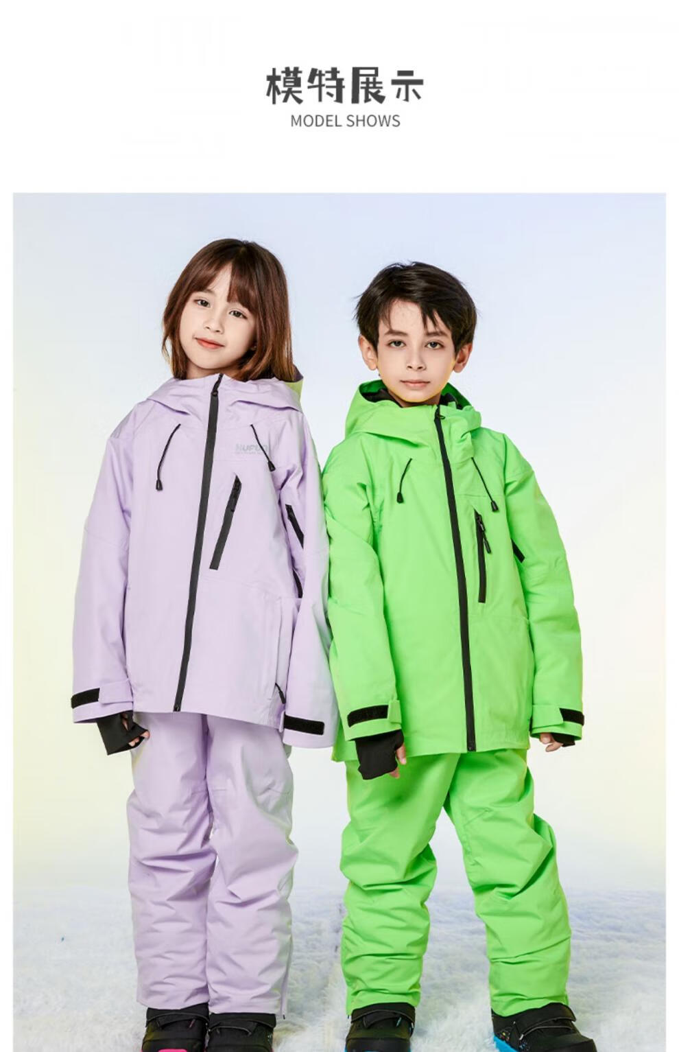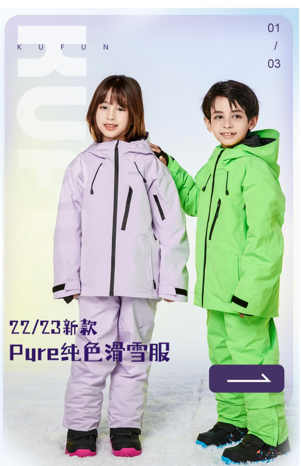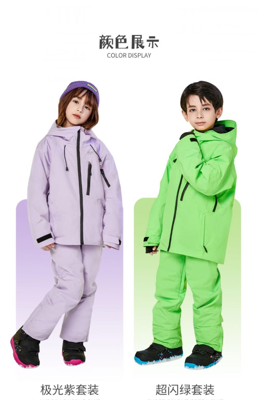 KuFeng (kufun) children's ski clothing suit for women and men new snow clothing tops single board and double board equipment waterproof jacket children super flash green overalls one size 110