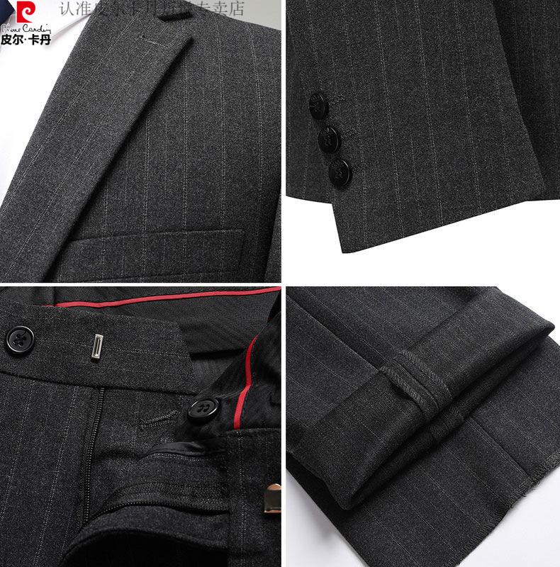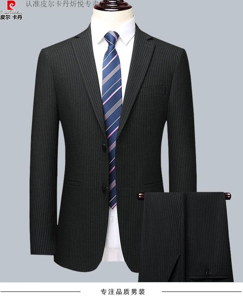 Pierre Cardin high-end 100% wool suit suit men's business casual group professional striped suit men's slim suit jacket black striped clothes + pants M 170 yards / 48 yards authentic guarantee