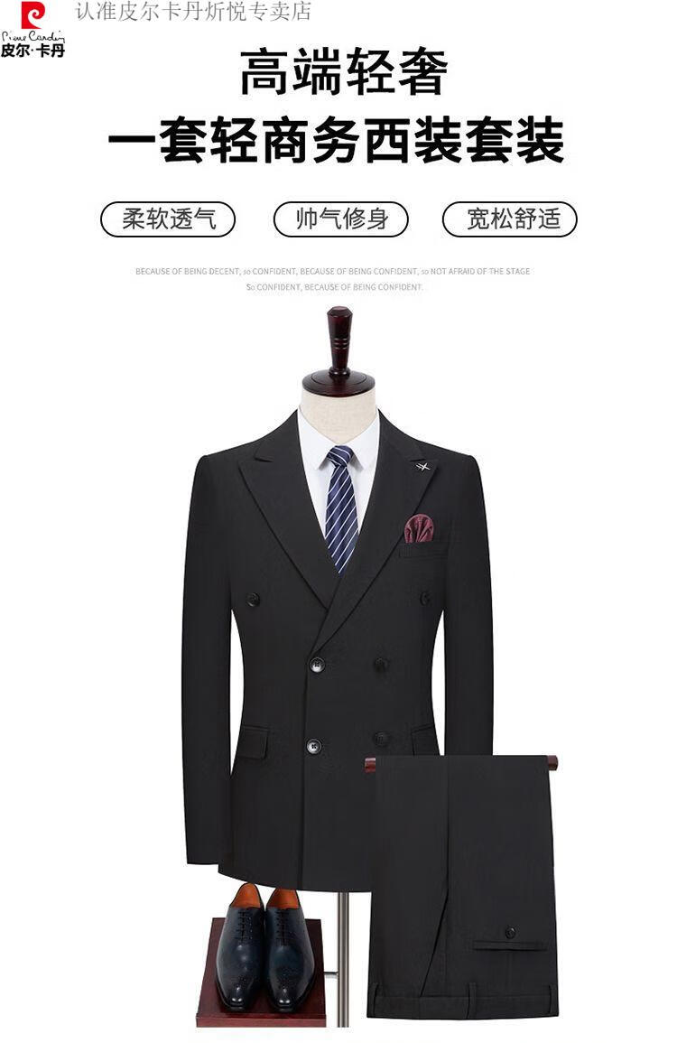Pierre Cardin high-end 100% wool suit suit for men in autumn and winter middle-aged business formal casual ironing suit dress jacket 177 black double-breasted double slit S 165 size