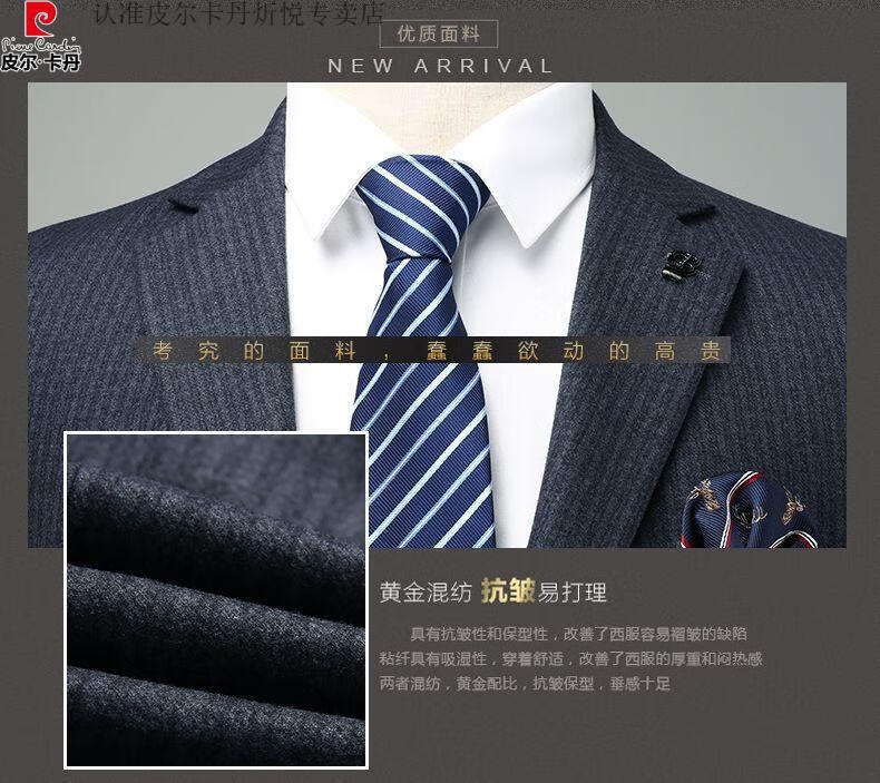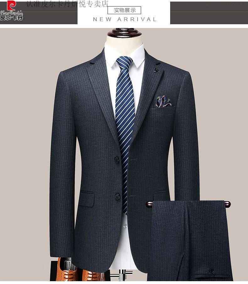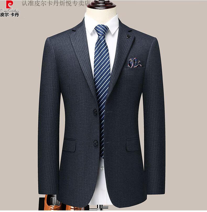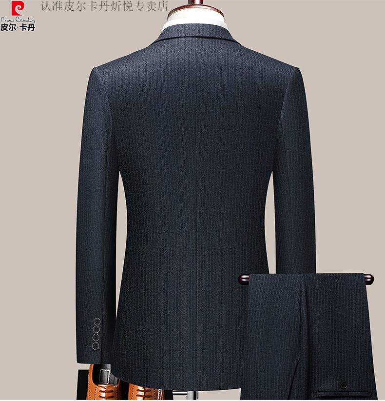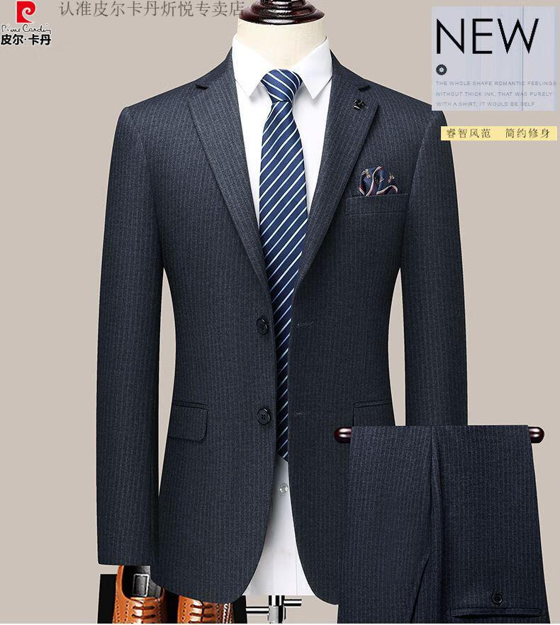 Pierre Cardin high-end 100% wool suit suit for men autumn and winter business group wool suit formal groom and groomsmen dress gray stripe 2601 slit on both sides L 175 suitable for 125-140 Jin Jin equals 0.5 kg