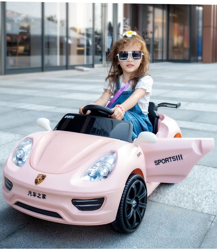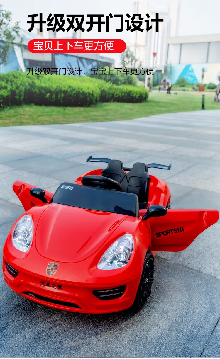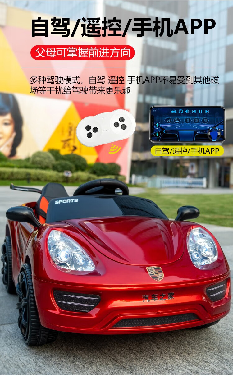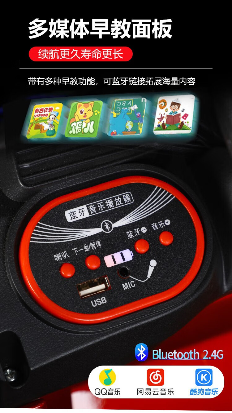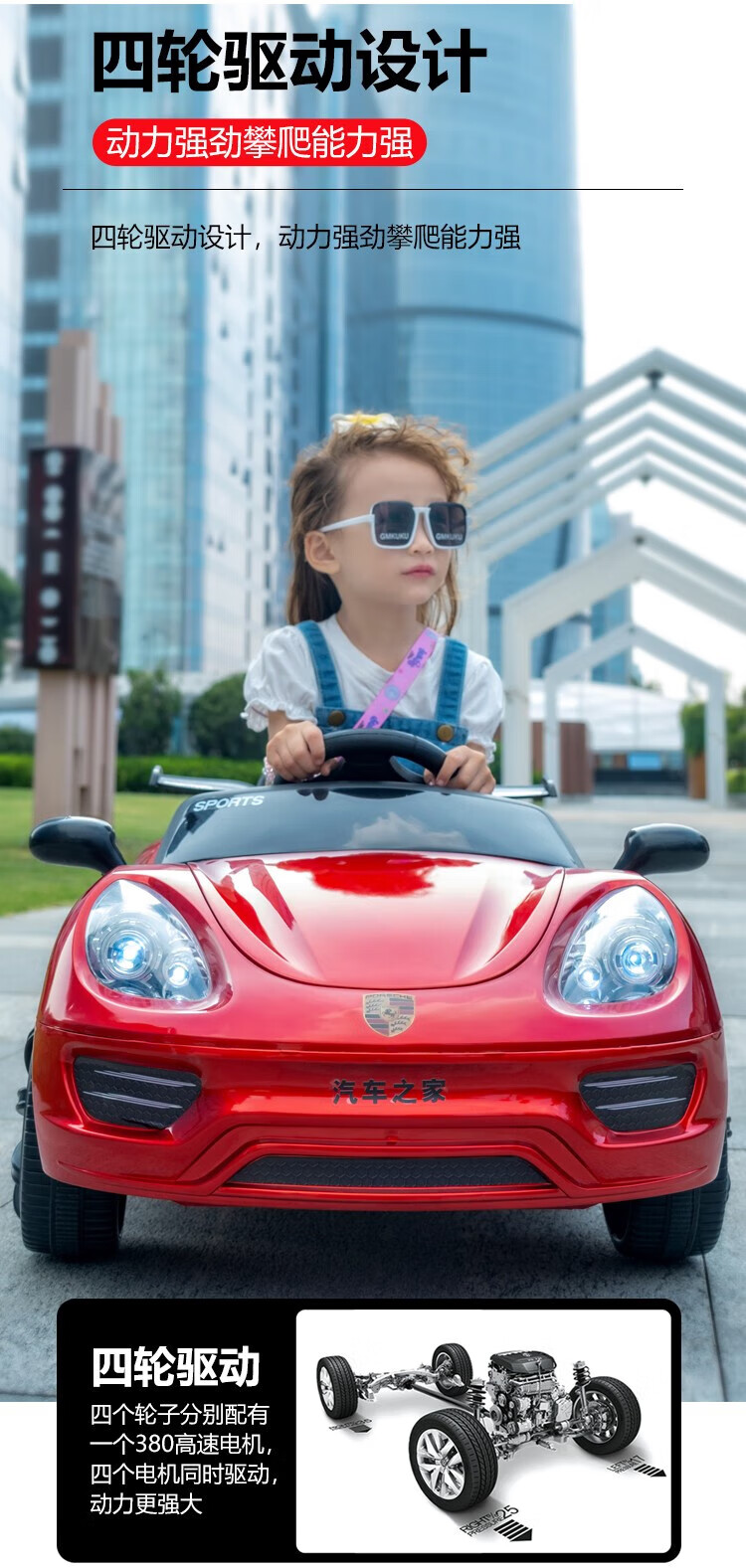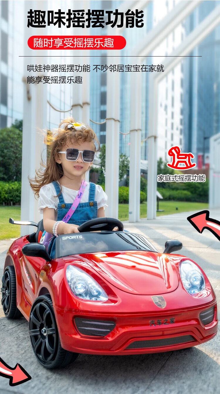 He Jiagong children's electric car four-wheel car for boys and girls with remote control toy car that can sit on and swing baby stroller red + large battery + early education + remote control